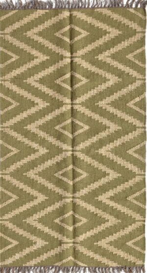 Wool & Jute Kilim Boho Rug, Green Jute Rug