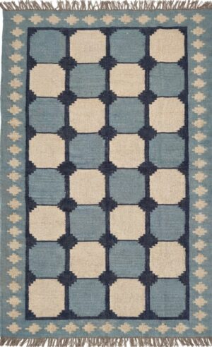 White And Blue Wool Jute Rug, Home Decor Diamond Jute Kilim Rug, Reversible Custom Size Rug