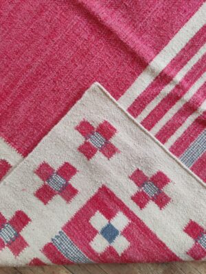 Pink Cotton Flatweave Rug: Diamond Pattern, Modern Home Decor