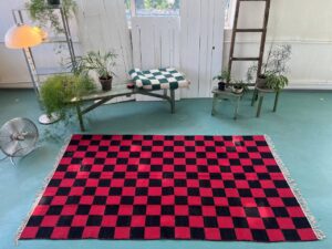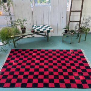 Red And Black Checkered Rug, Home And Living Room Check Box Rug