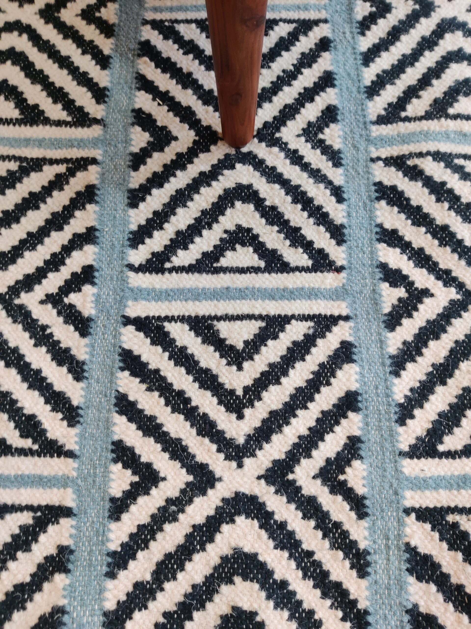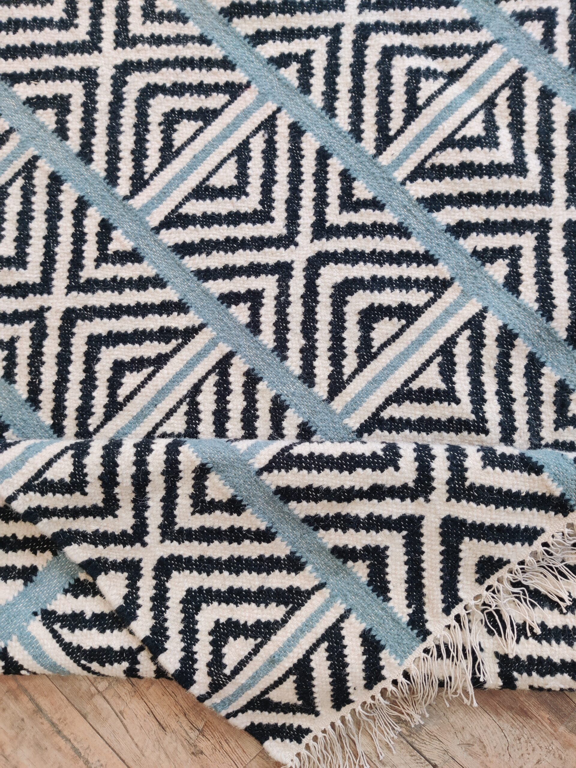 Transform your living space with our exquisite handmade wool cotton rug. This stunning piece is not just a functional addition to your home, but a statement of elegance and craftsmanship.