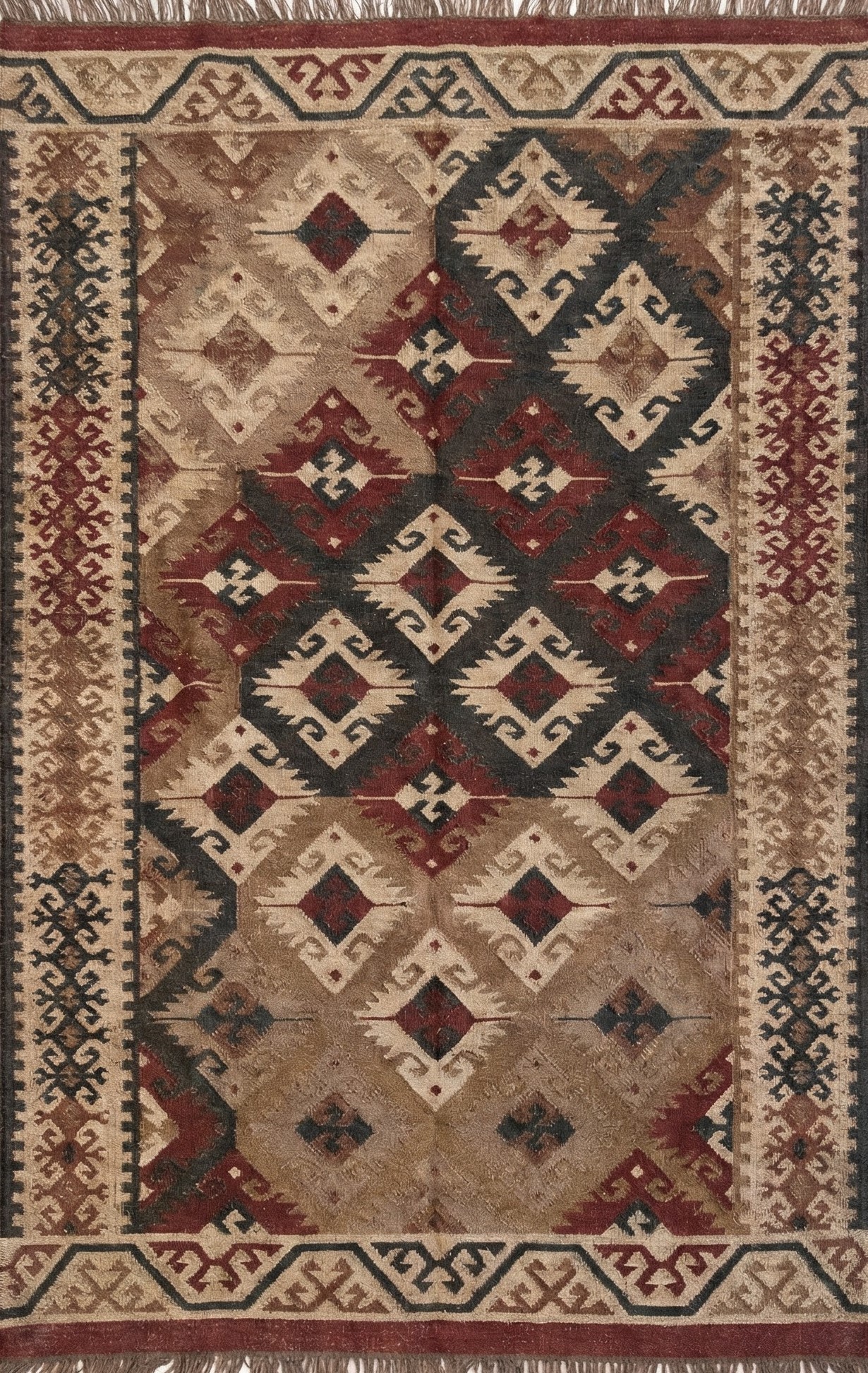 The Geometric design of a rust-color weaves its way seamlessly into any space from coastal dining to urban sleeping. Jute kilim dhurrie construction.