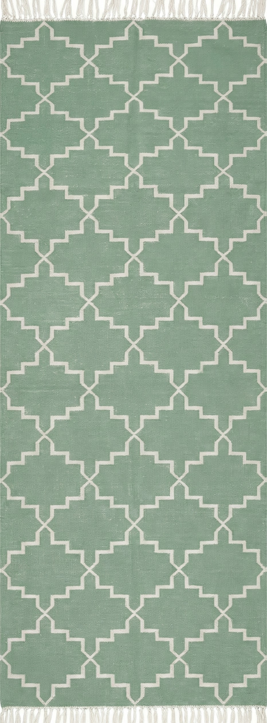 The Green and White Cotton Rug Runner is designed with both aesthetics and practicality in mind. Its flat weave allows it to fit seamlessly into various spaces, from narrow hallways to the entrance of your home. The green and white color combination adds a touch of sophistication, making it a perfect match for both traditional and modern interiors.