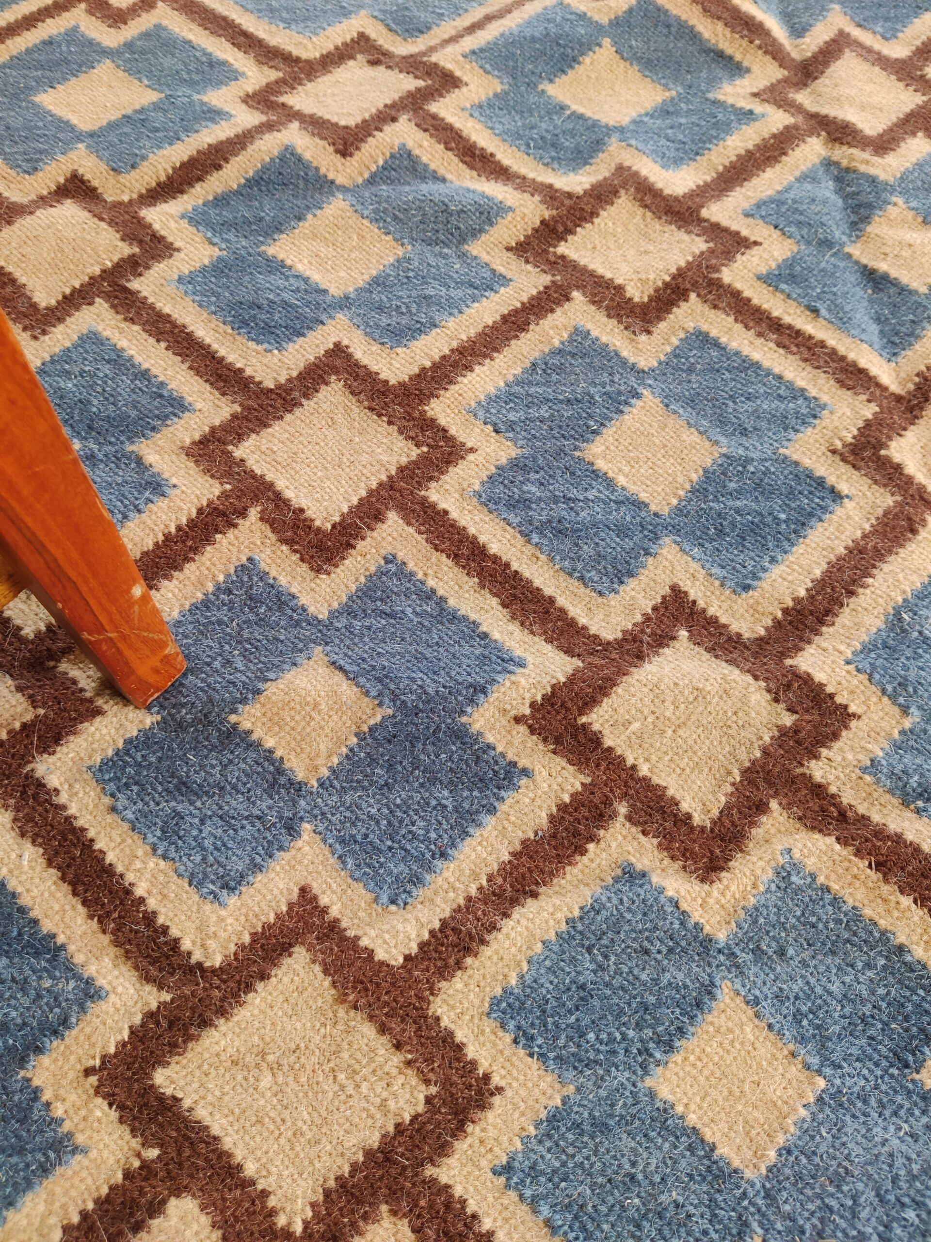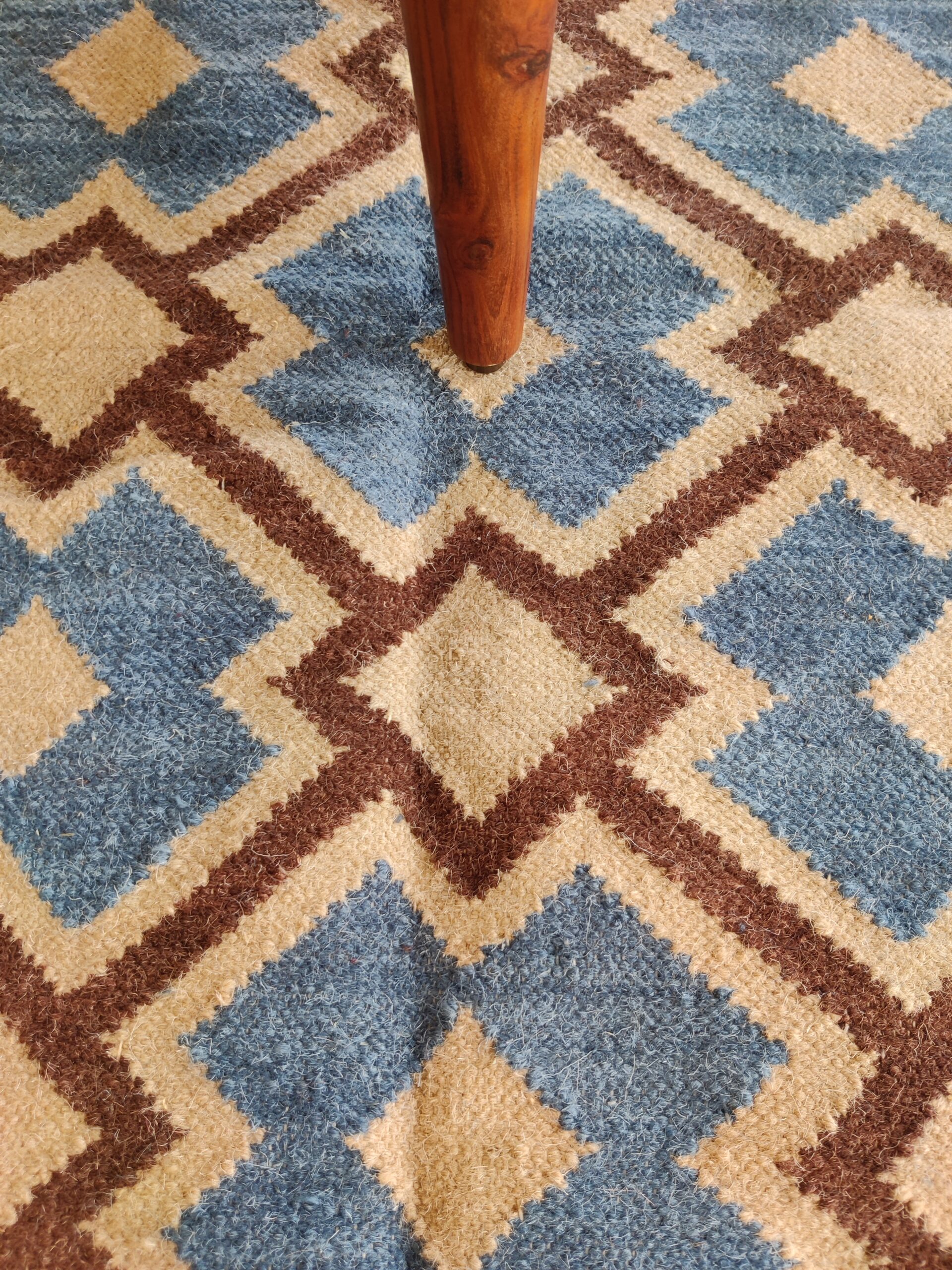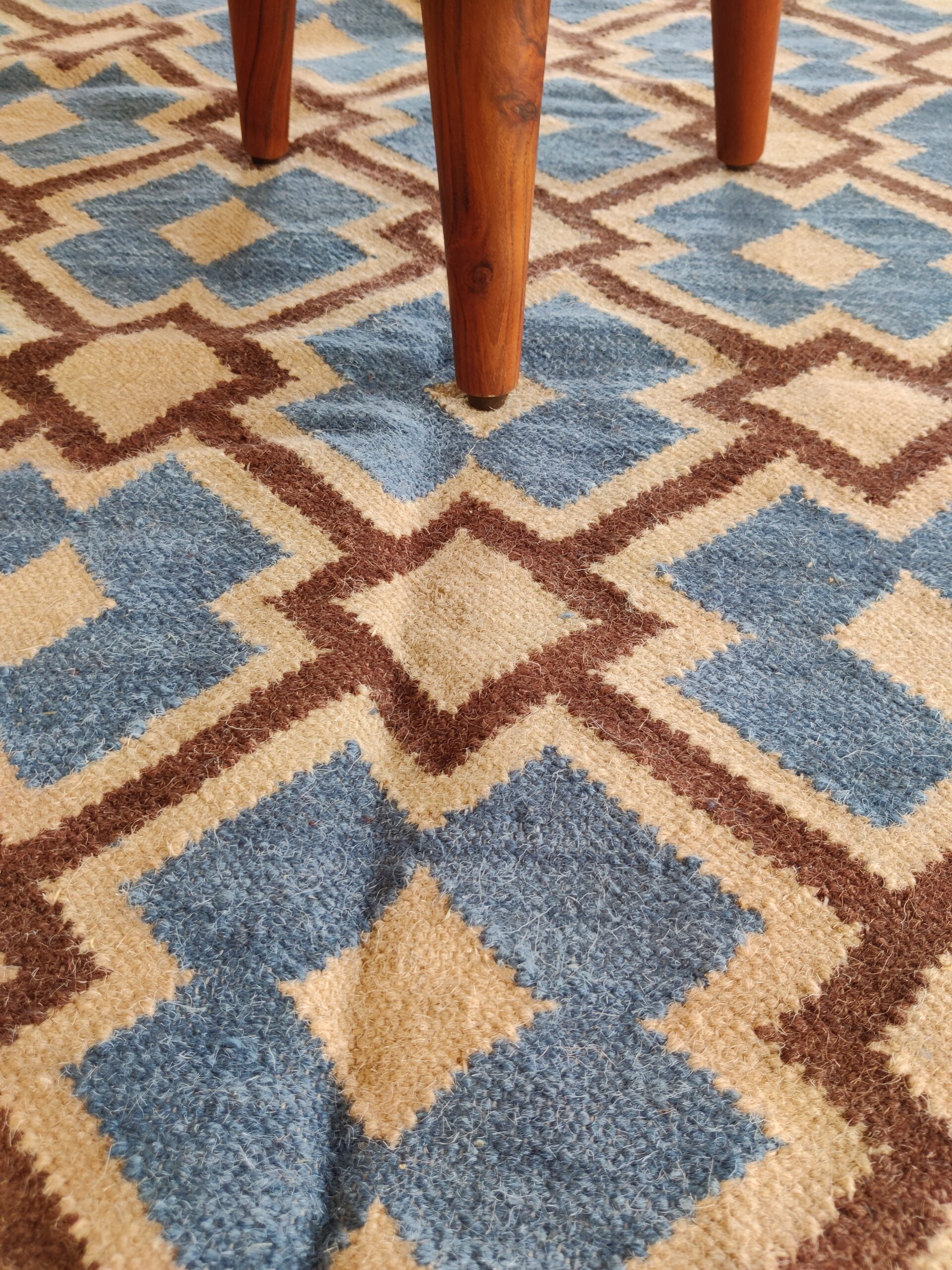 Transform your living space with our exquisite handmade wool cotton rug. This stunning piece is not just a functional addition to your home, but a statement of elegance and craftsmanship.