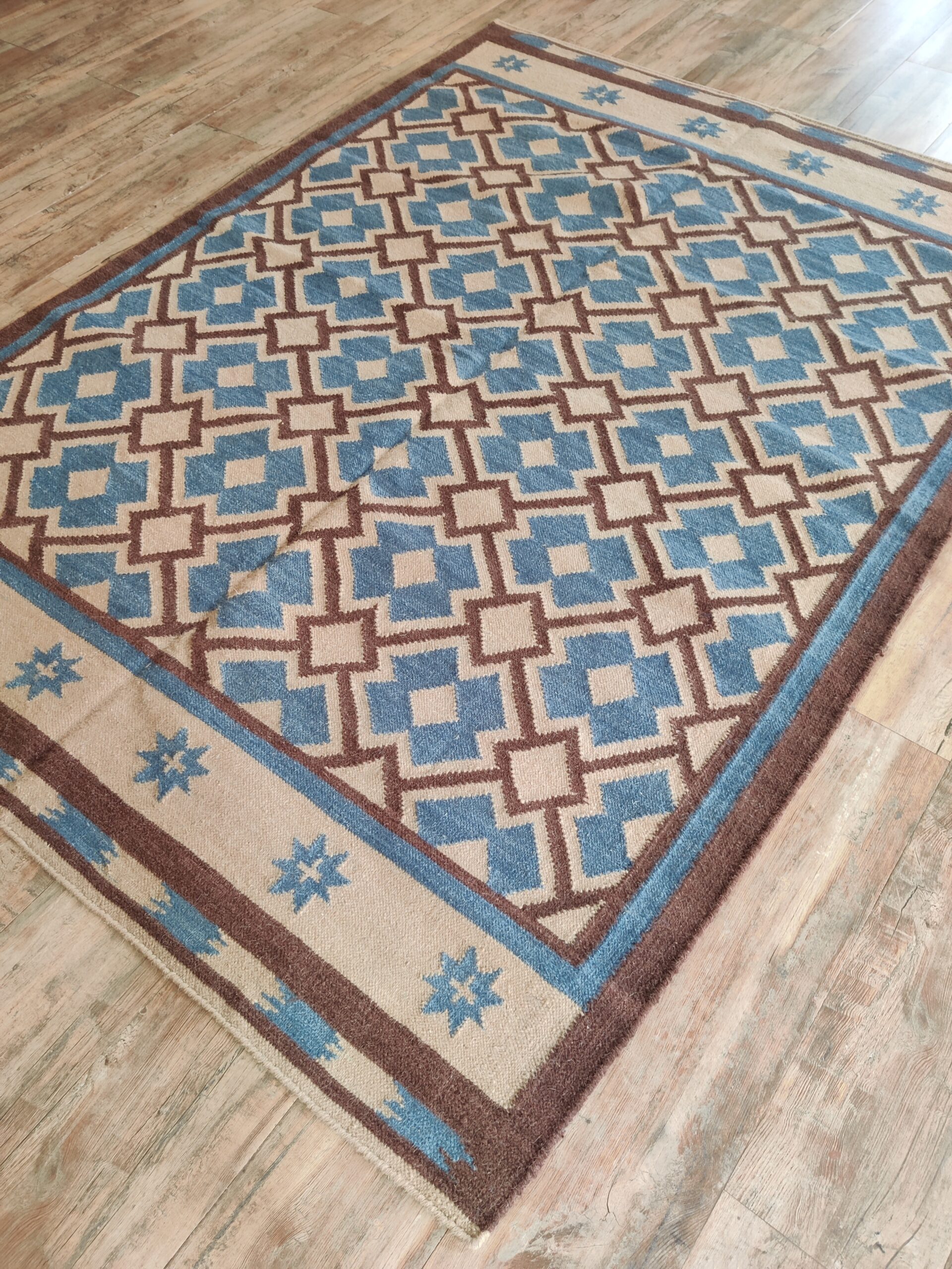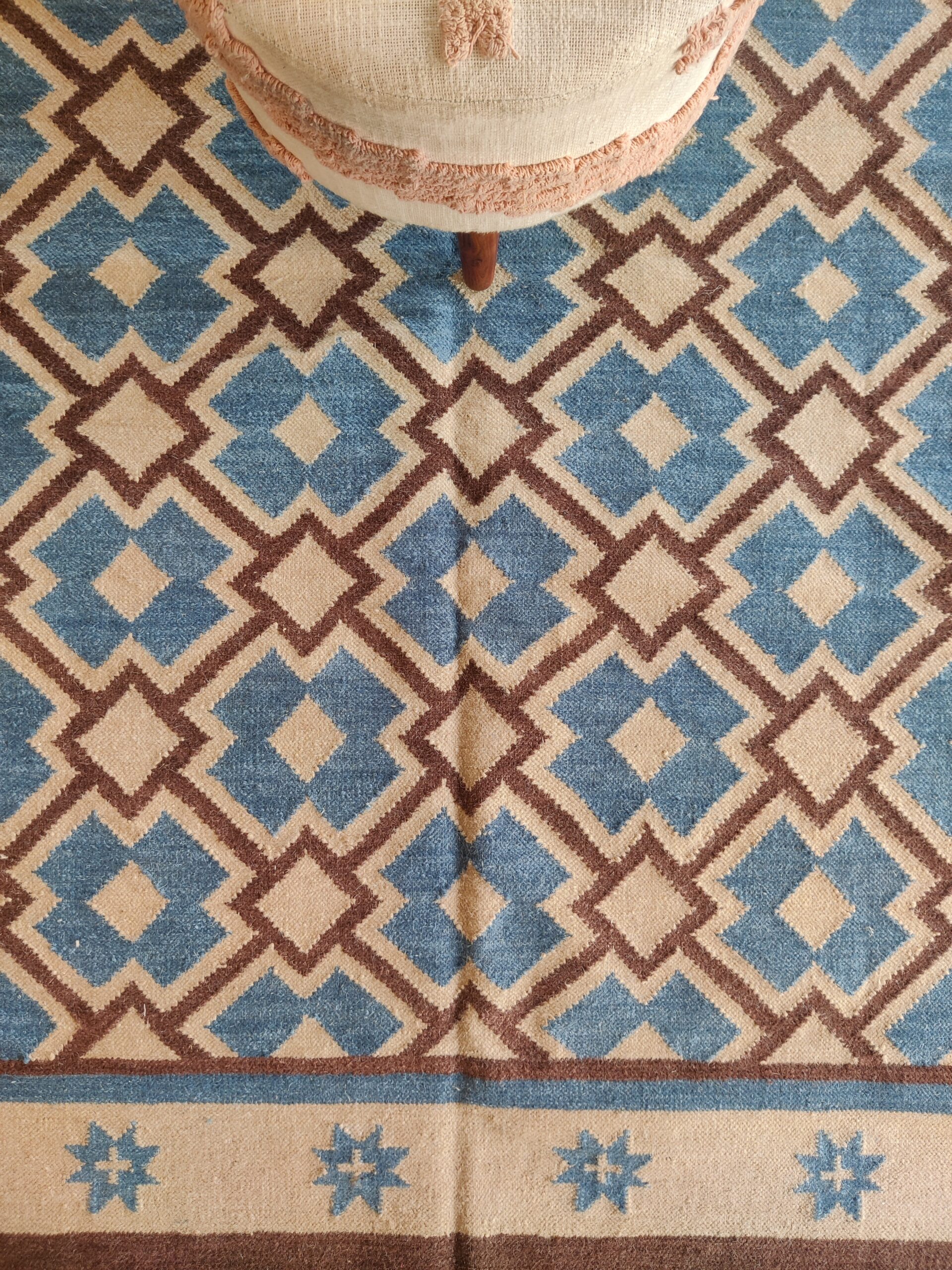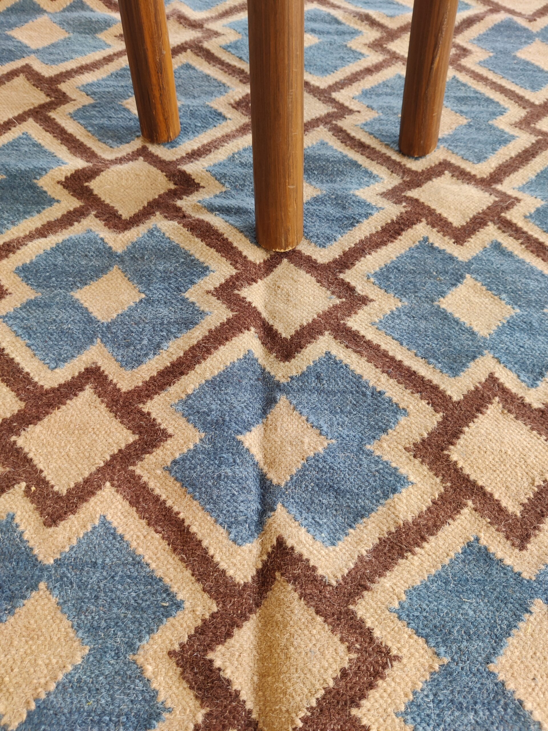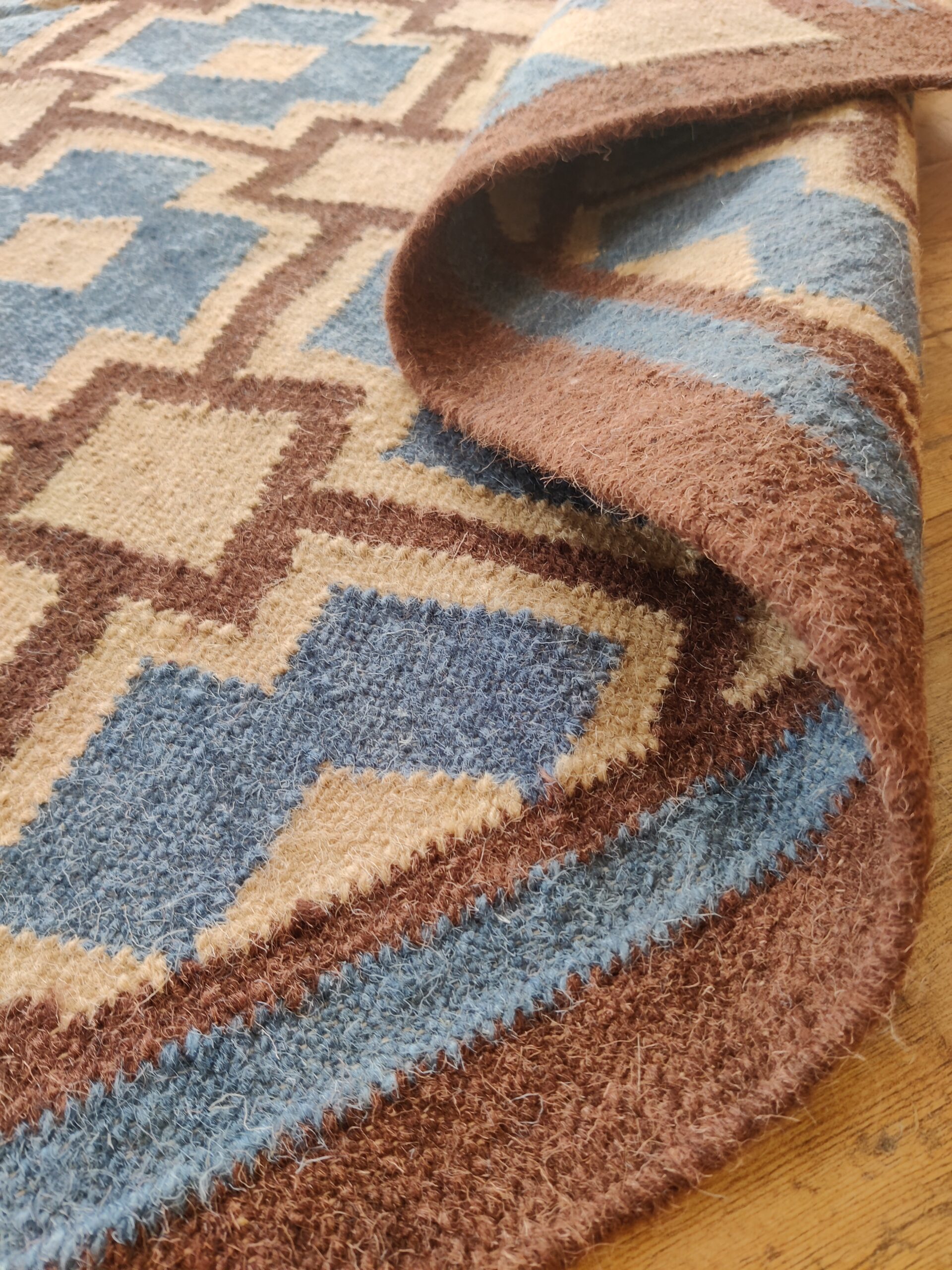 Transform your living space with our exquisite handmade wool cotton rug. This stunning piece is not just a functional addition to your home, but a statement of elegance and craftsmanship.