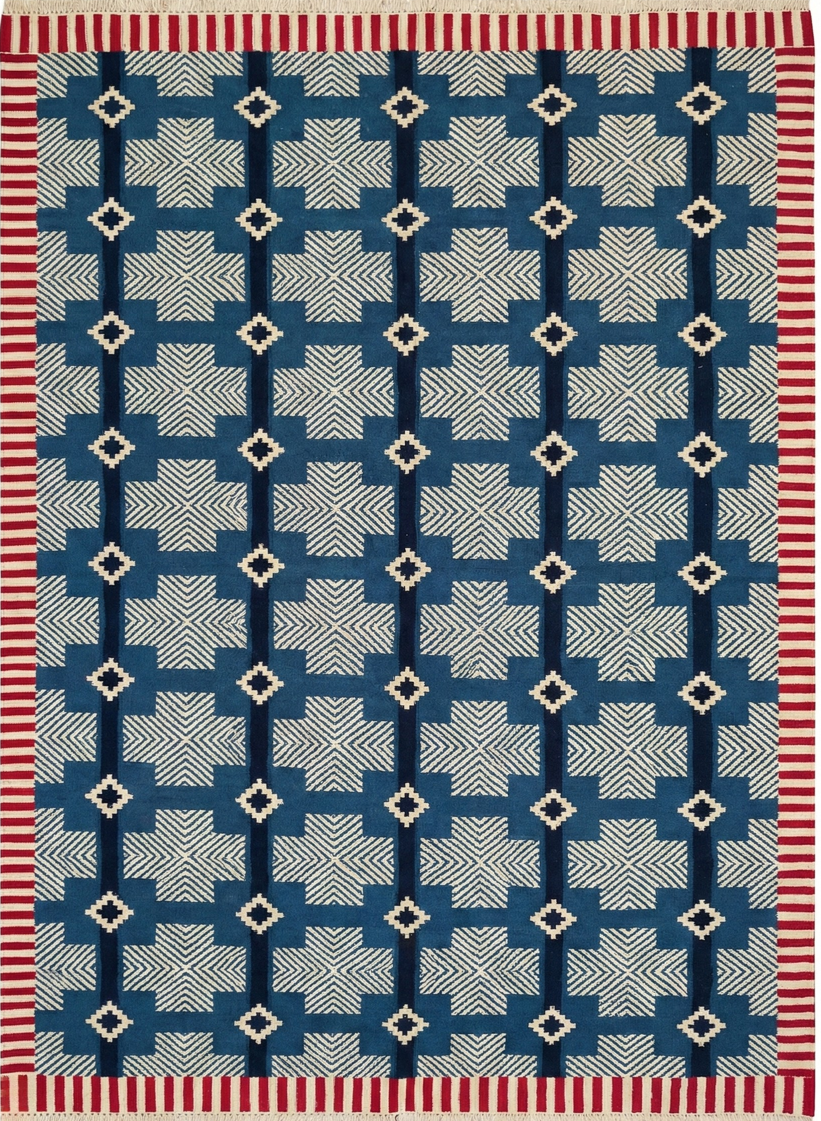 Hamdwoven Cotton Wool Kilim Modern Pattern Design Rug, Blue And White Rug, Reversible Rug