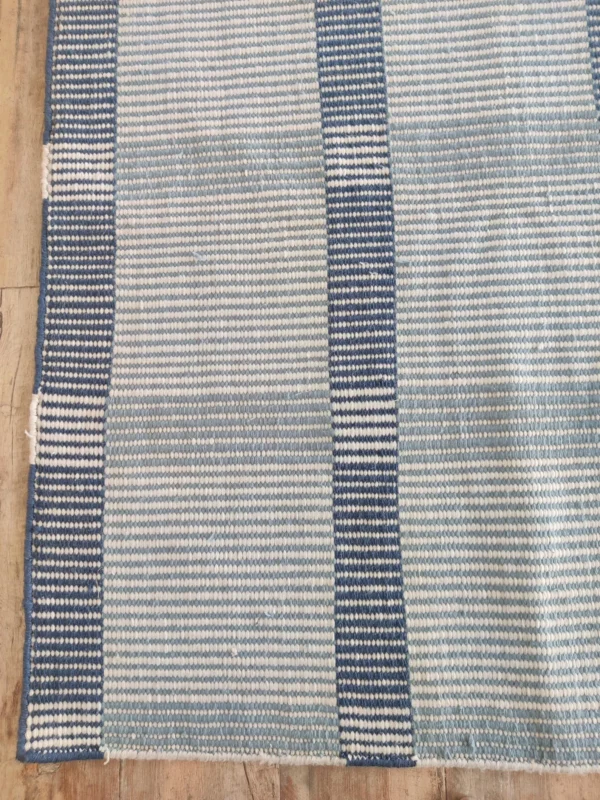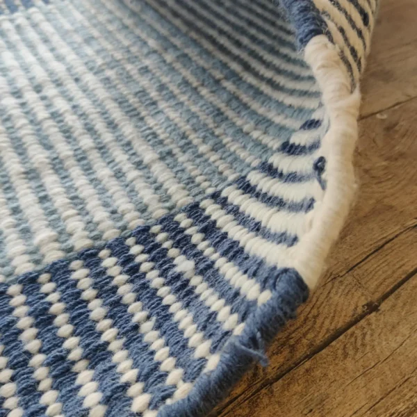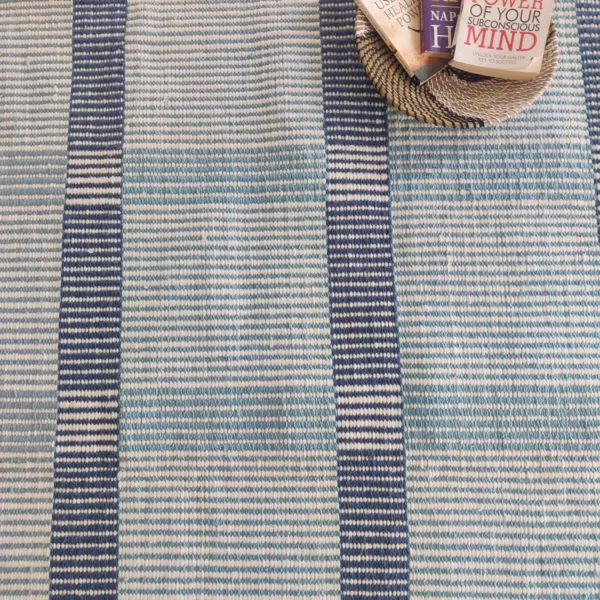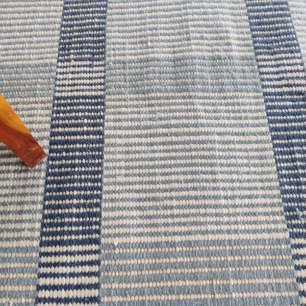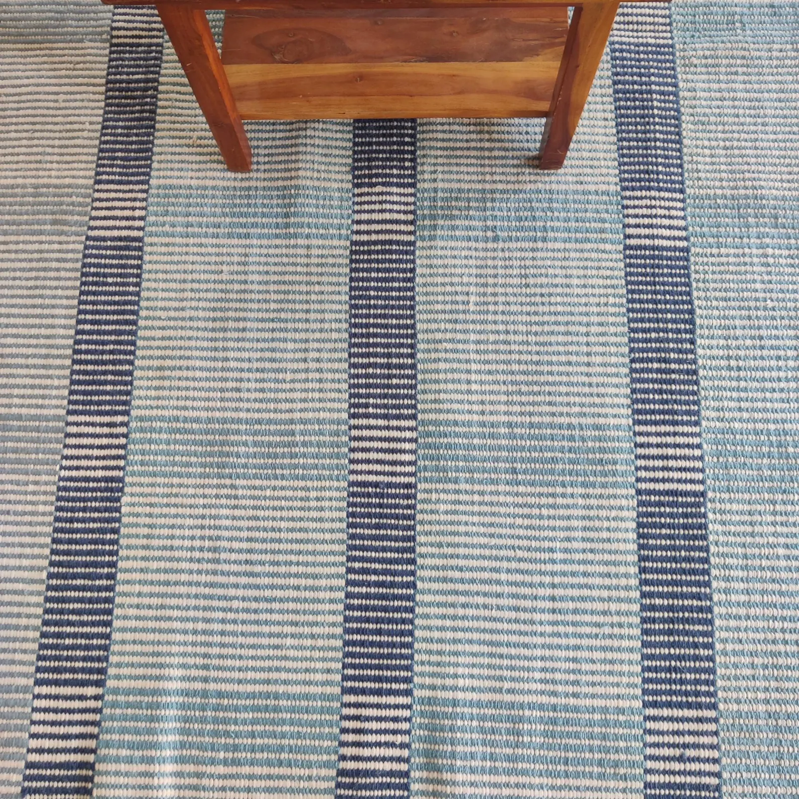 Handloom Wool Area Rug: Blue & Ivory Stripe, Scandinavian Style