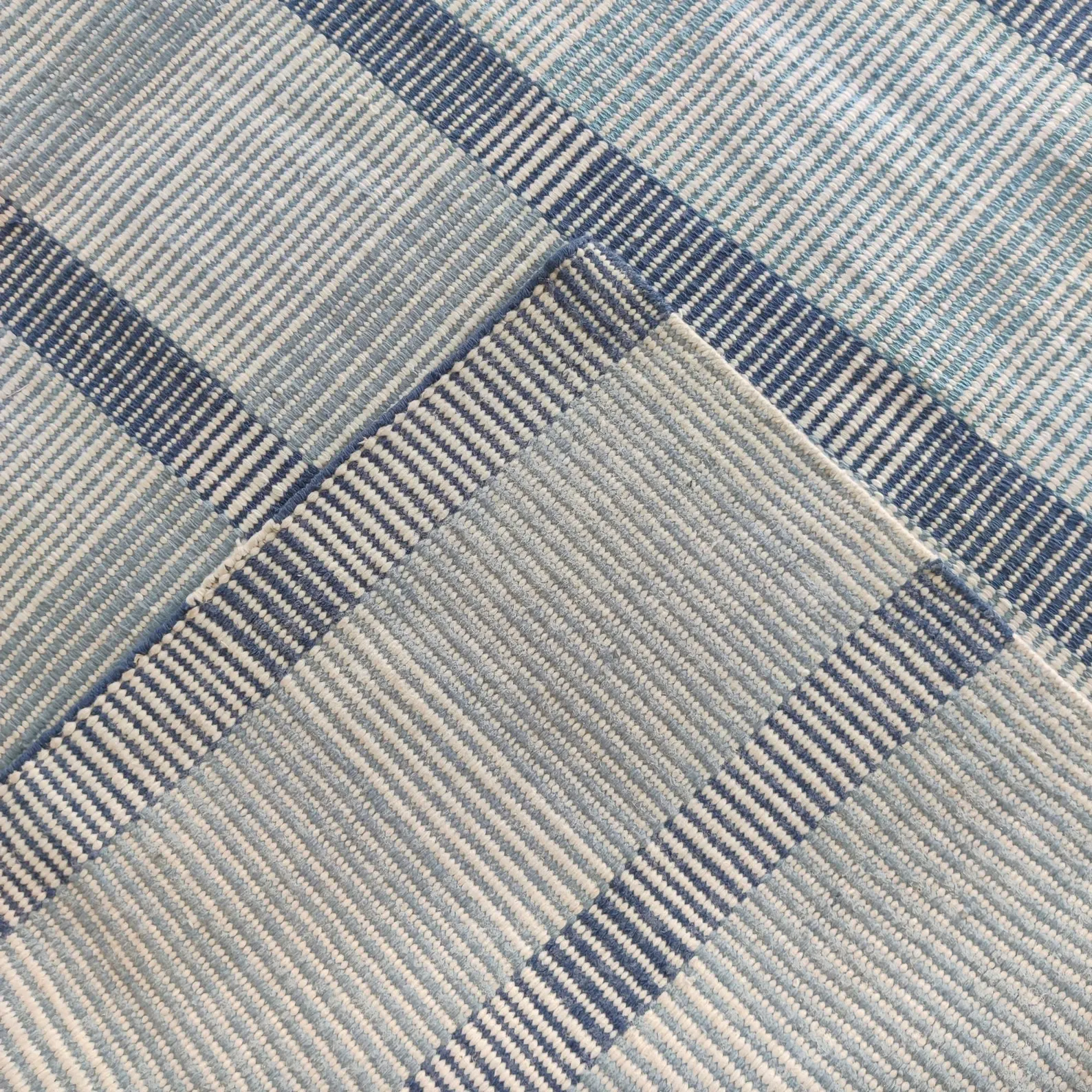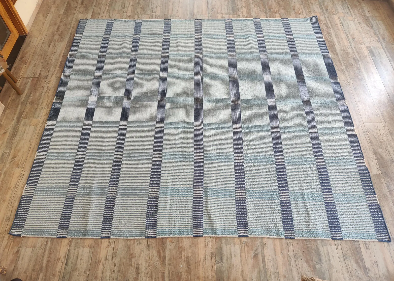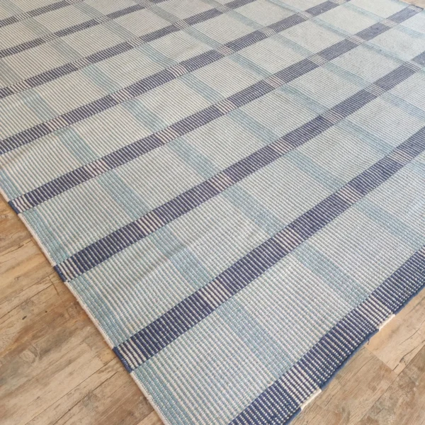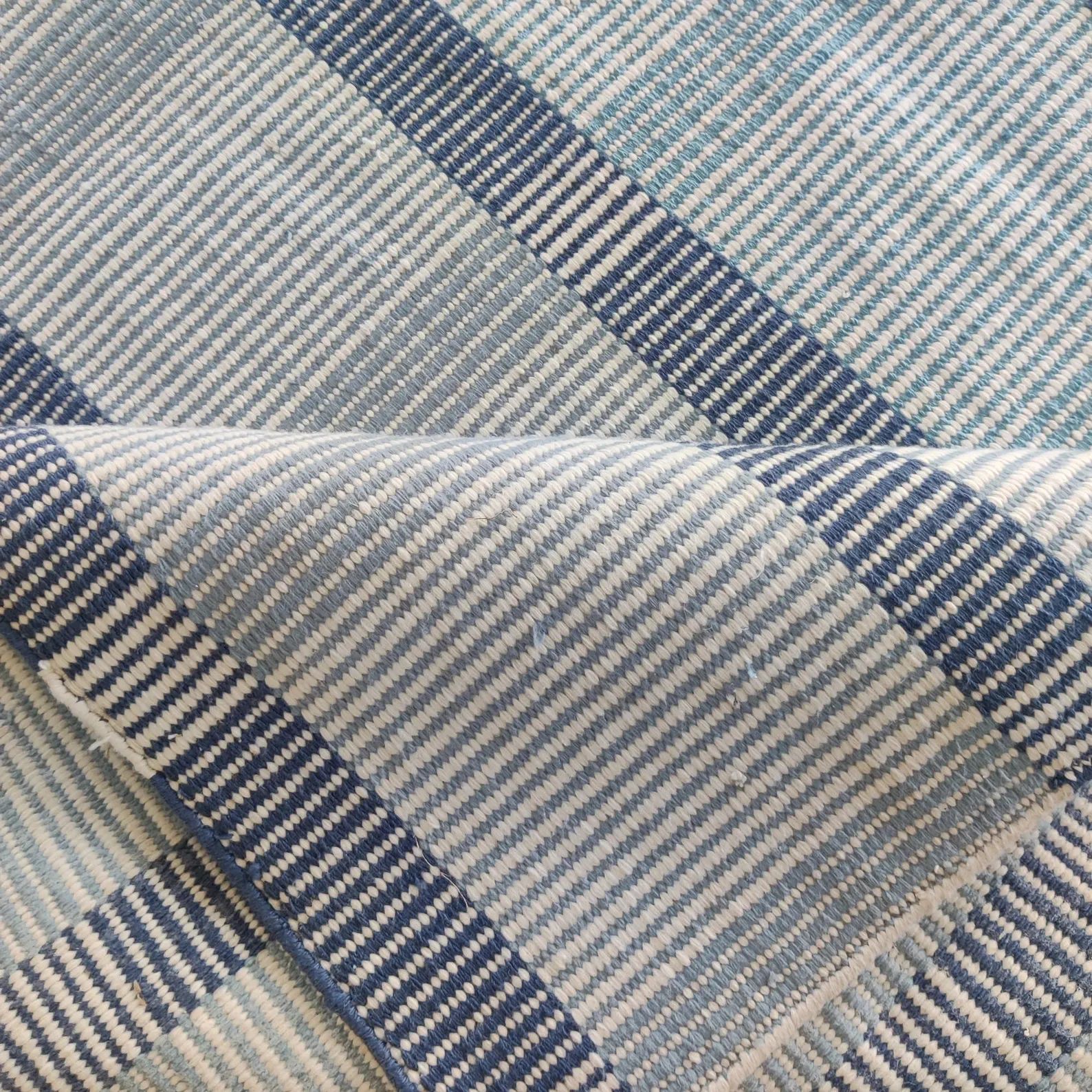 Handloom Wool Area Rug: Blue & Ivory Stripe, Scandinavian Style