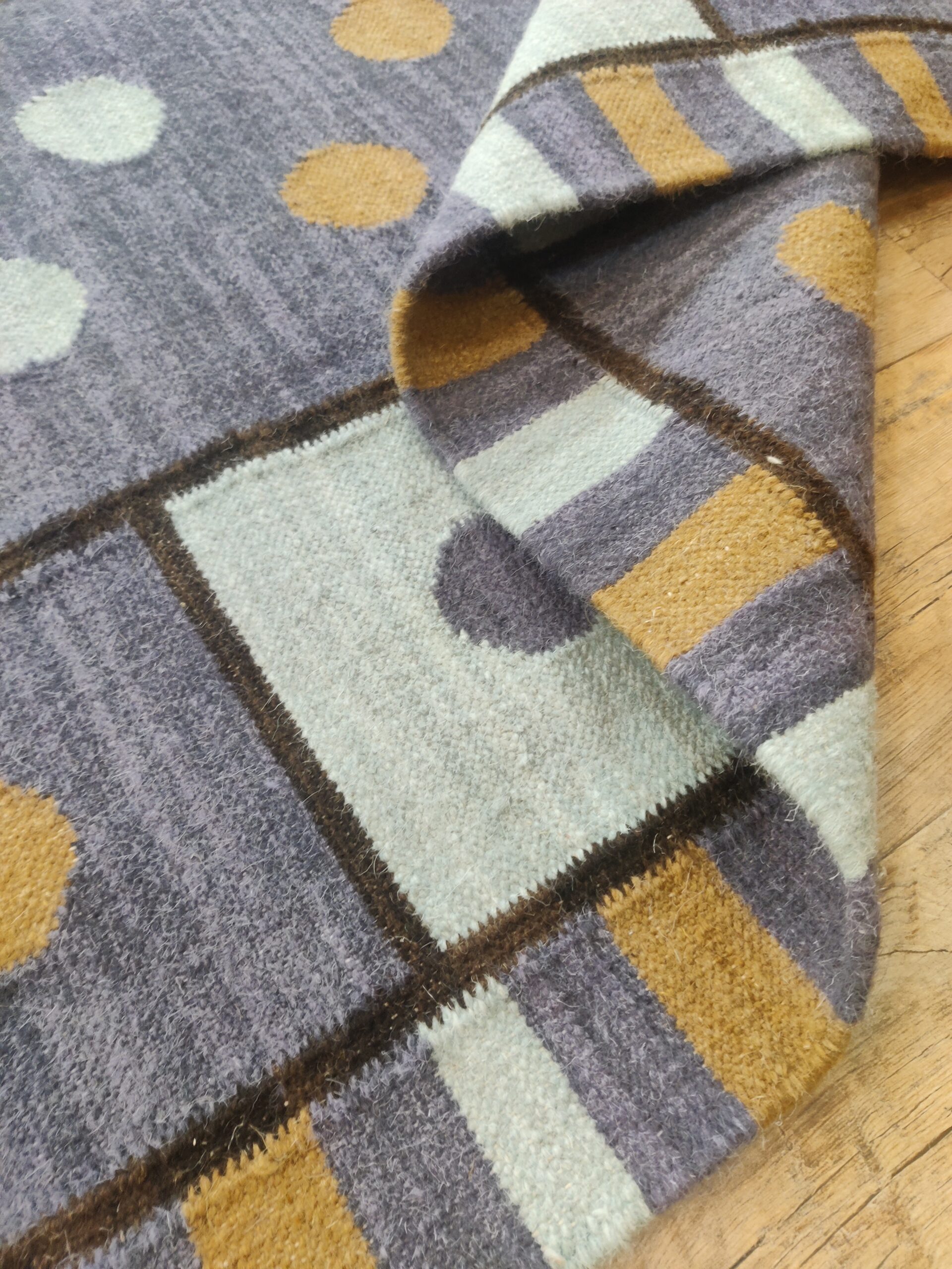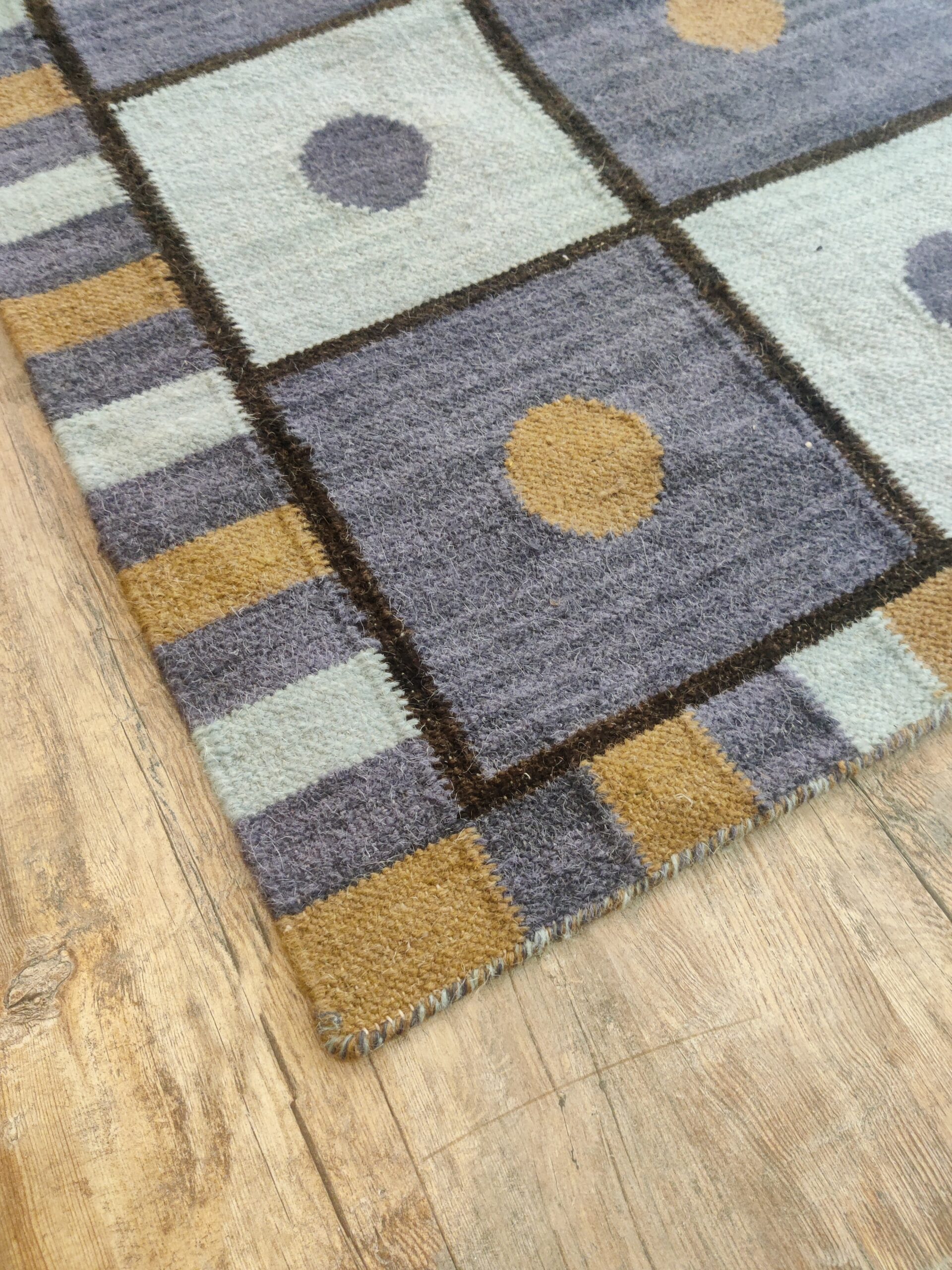 Transform your living space with our exquisite handmade wool cotton rug. This stunning piece is not just a functional addition to your home, but a statement of elegance and craftsmanship.