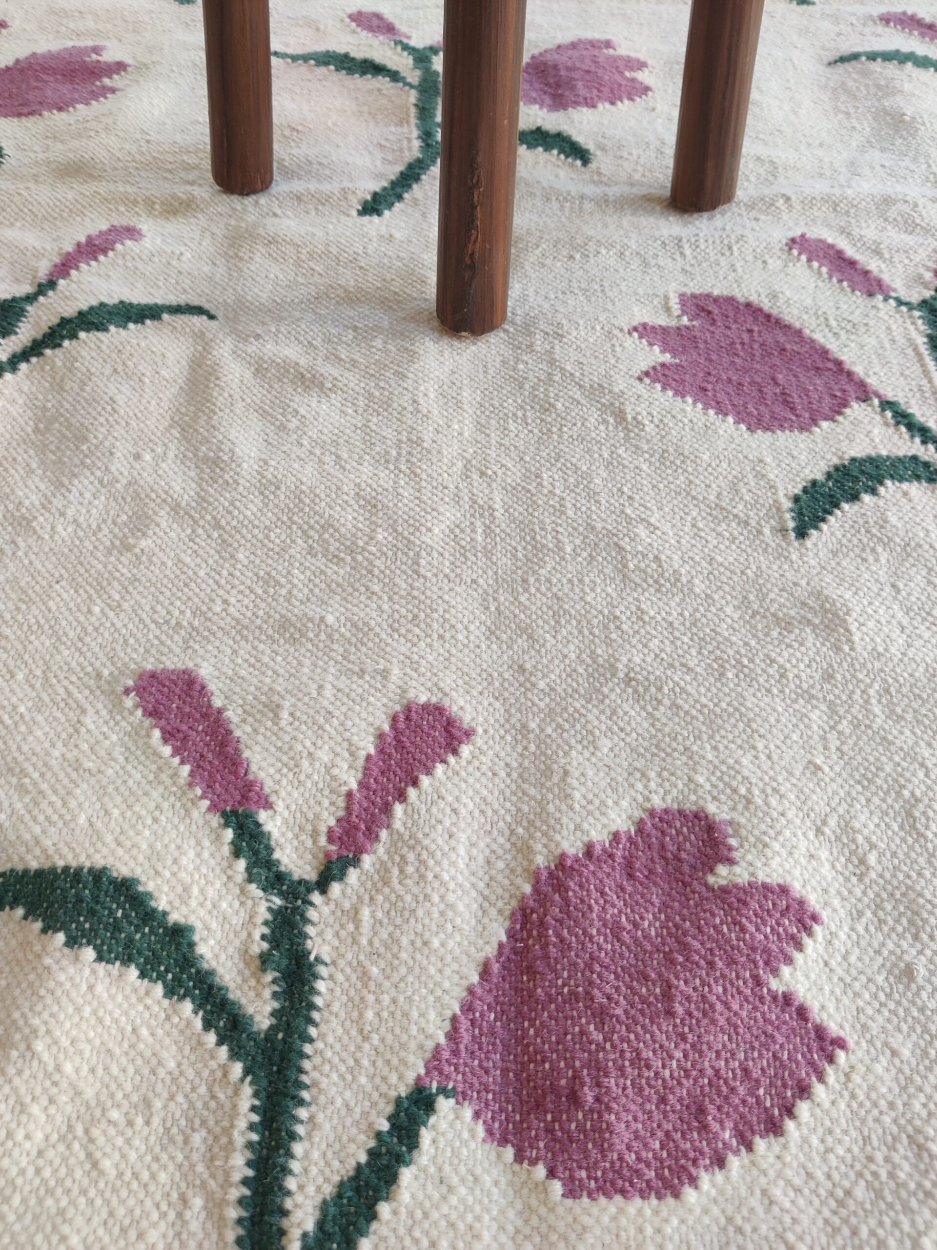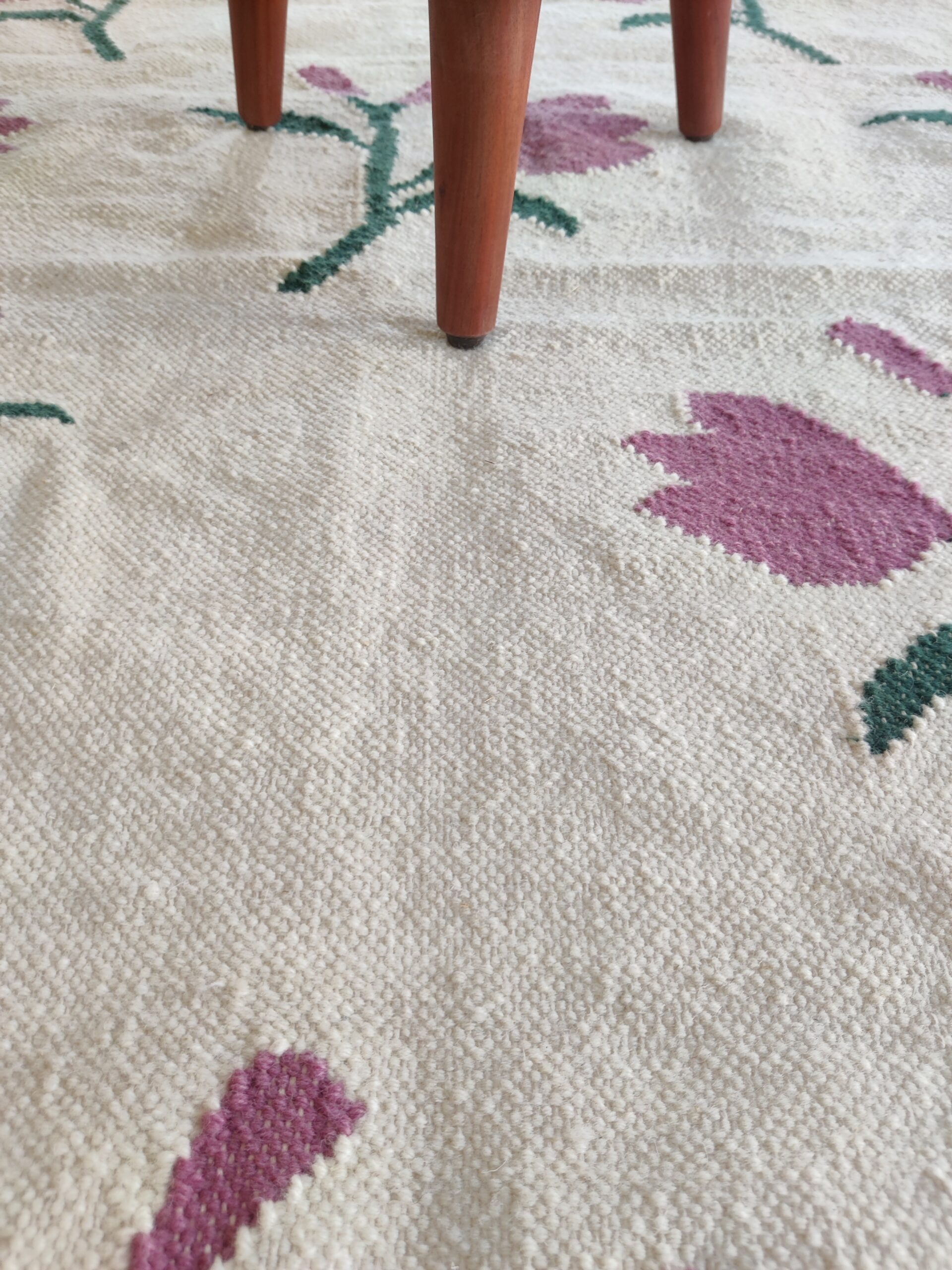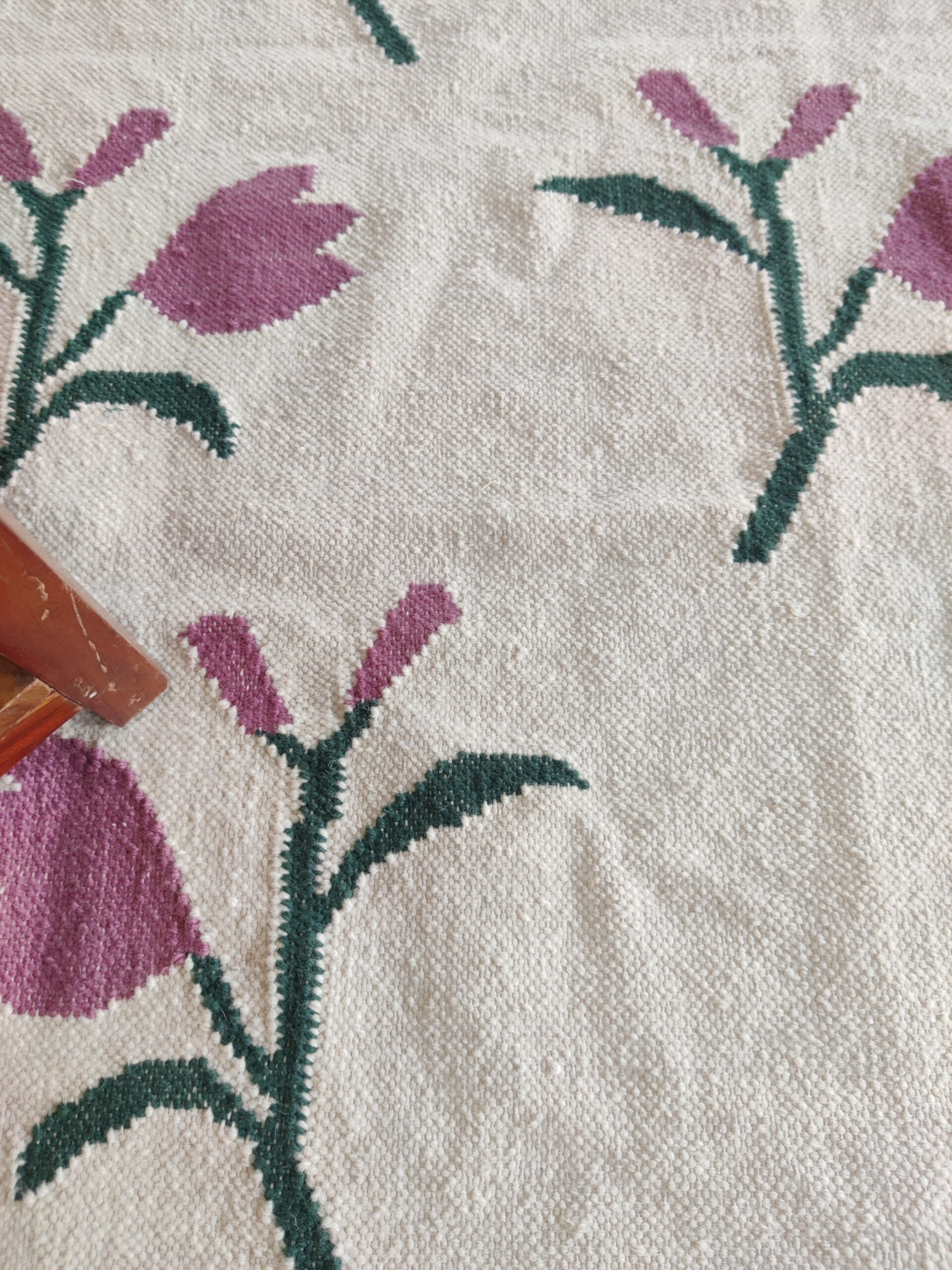 Transform your living space with our exquisite handmade wool cotton rug. This stunning piece is not just a functional addition to your home, but a statement of elegance and craftsmanship.