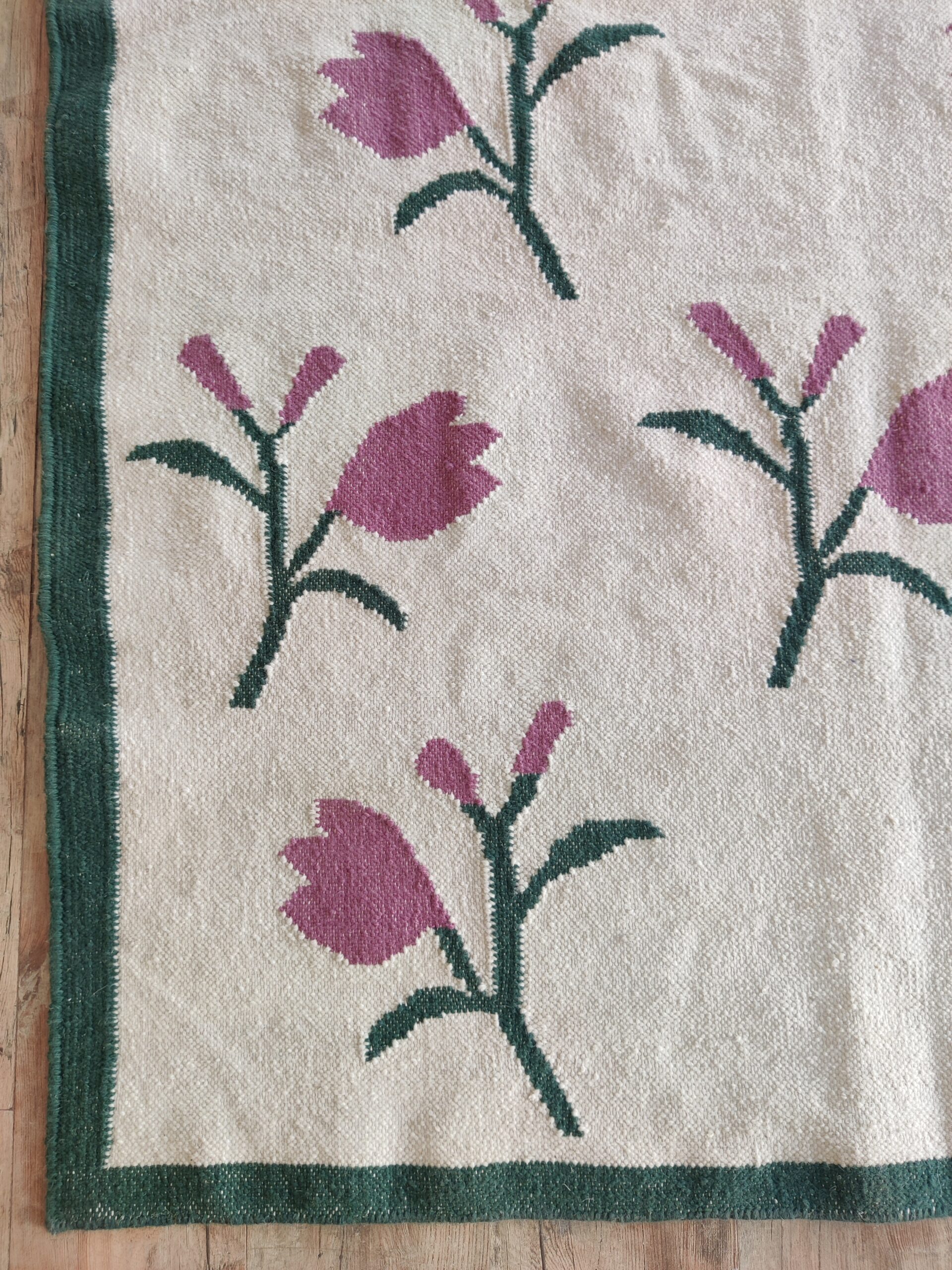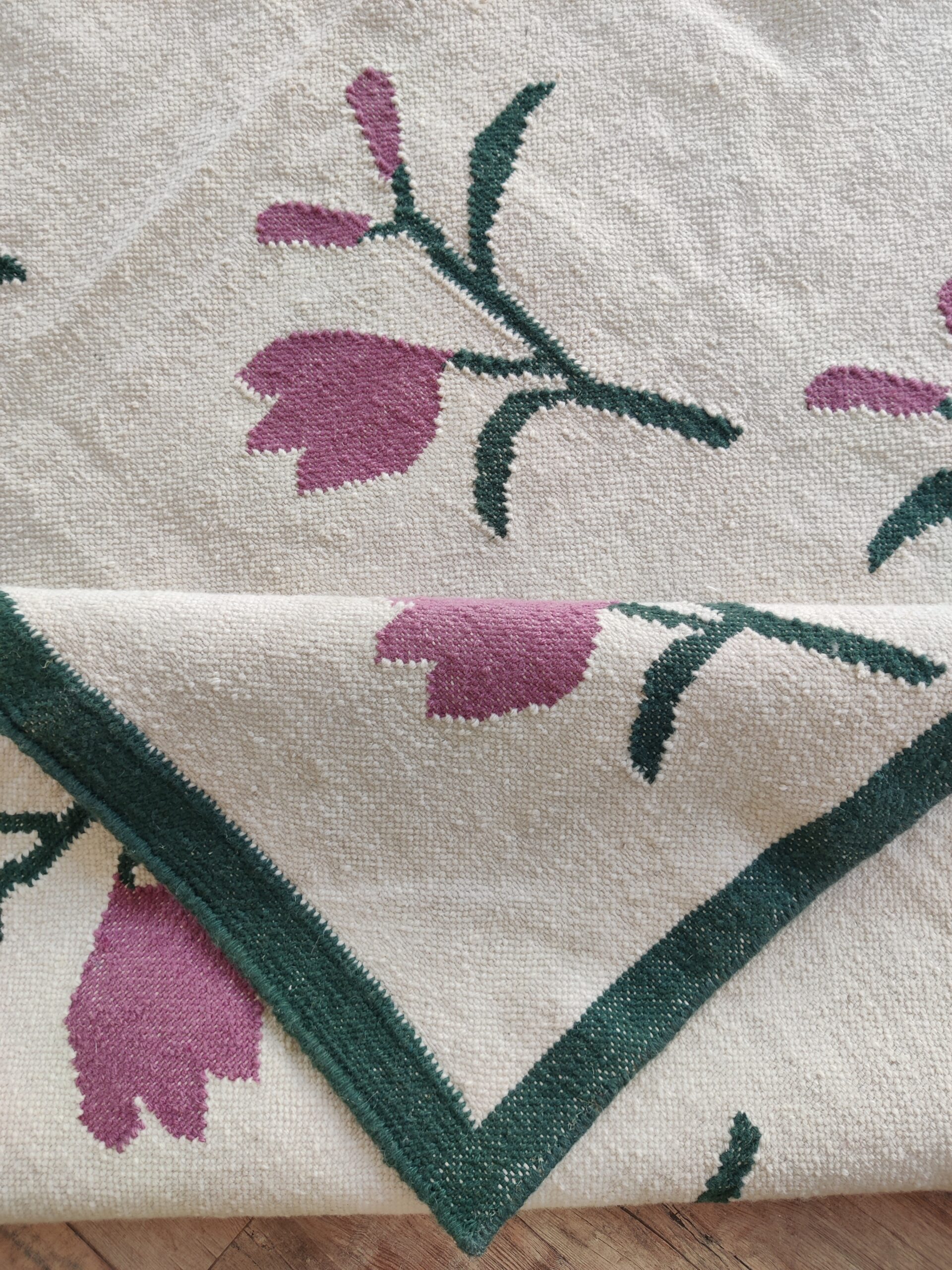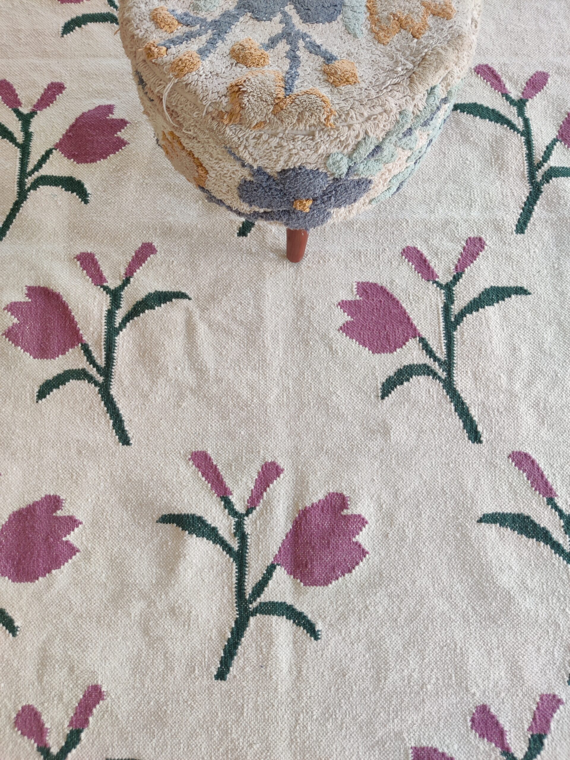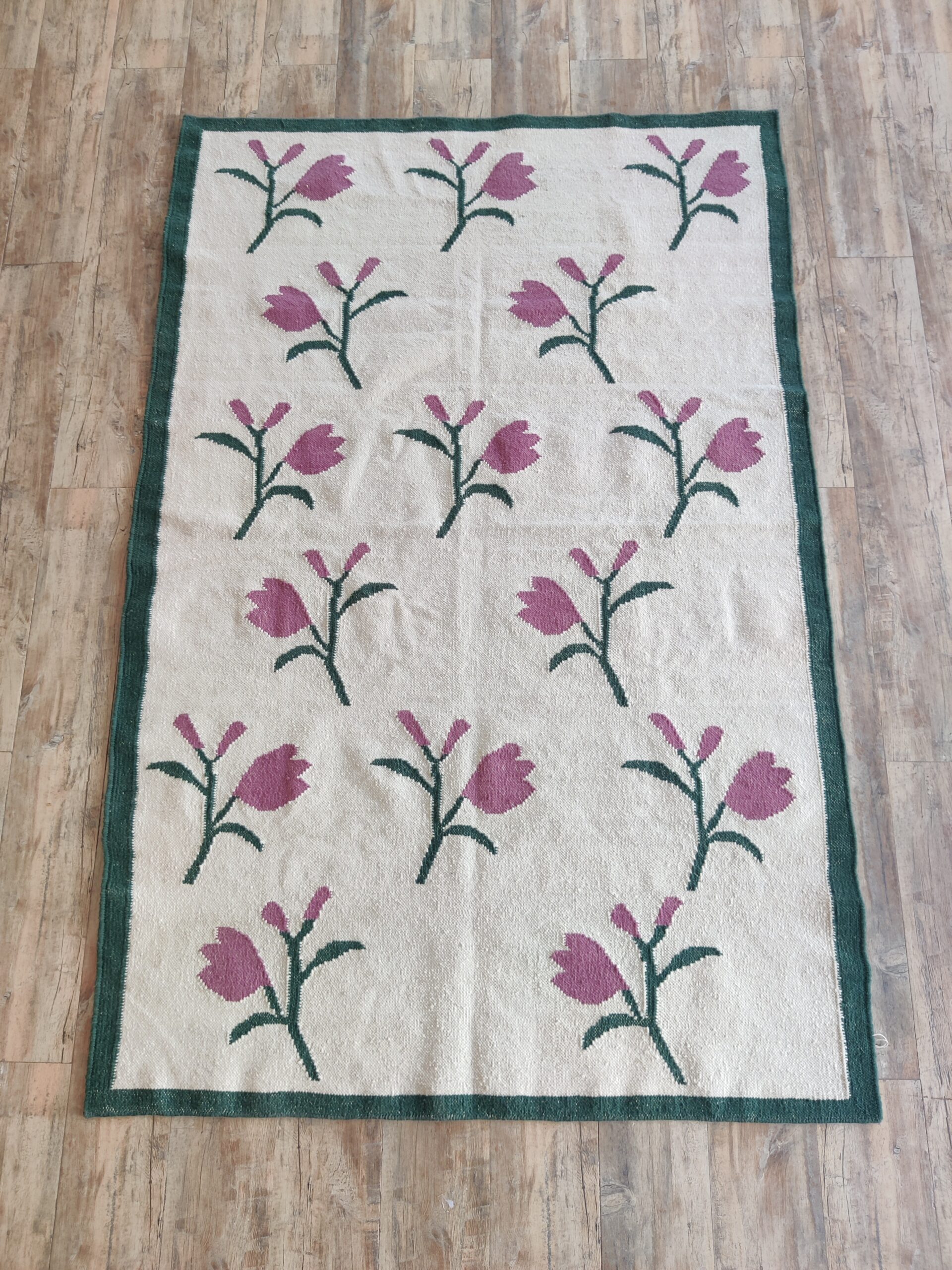 Transform your living space with our exquisite handmade wool cotton rug. This stunning piece is not just a functional addition to your home, but a statement of elegance and craftsmanship.