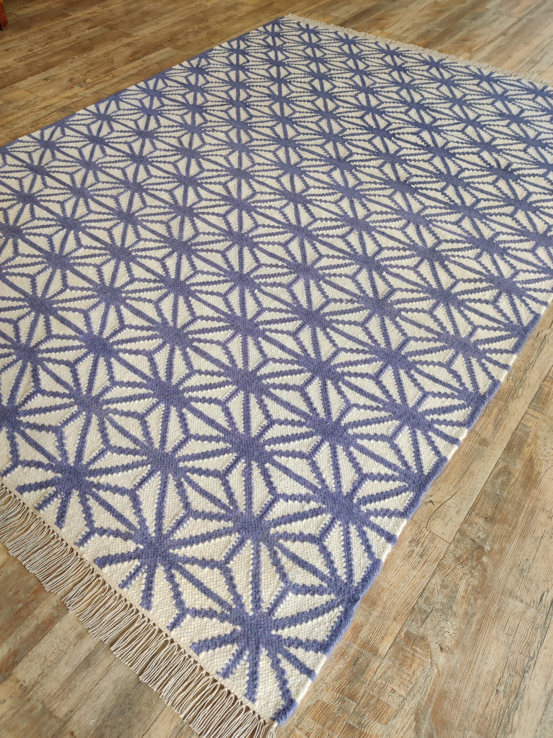 Transform your living space with our exquisite handmade wool cotton rug. This stunning piece is not just a functional addition to your home, but a statement of elegance and craftsmanship.