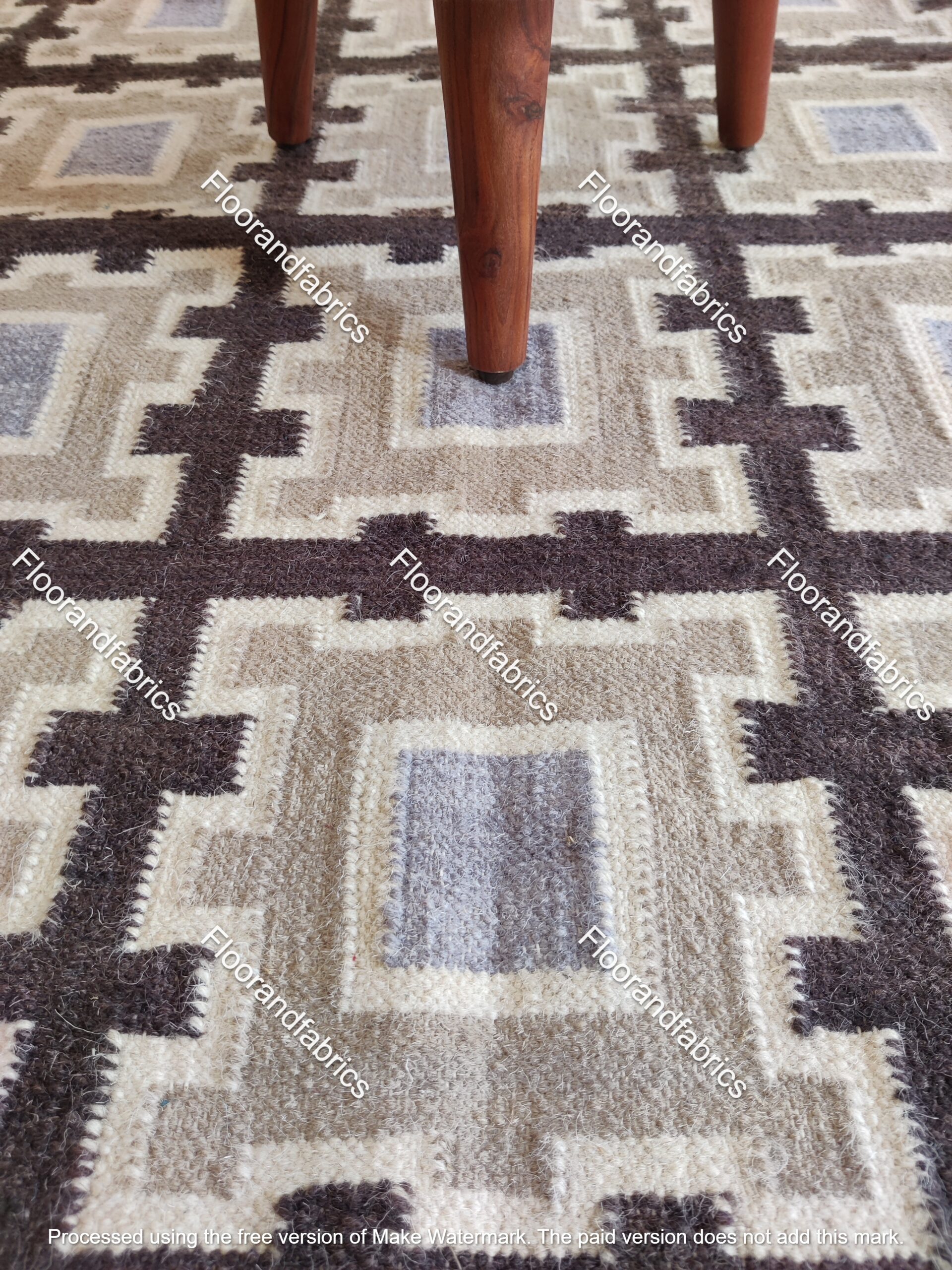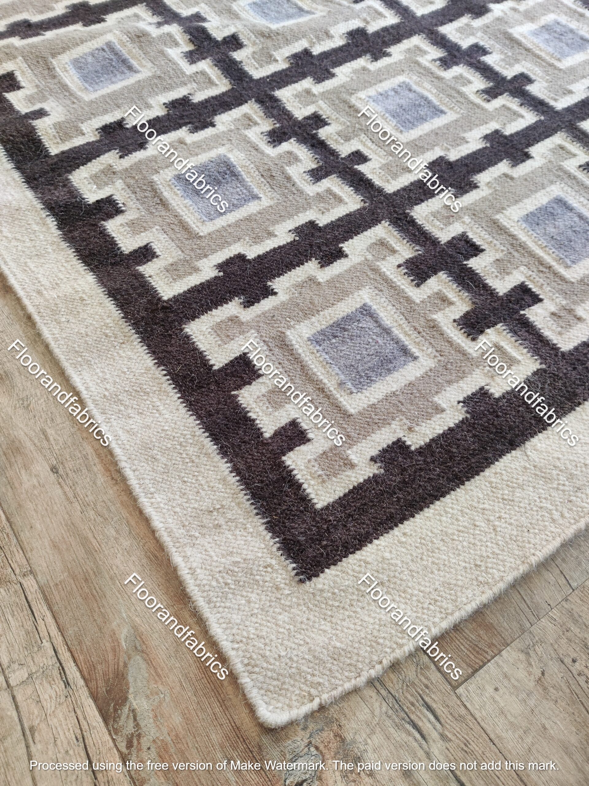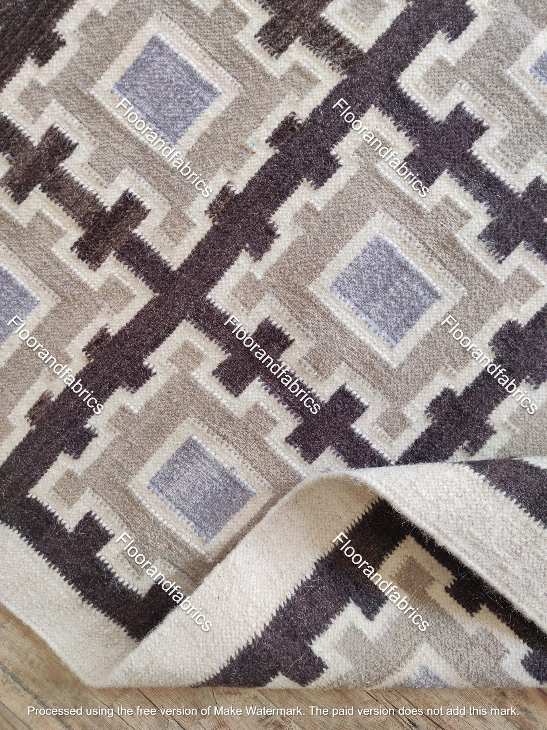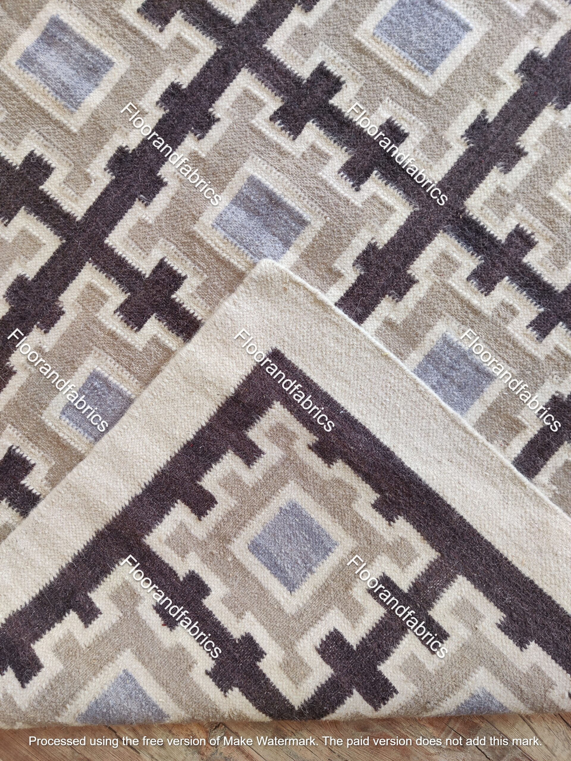 Handmade Cotton Wool Rug, Modern Vintage Designer Pattern Wool Kilim Rug