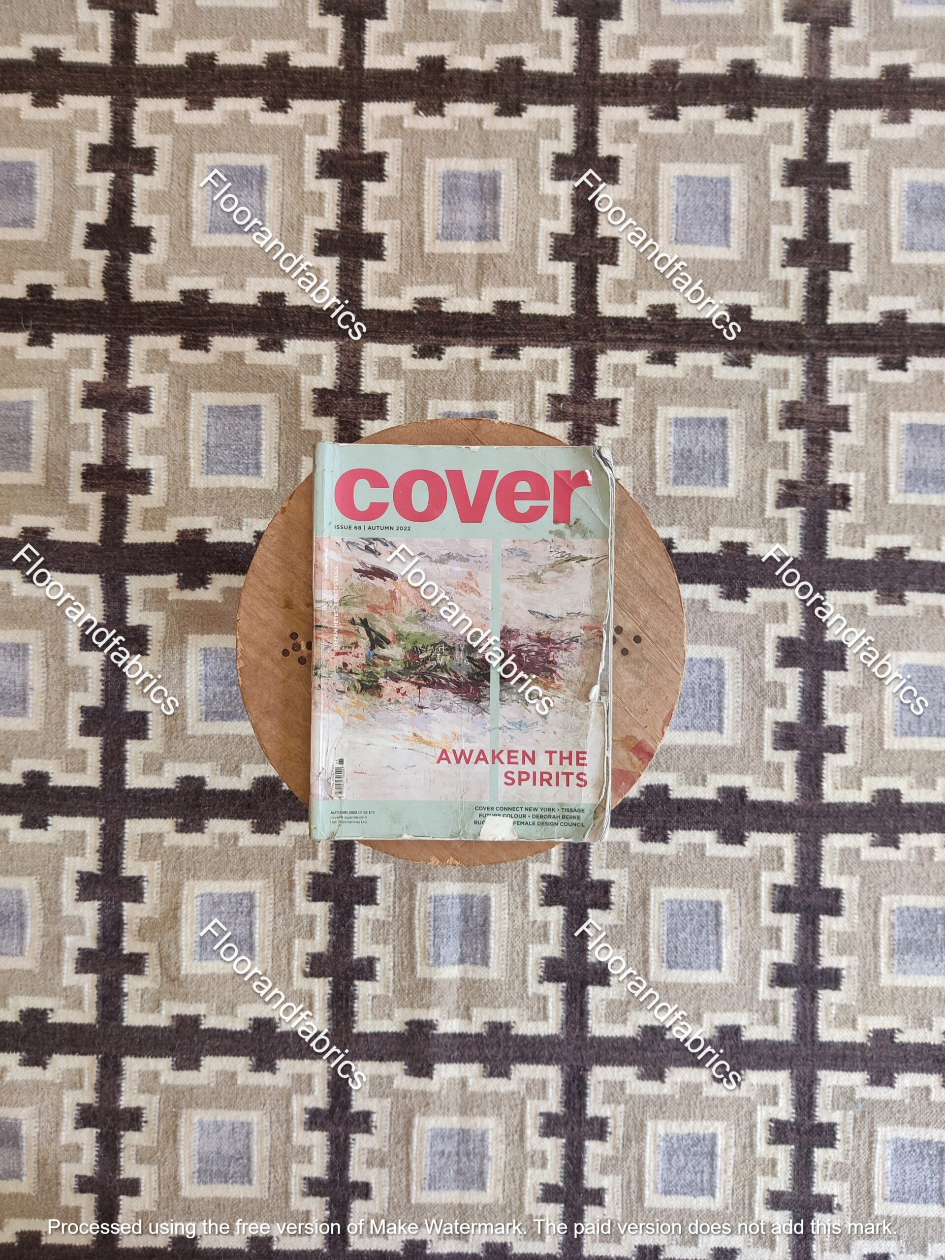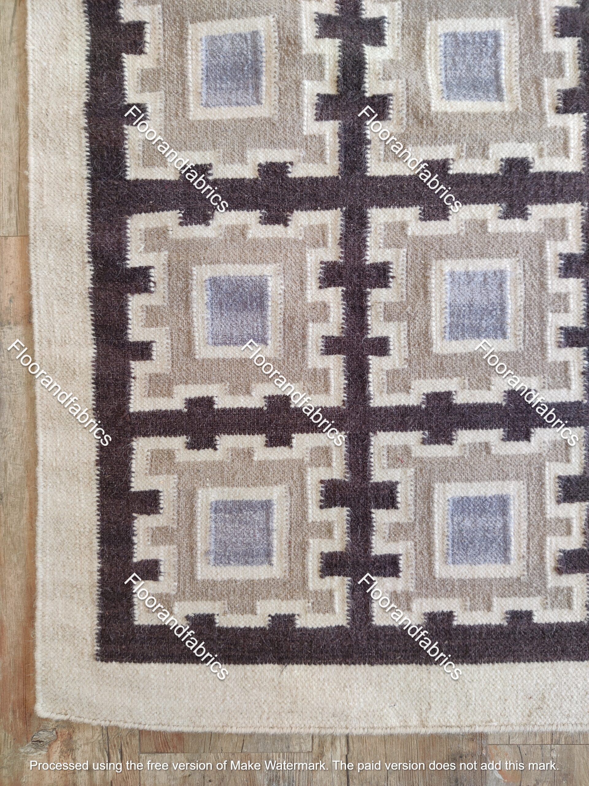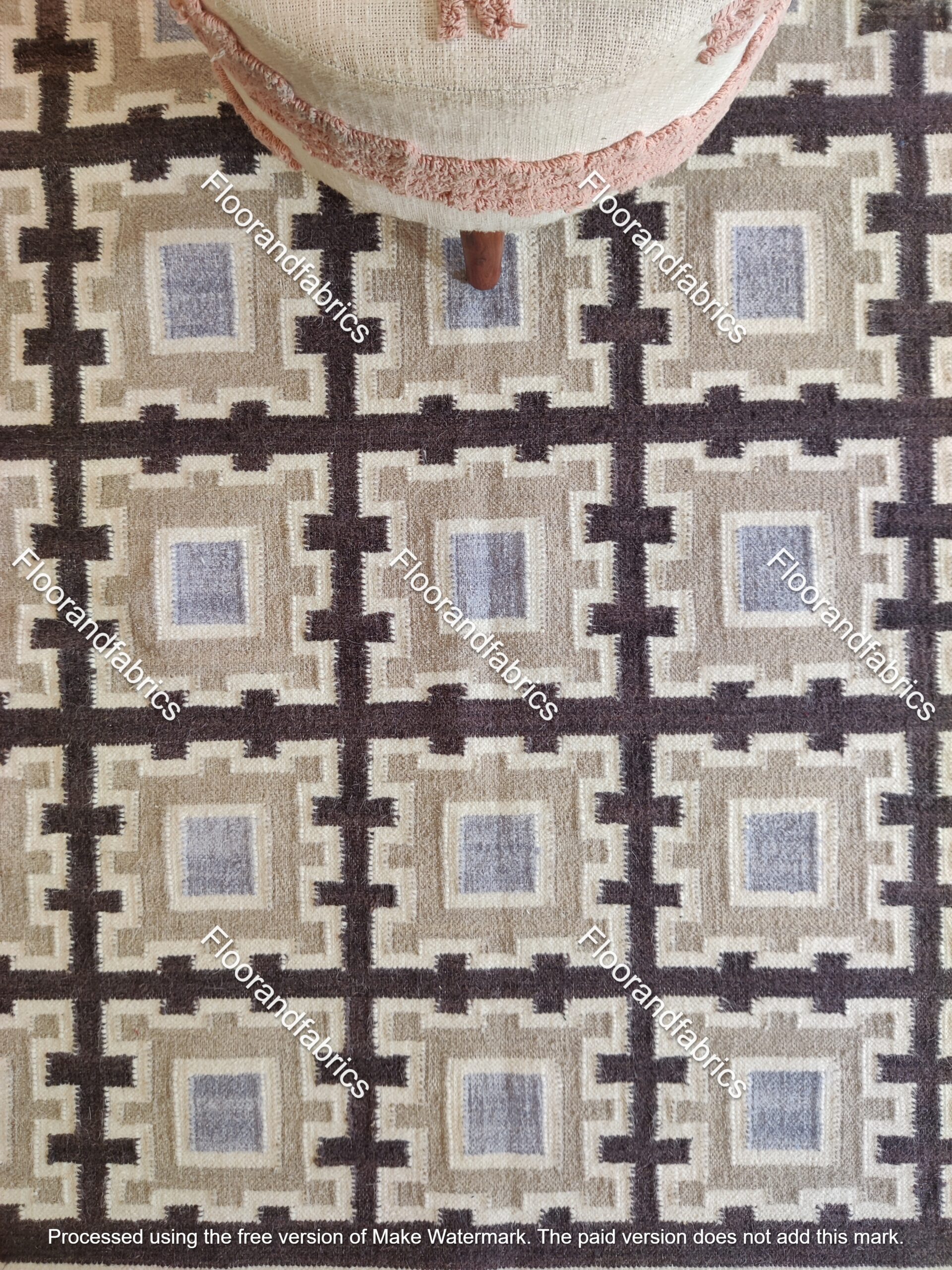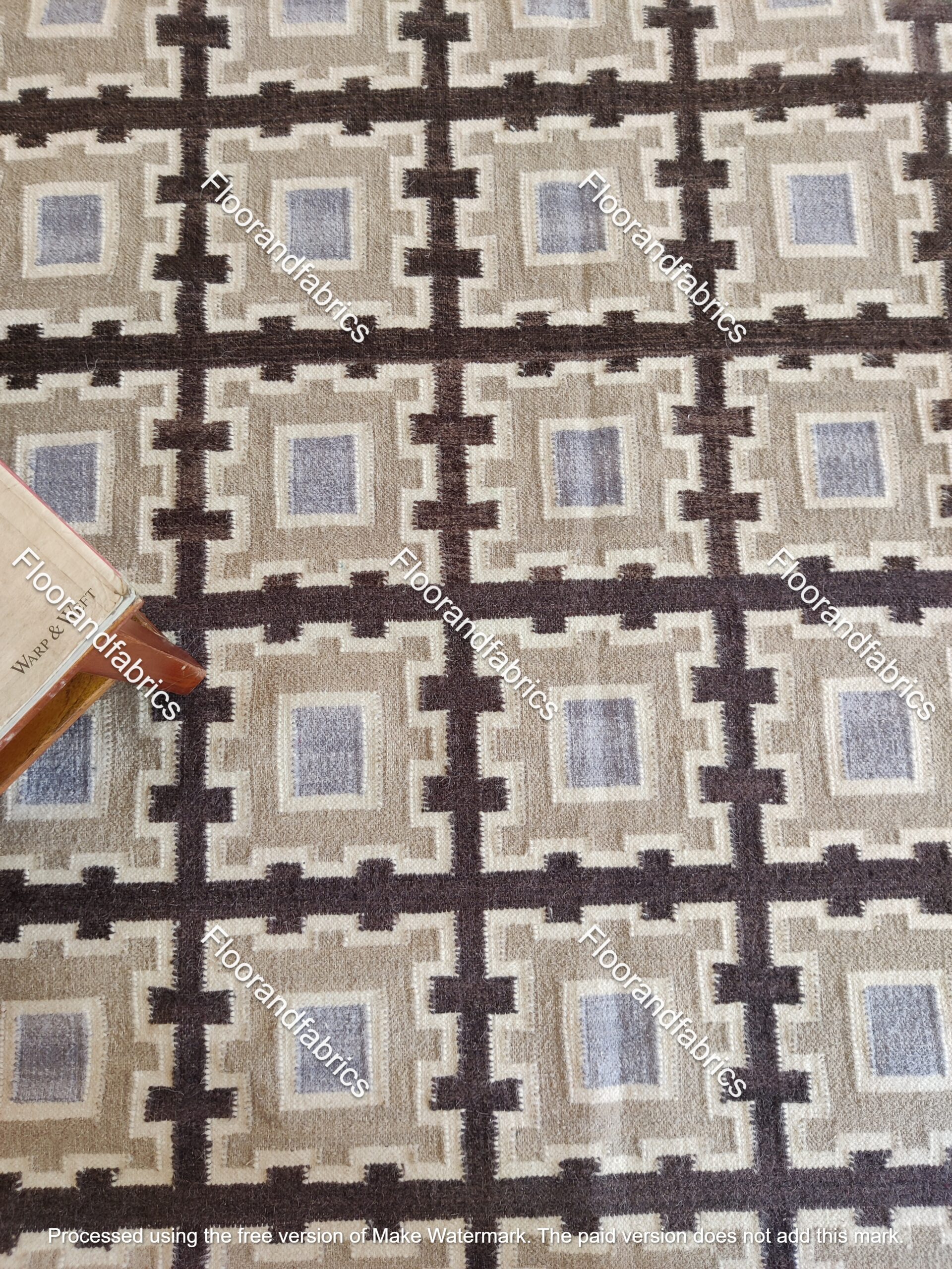 Handmade Cotton Wool Rug, Modern Vintage Designer Pattern Wool Kilim Rug