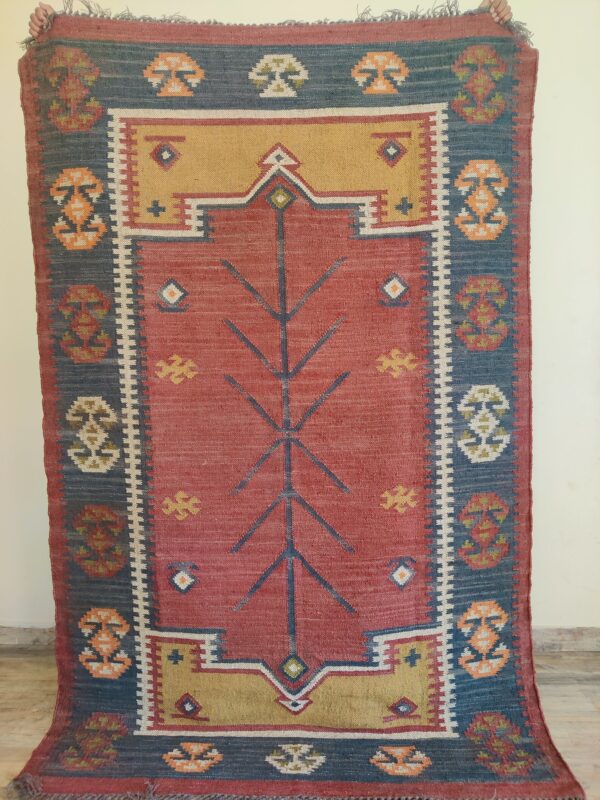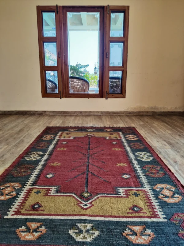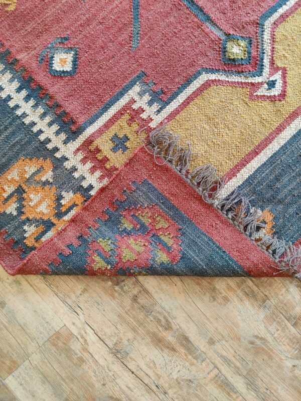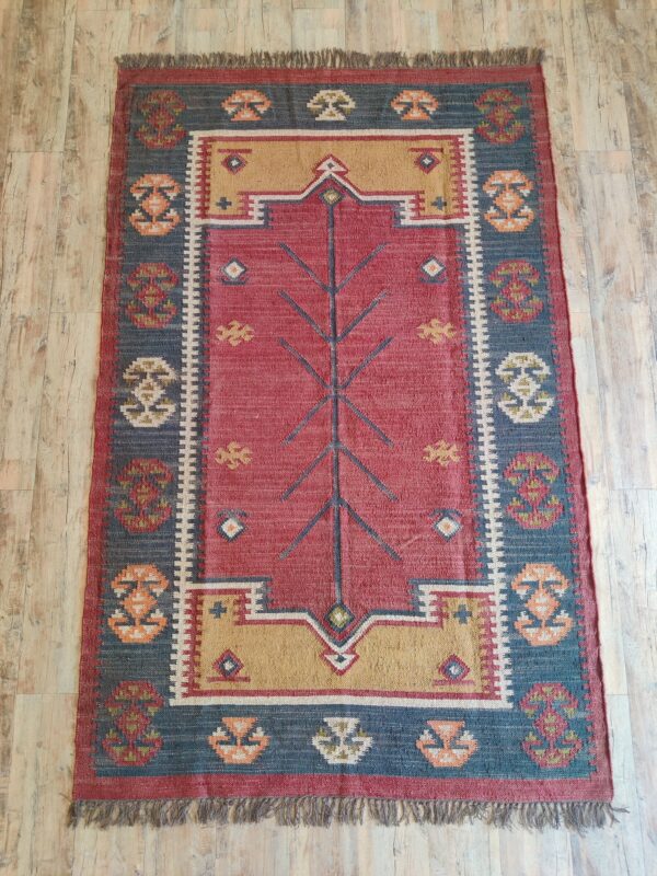 Handmade Large Kilim Rug, Handwoven, Wool and Jute Rug, Handmade Kilim Dhurrie Rug, Motifs, Oriental, Traditional Indian, Geometric, Turkish