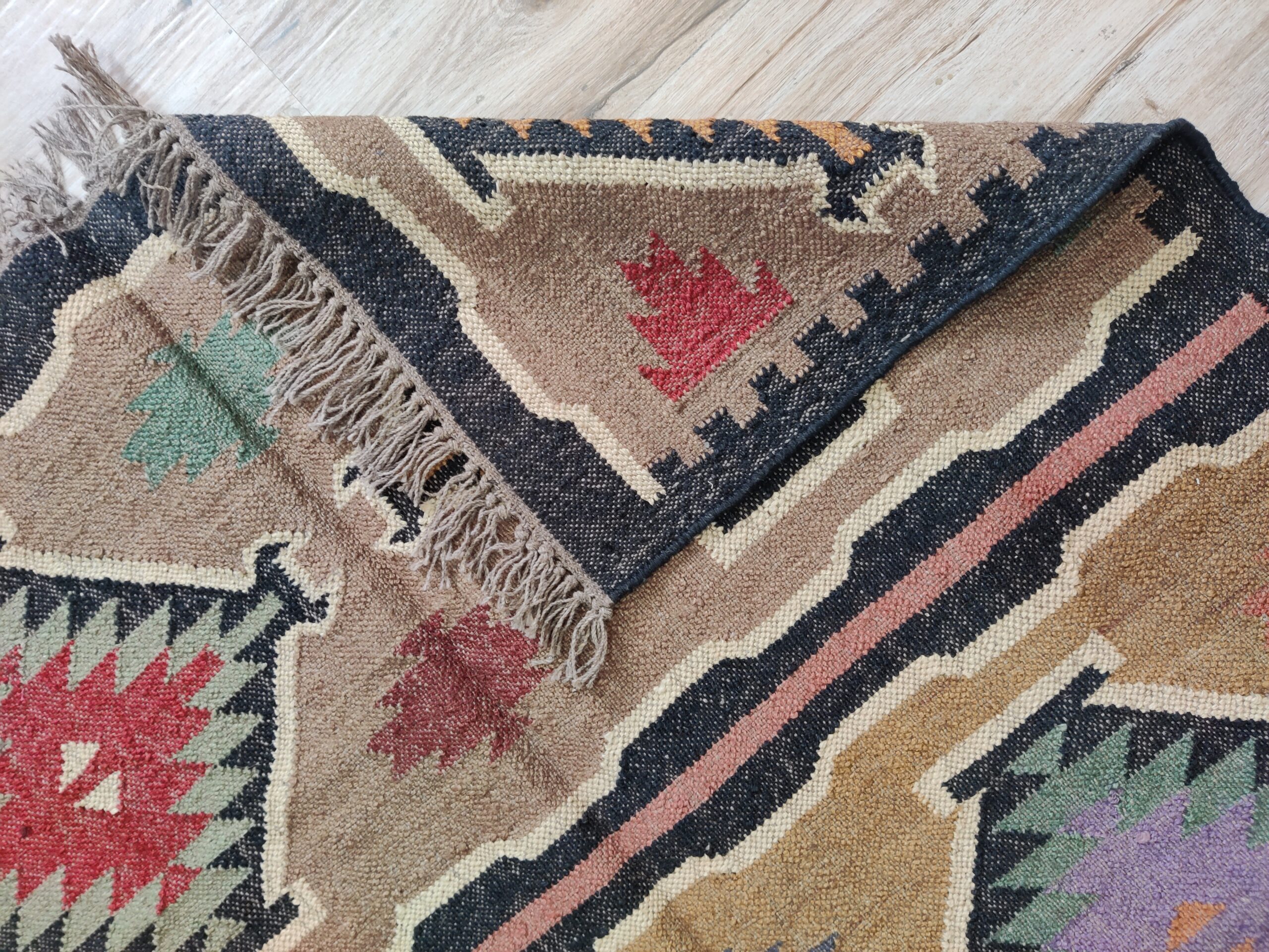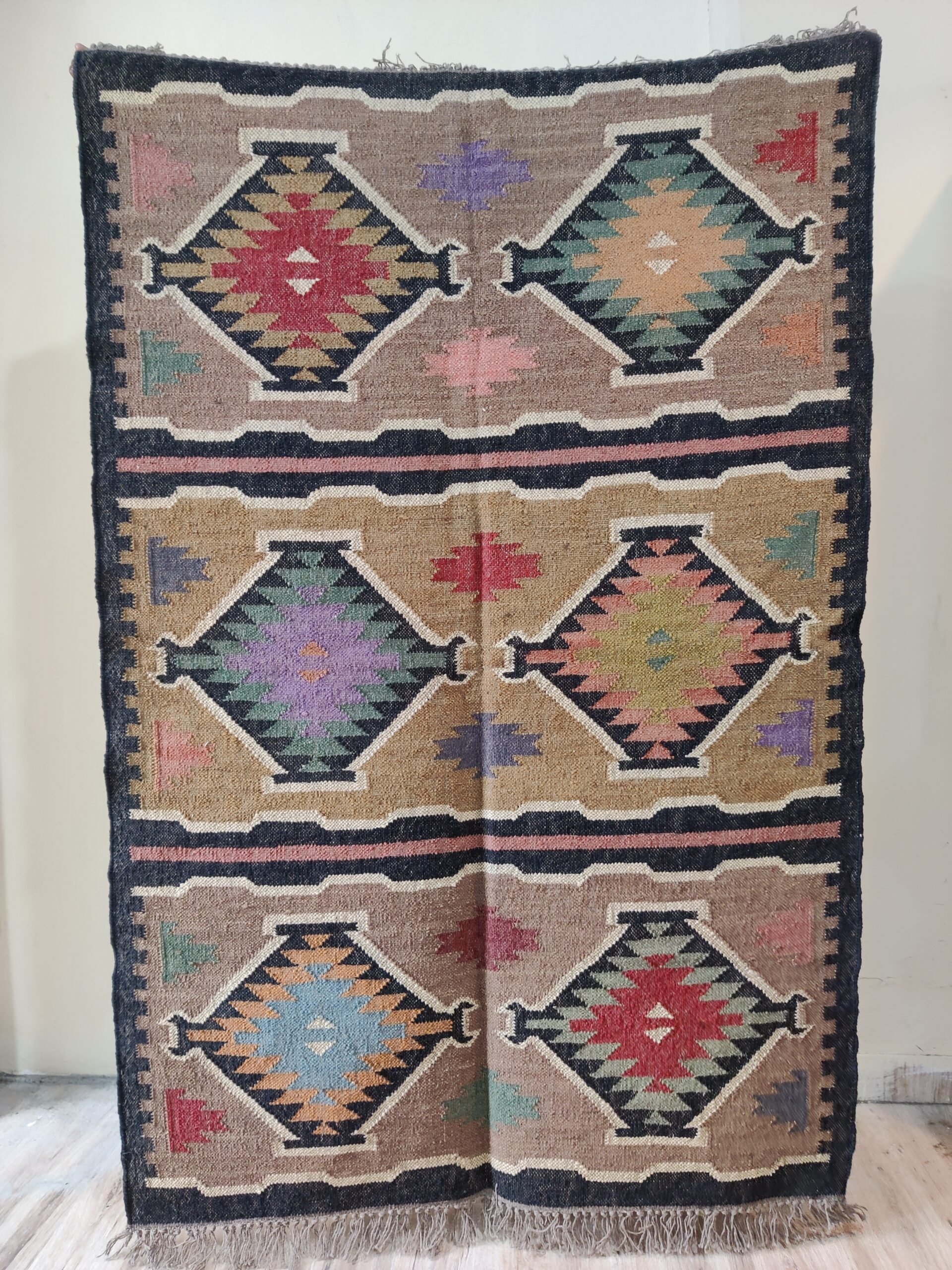 Crafted by experienced artisans, this natural handwoven jute rug is made with wool and jute. This rug is woven by hand on a traditional wooden loom. Made from hand-dyed, pure, sustainable jute and natural wool. This rug is reversible, with the same design on both sides. Wool: 30% Jute: 70%