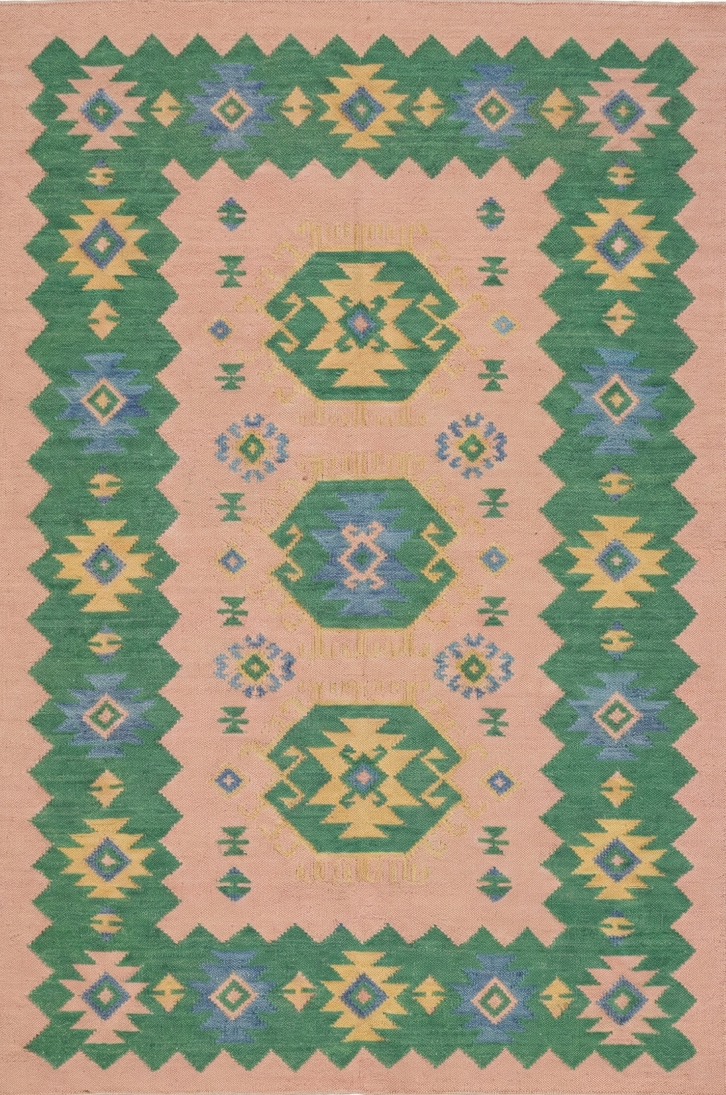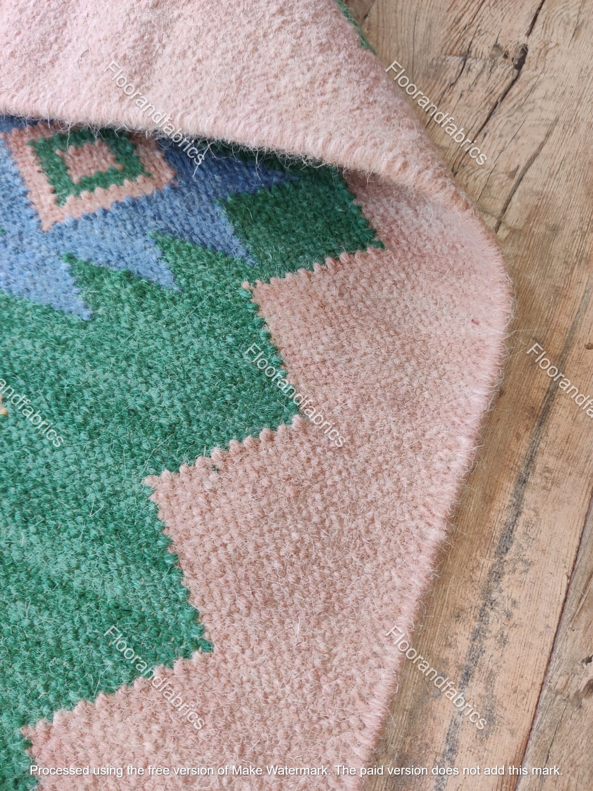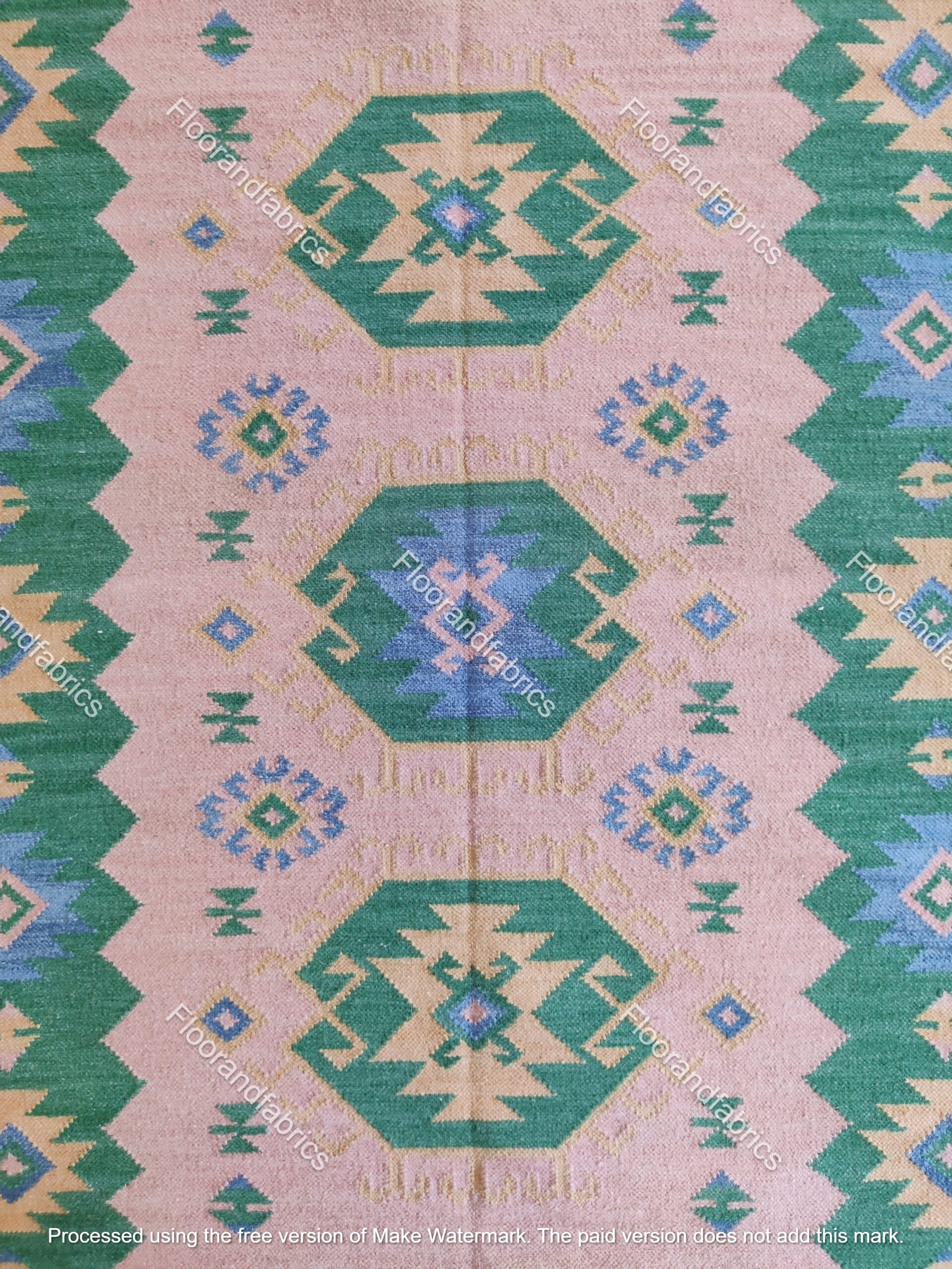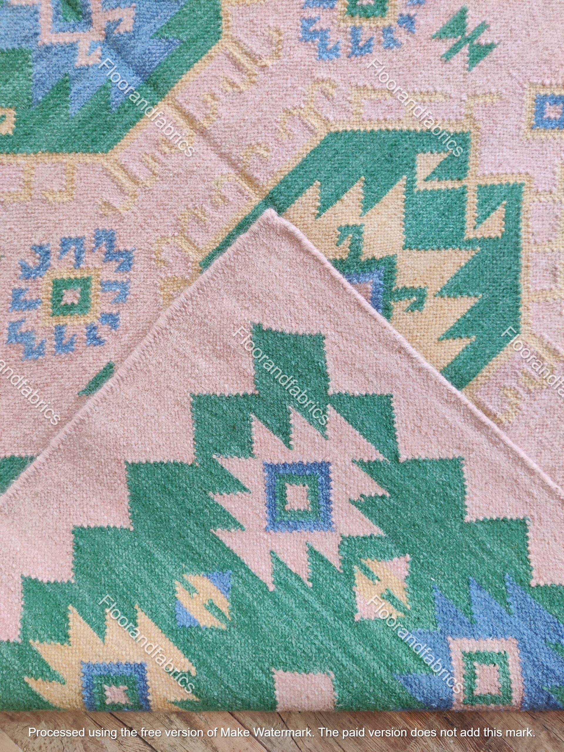 Handmade Wool Kilim Rug, Beige And Green Geometric Pattern Wool Kilim Rug, Home Decor Rug