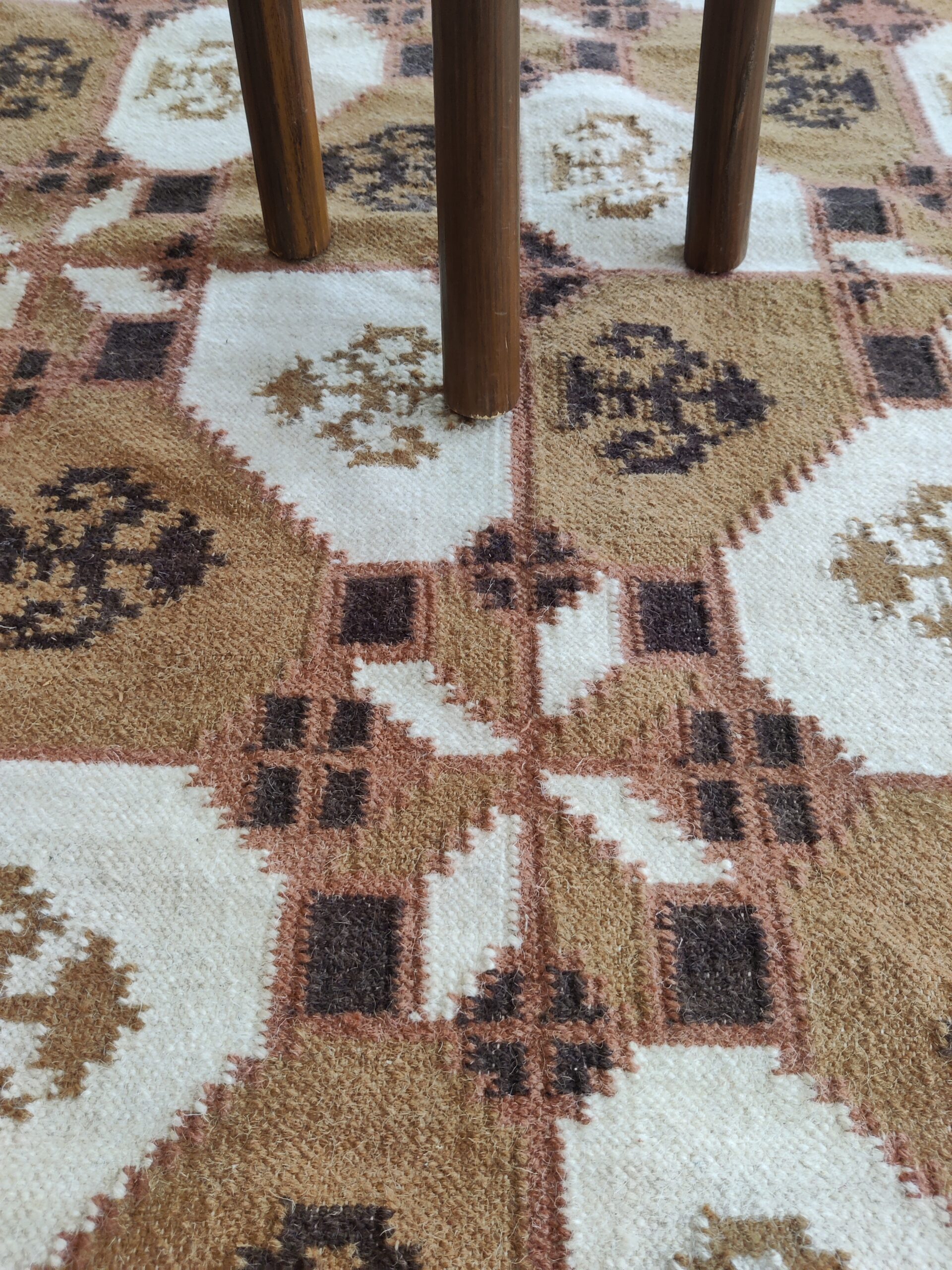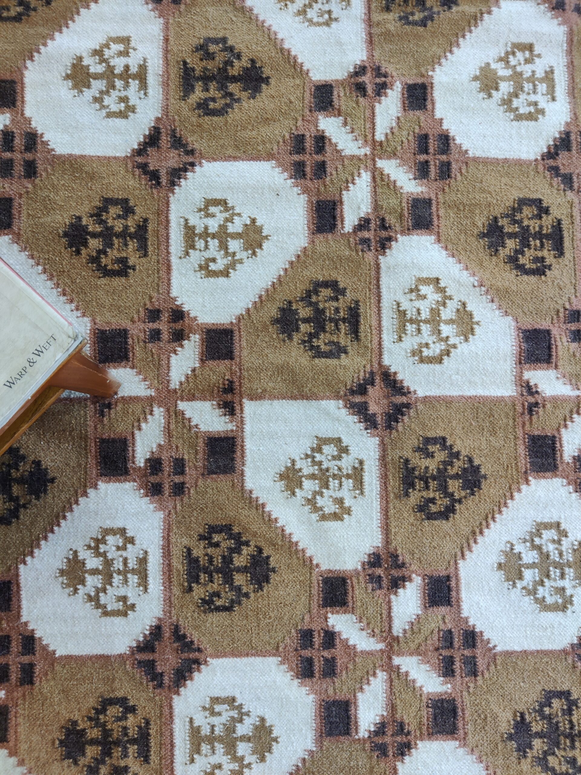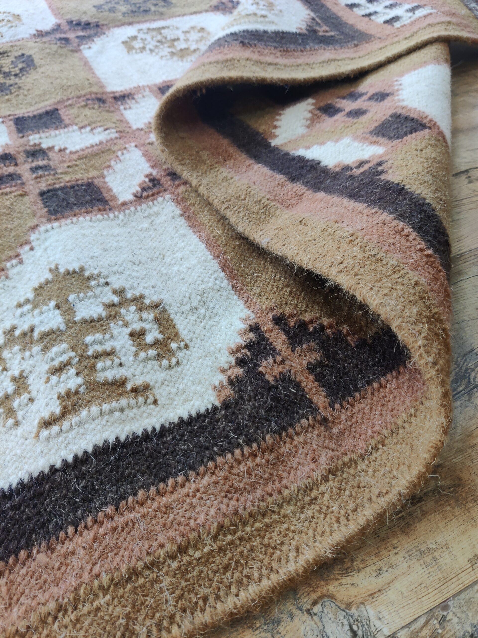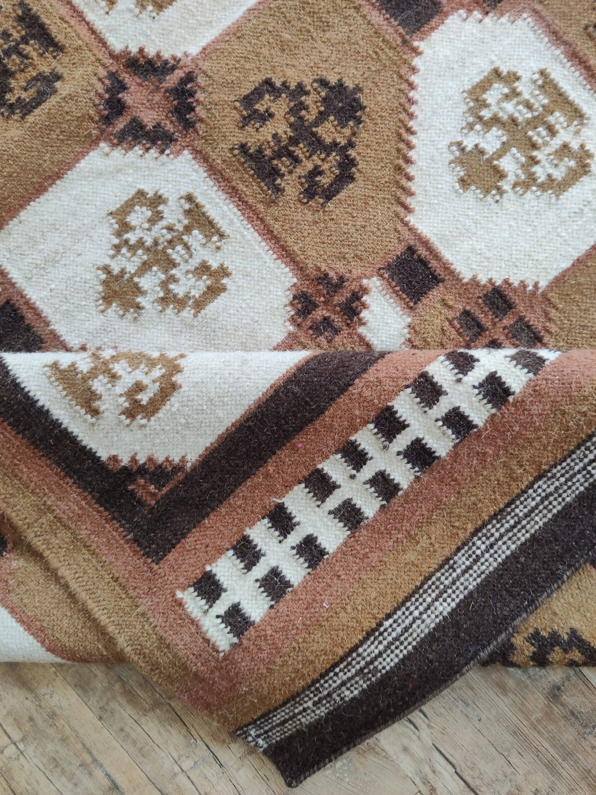 Handwoven Brown And White Geometric Pattern Rug, Cotton Wool Rug, Home Decor Rug
