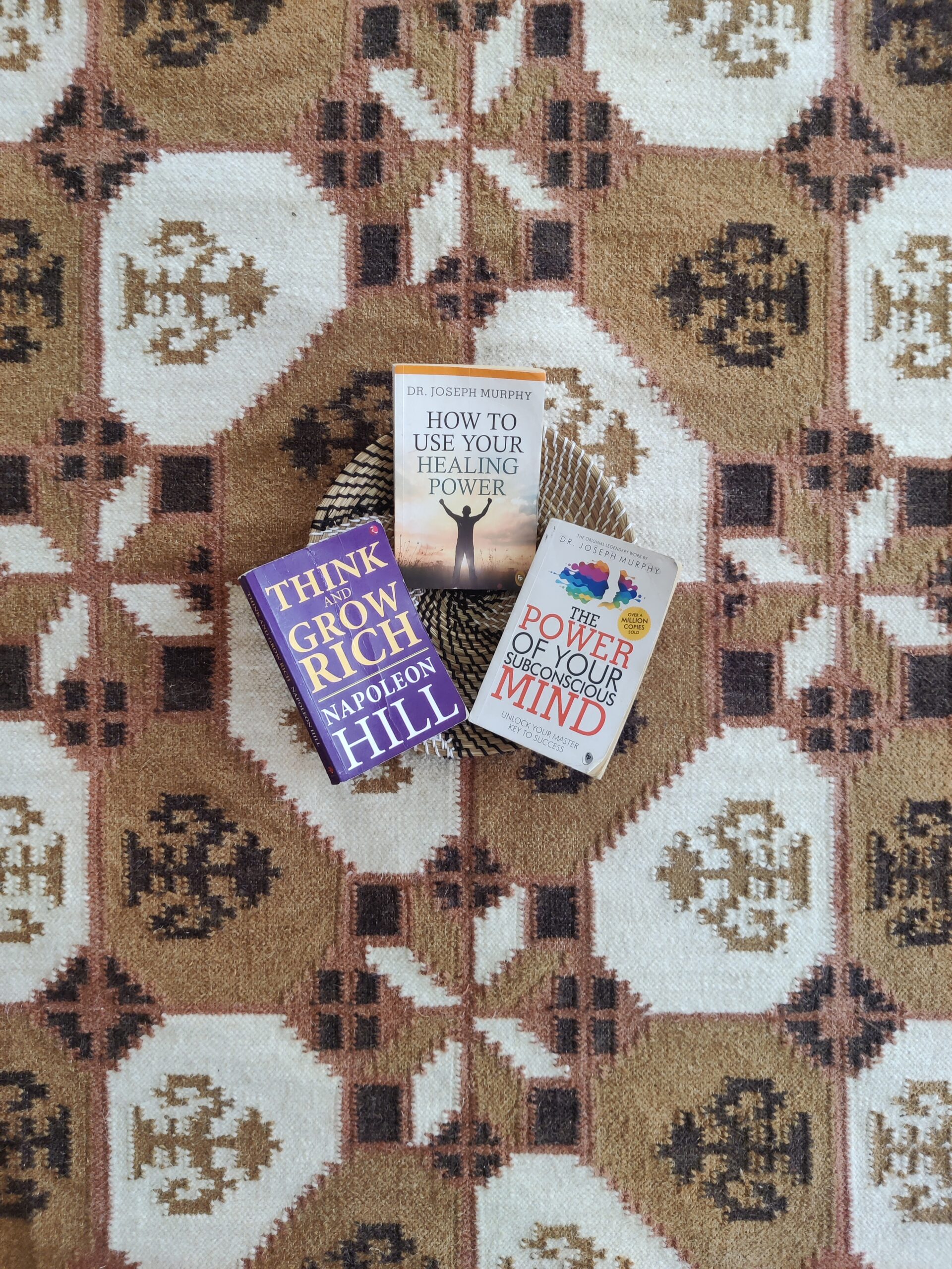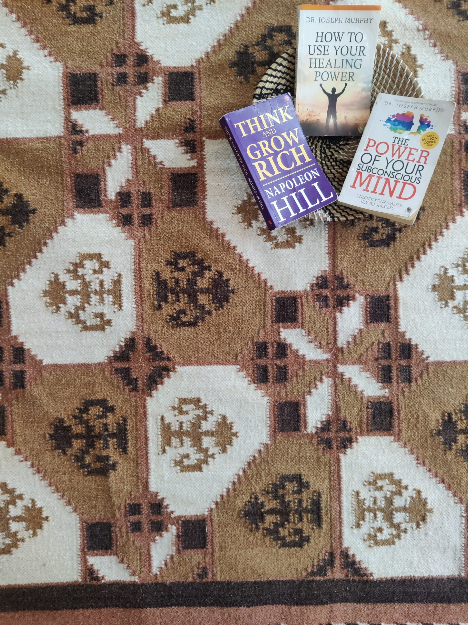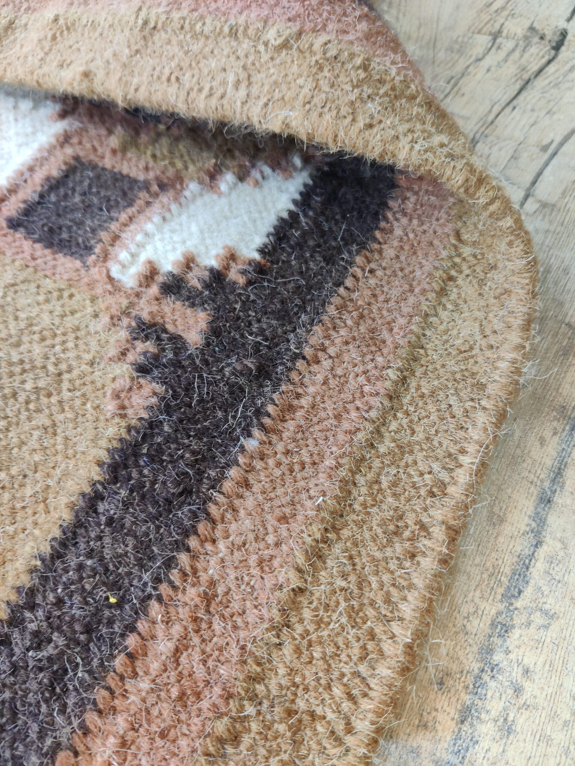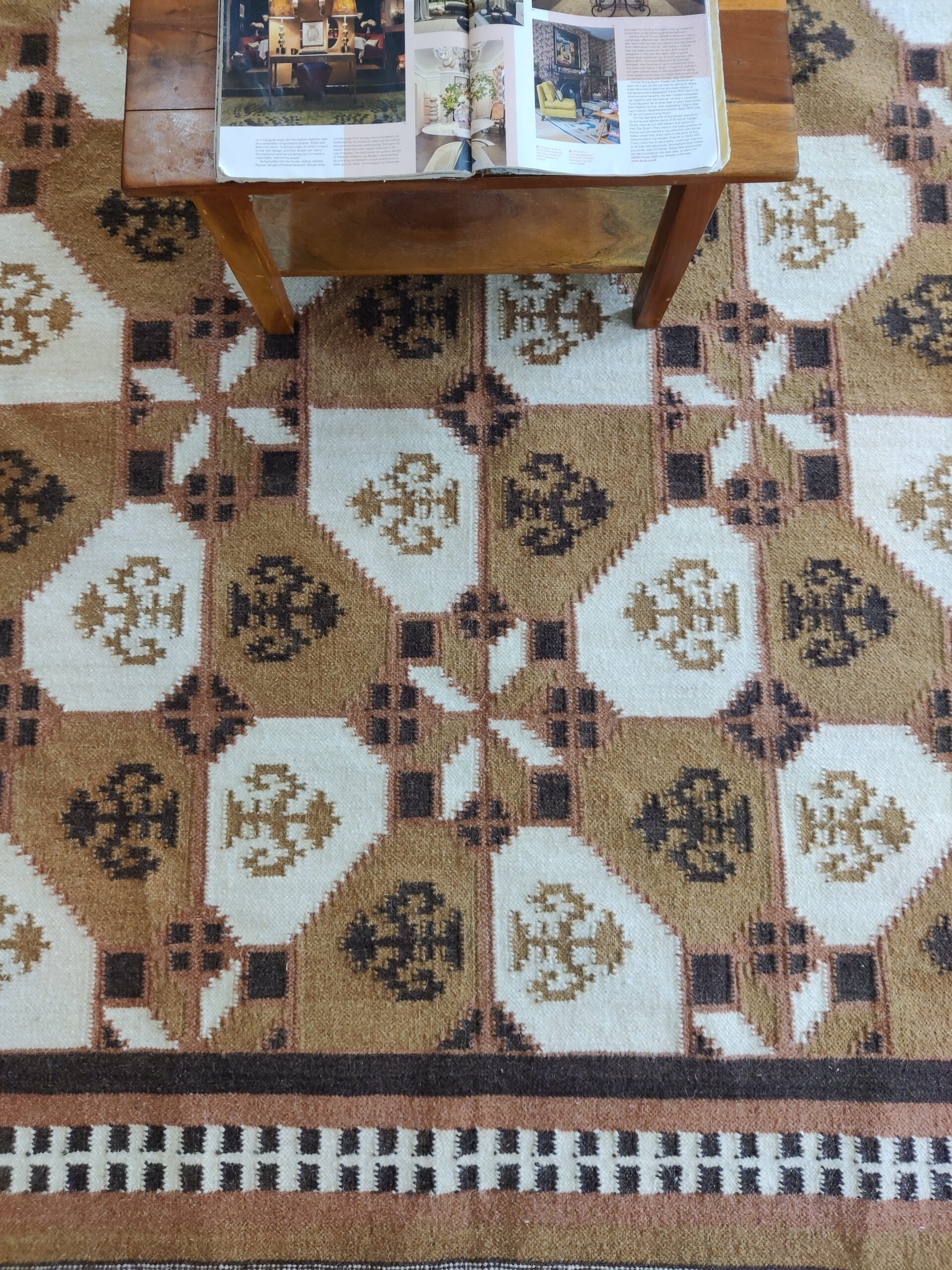 Handwoven Brown And White Geometric Pattern Rug, Cotton Wool Rug, Home Decor Rug