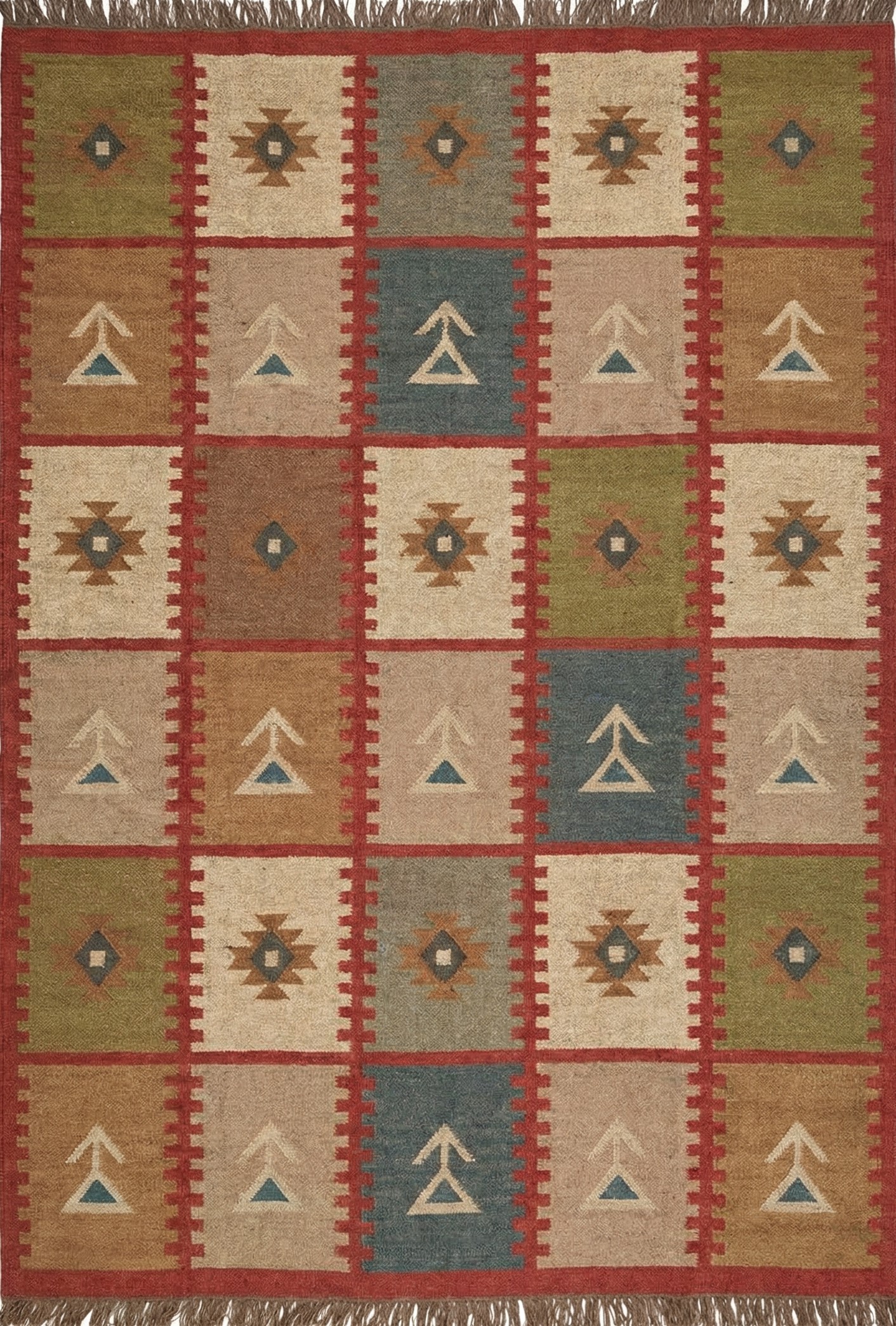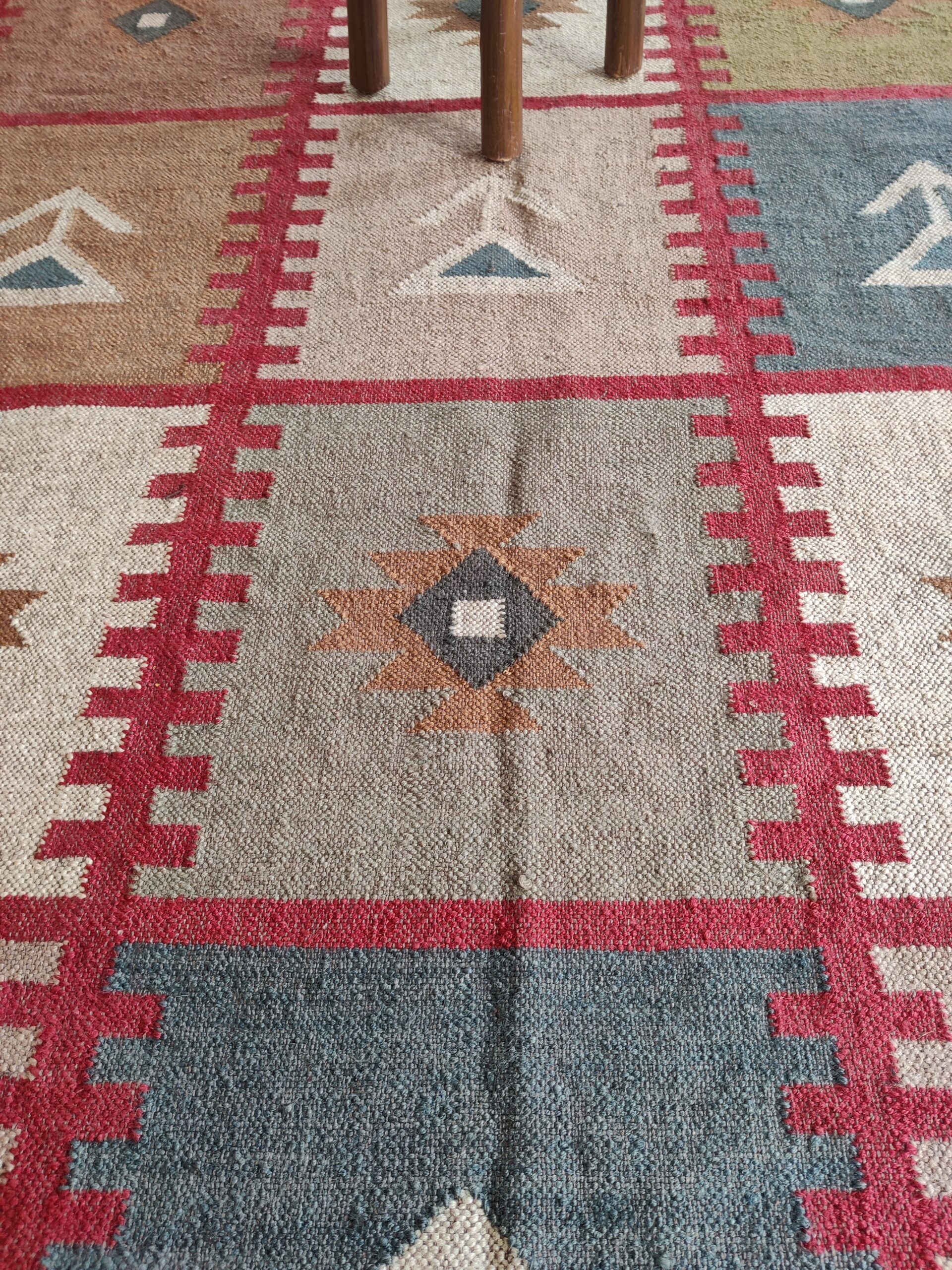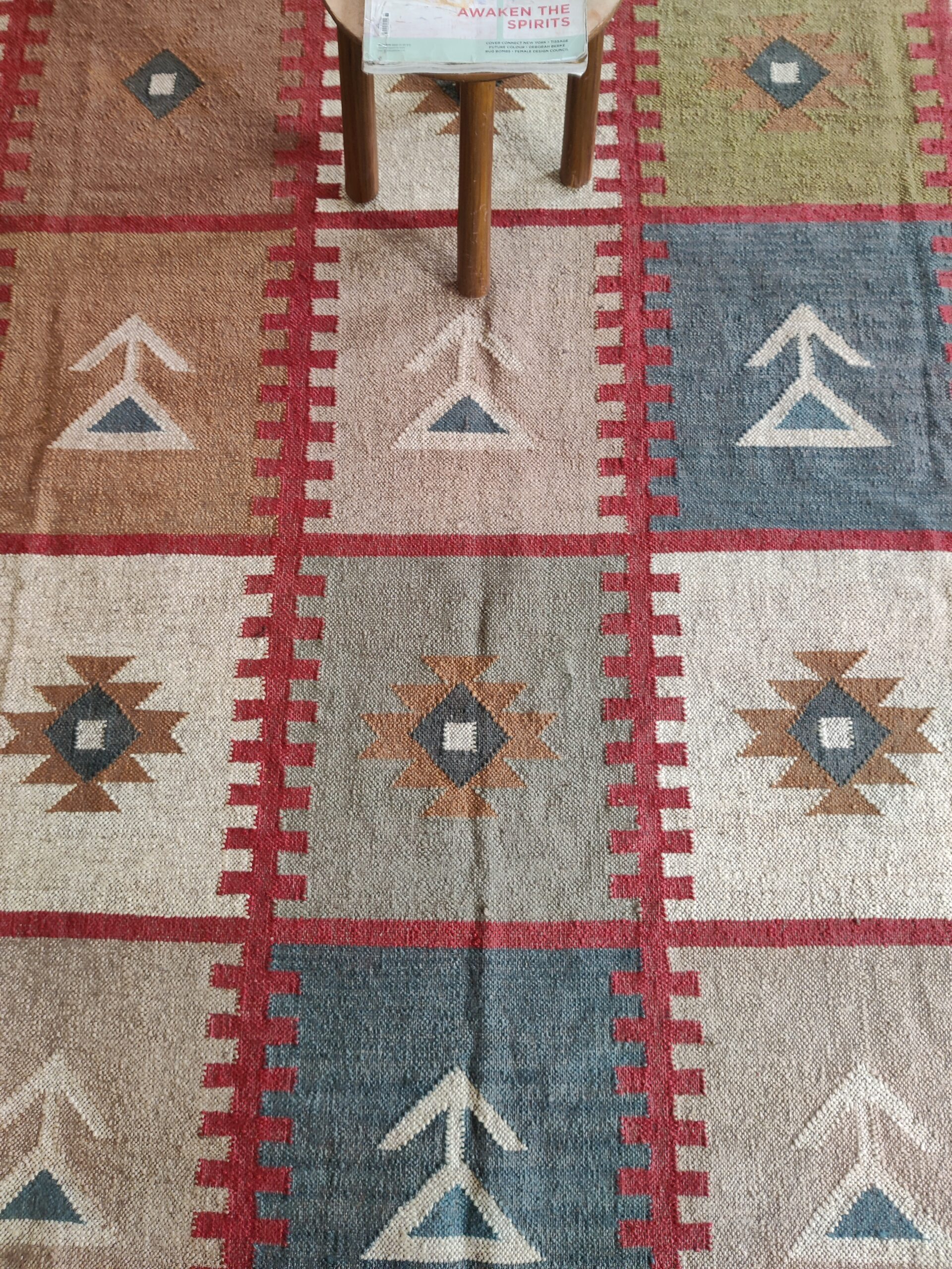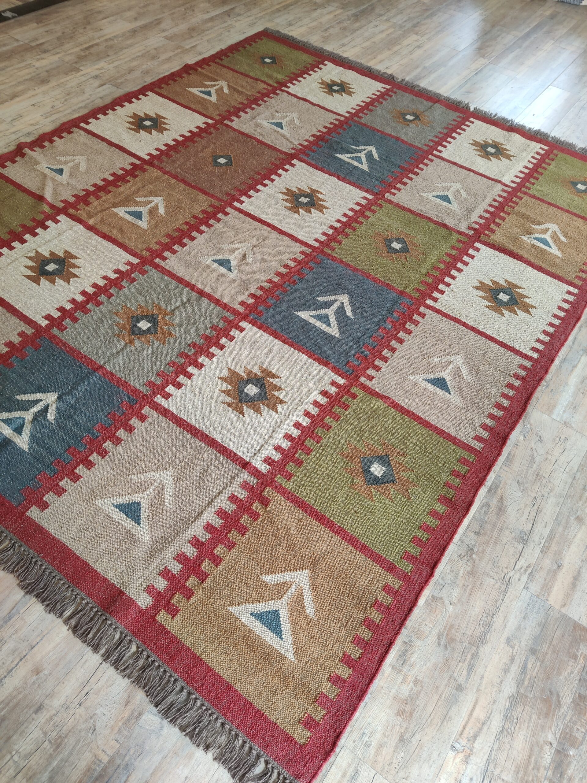 Handwoven Colourful Checkered Home Decor Rug, Wool Jute Rug, Home And Living Room Jute Kilim Rug