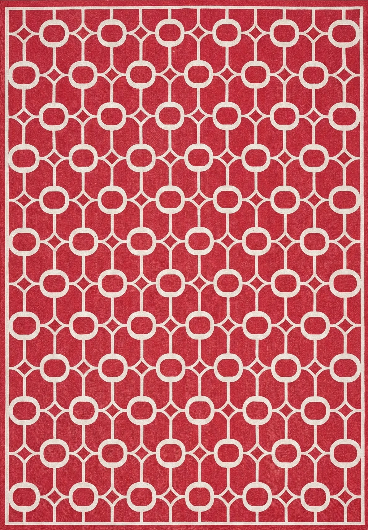 Handwoven Cotton Area Rug, Red and White Geometric Loop, Modern Flatweave Rug