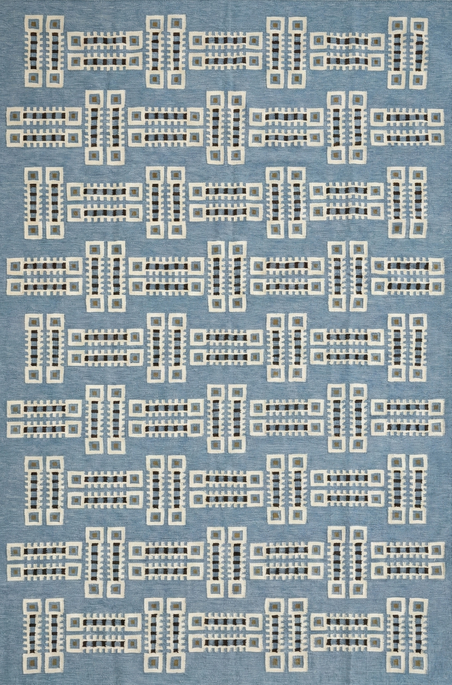 Handwoven Cotton Wool Geometric Pattern Rug, Modern Designer Rug, Blue And White Rug