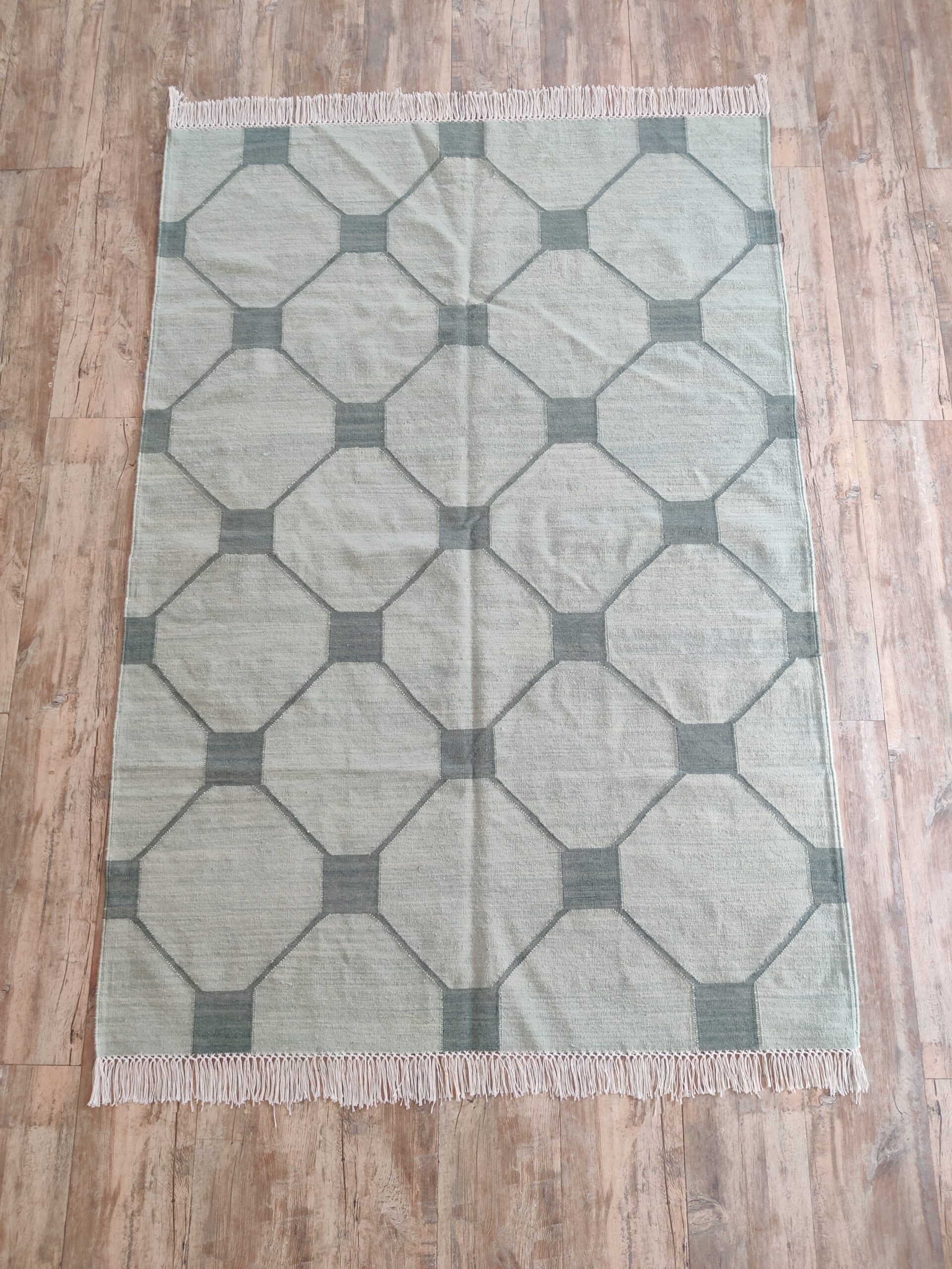 Handwoven Cotton Wool Rug, Home Decor Rug, Custom Size Wool Rug, Check Diamond Pattern Rug