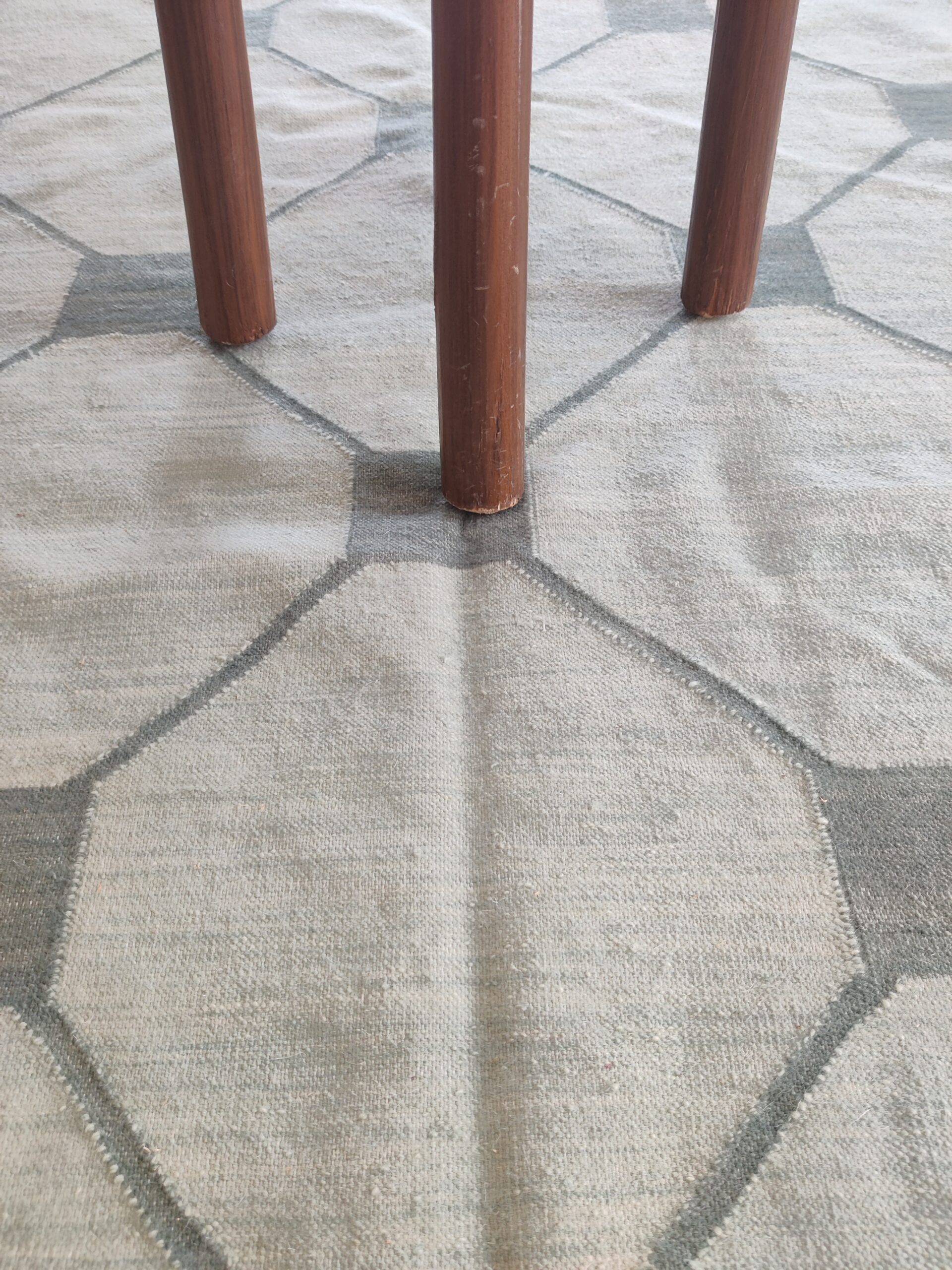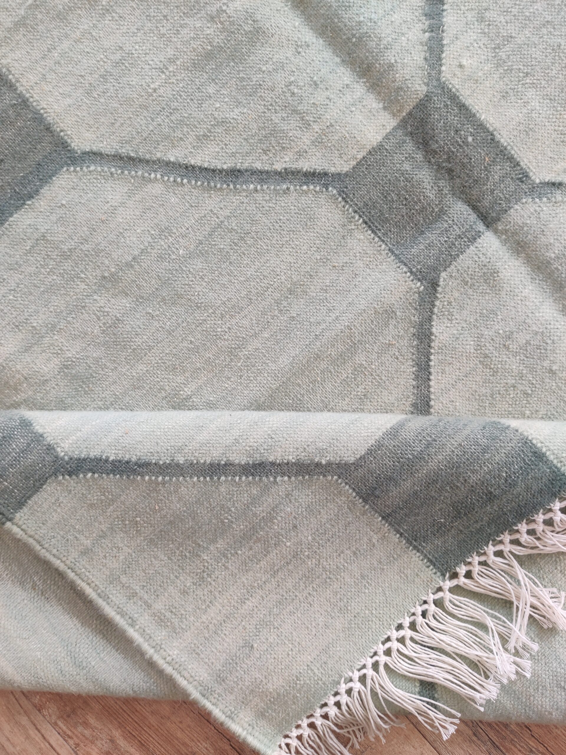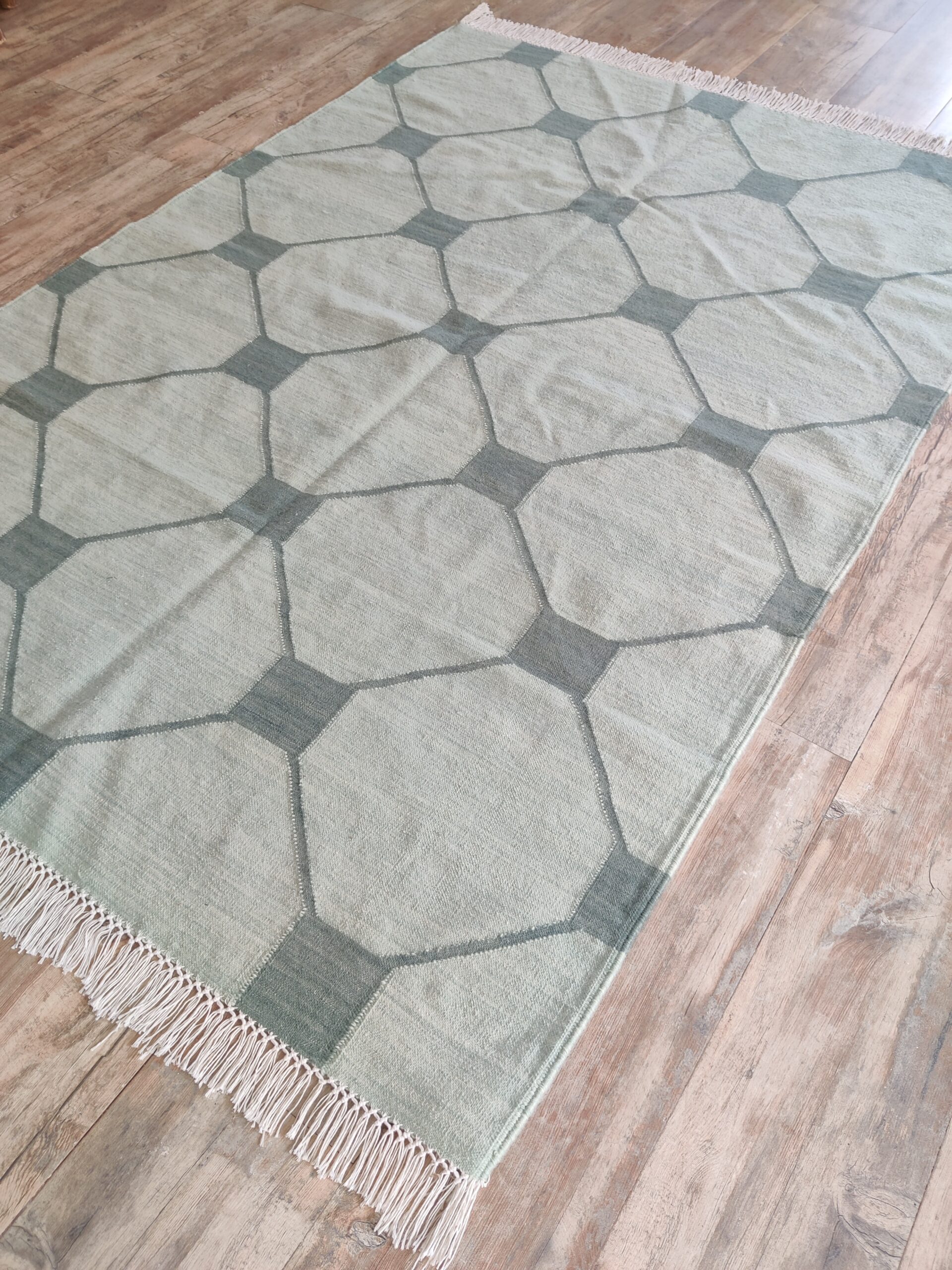 Transform your living space with our exquisite handmade wool cotton rug. This stunning piece is not just a functional addition to your home, but a statement of elegance and craftsmanship.