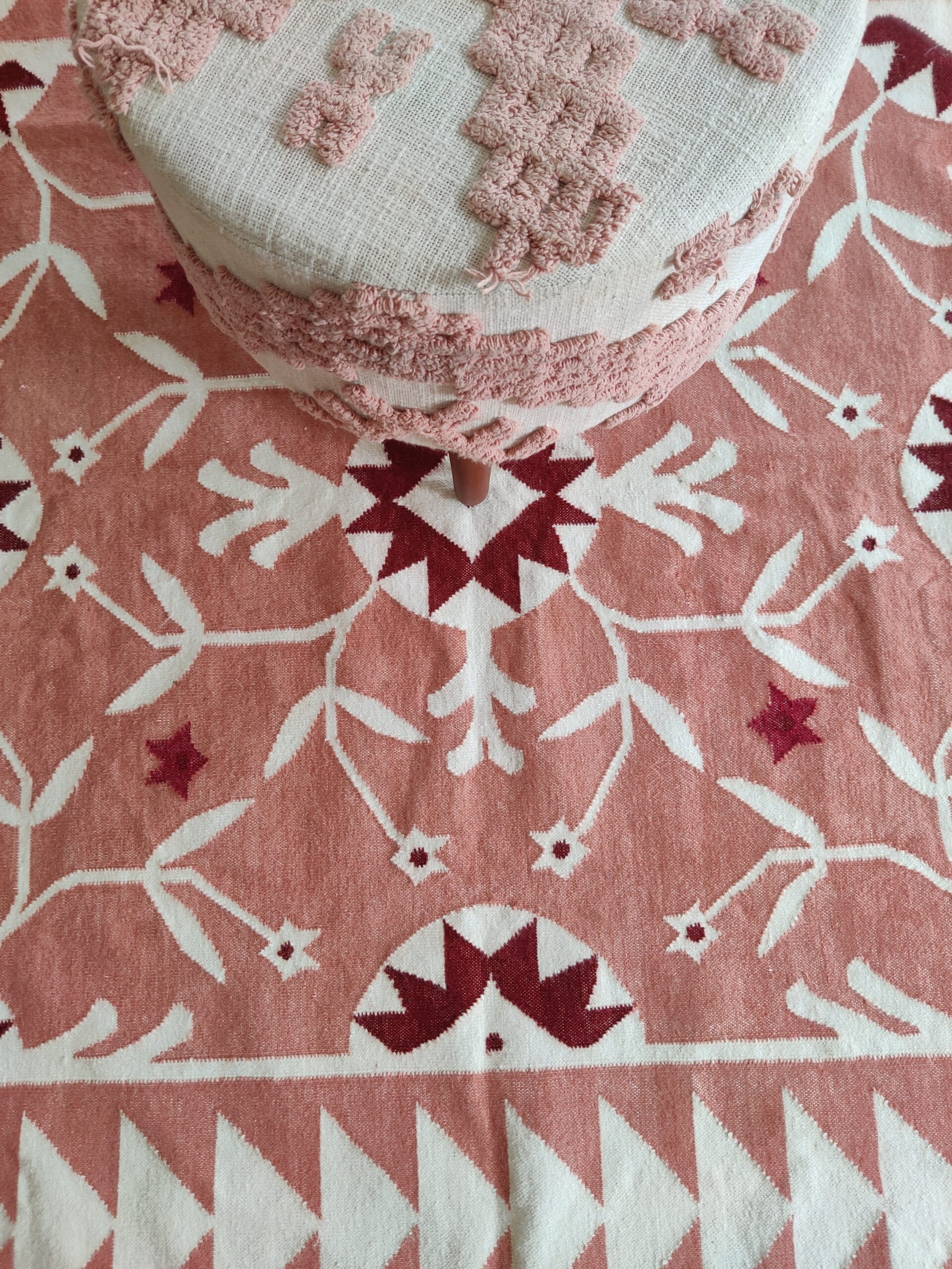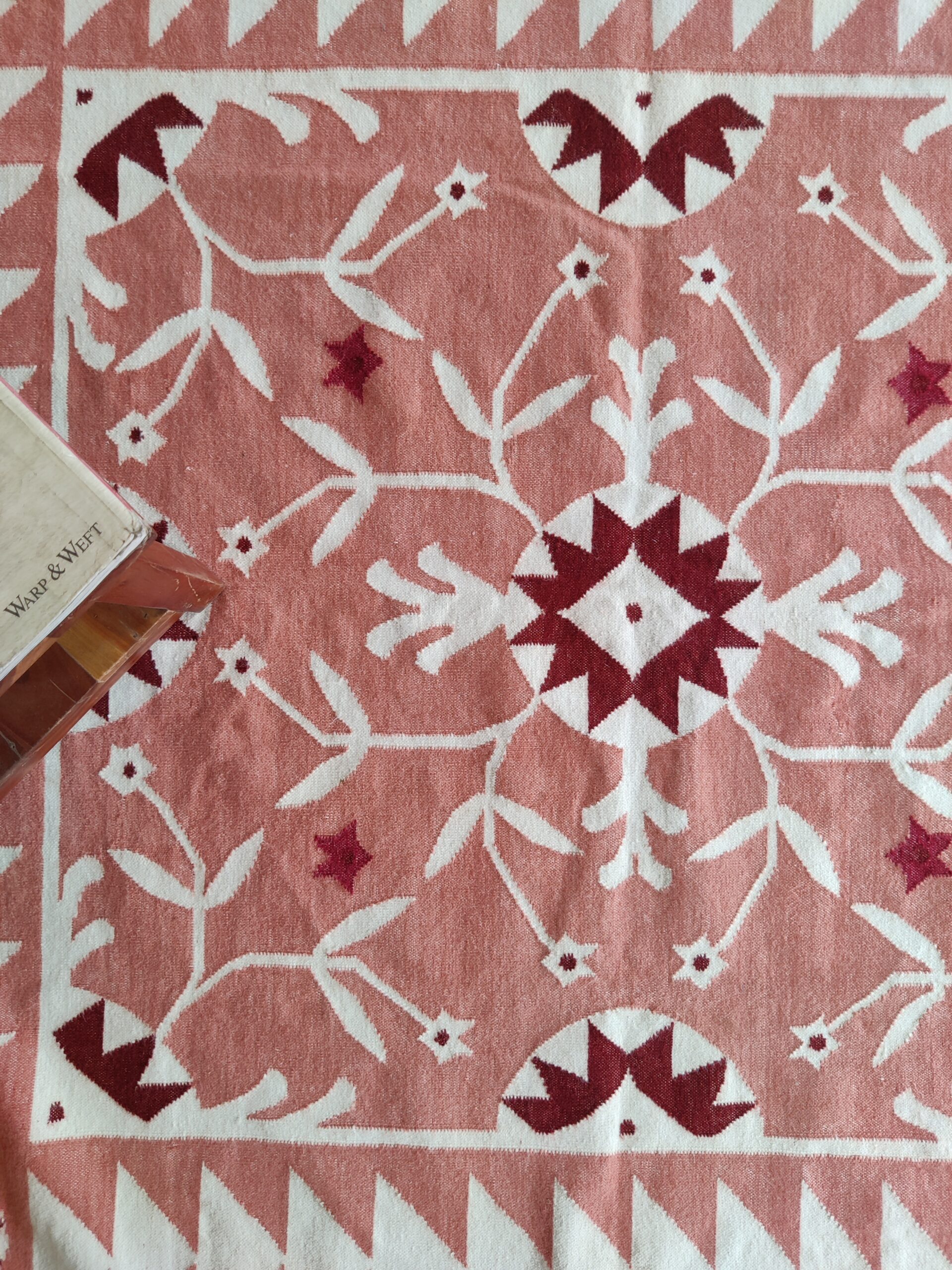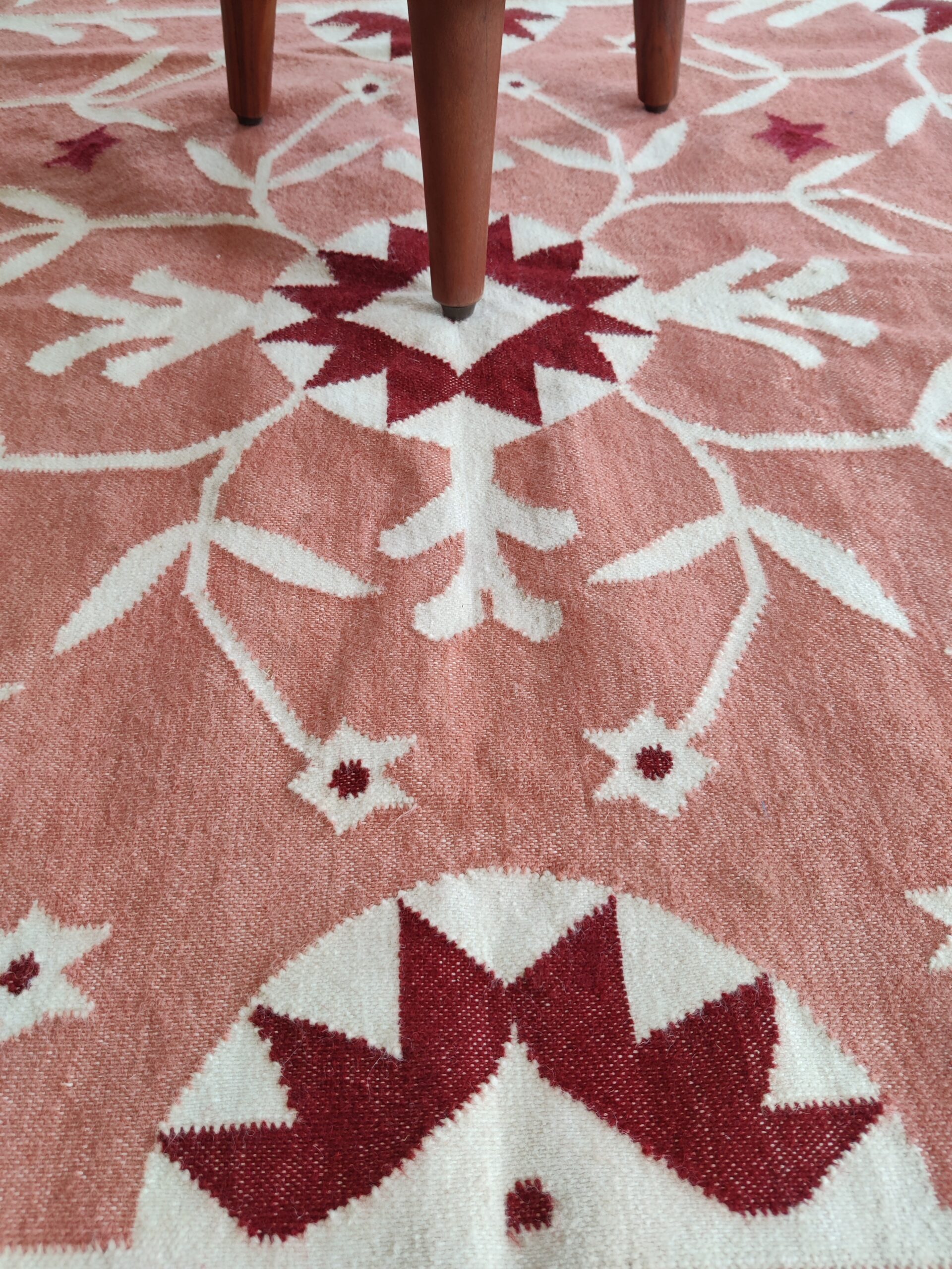 Handwoven Cotton Wool Rug, Home Decor Rug, Modern Floral Pattern Living Room, Bedroom Rug