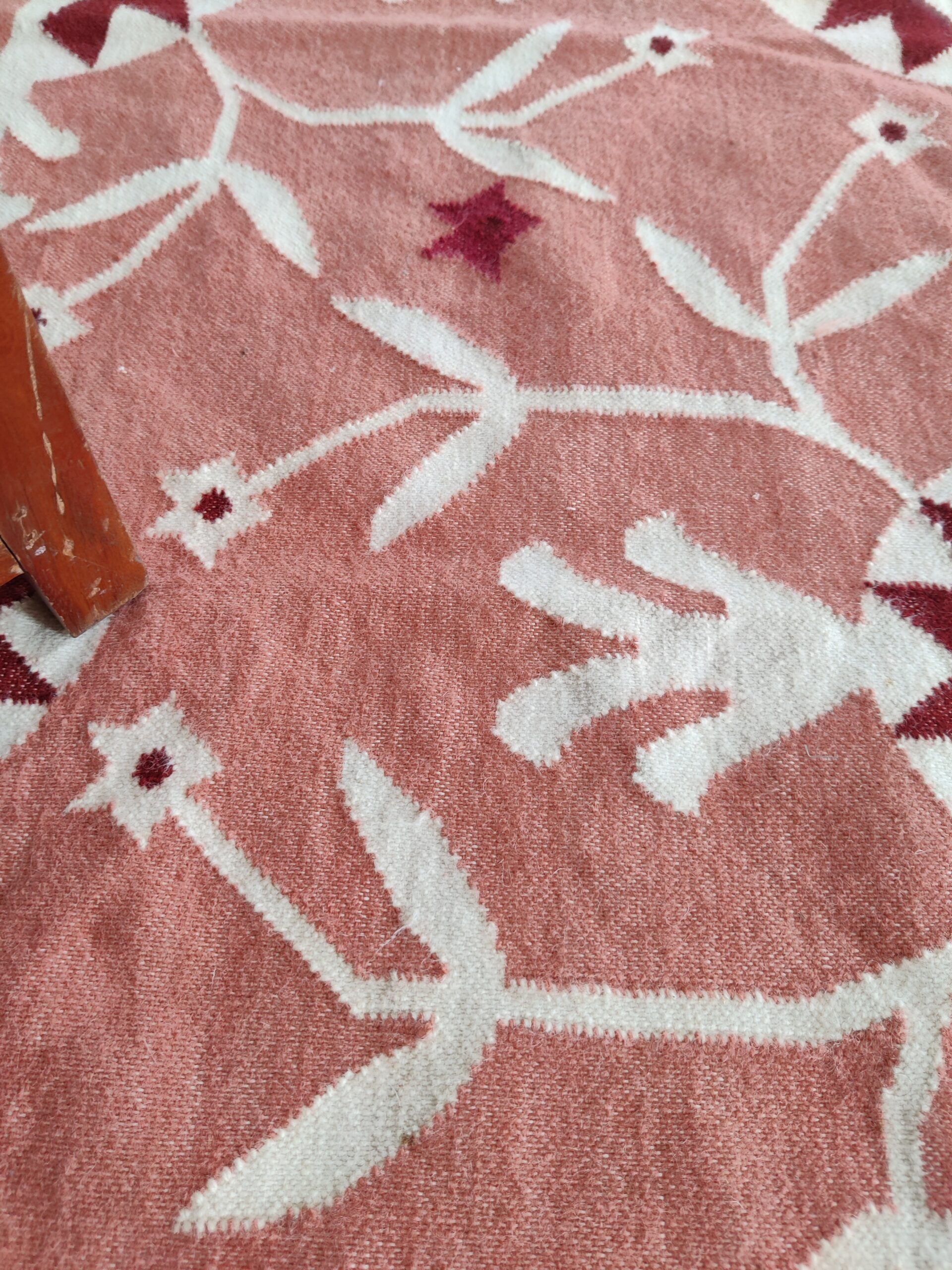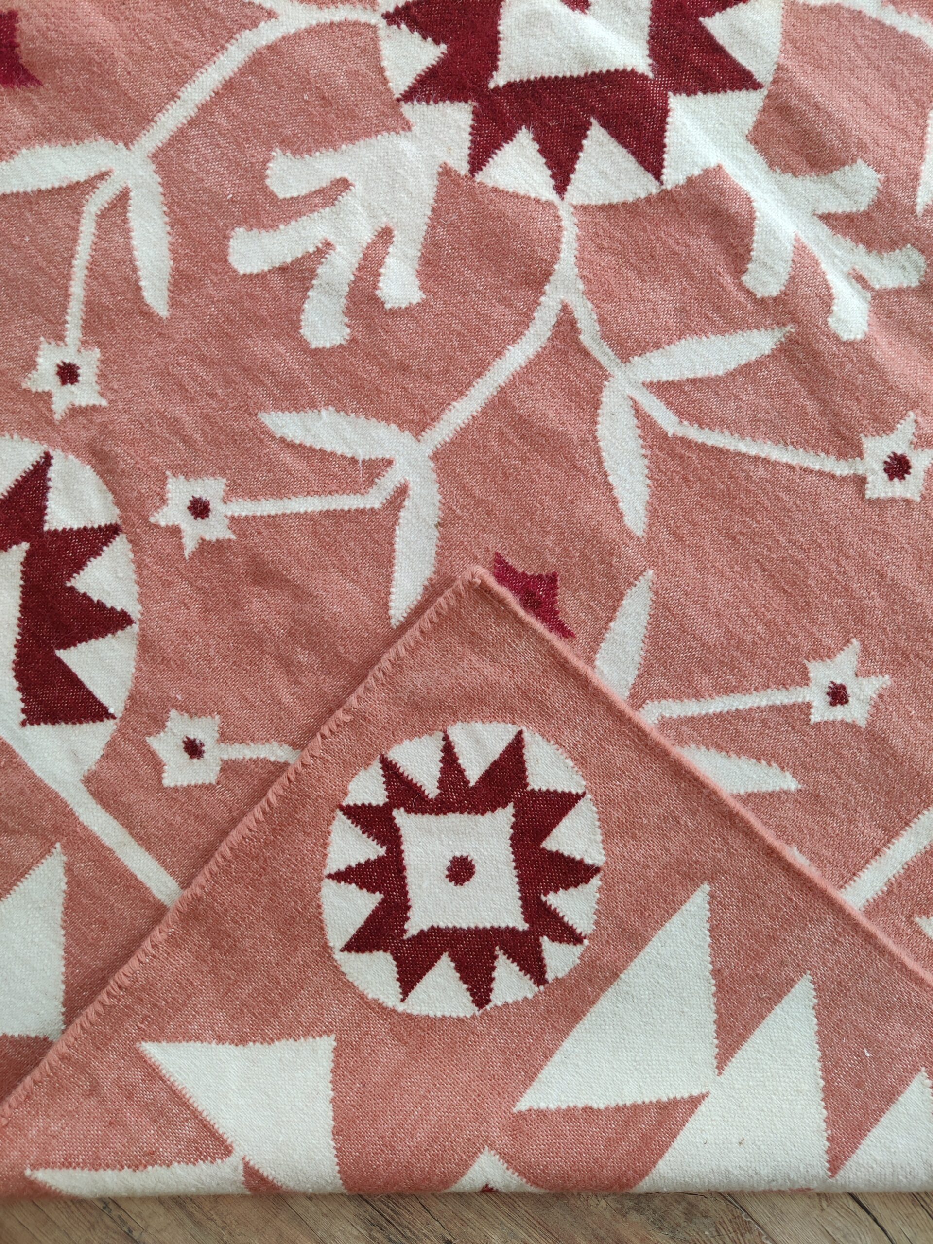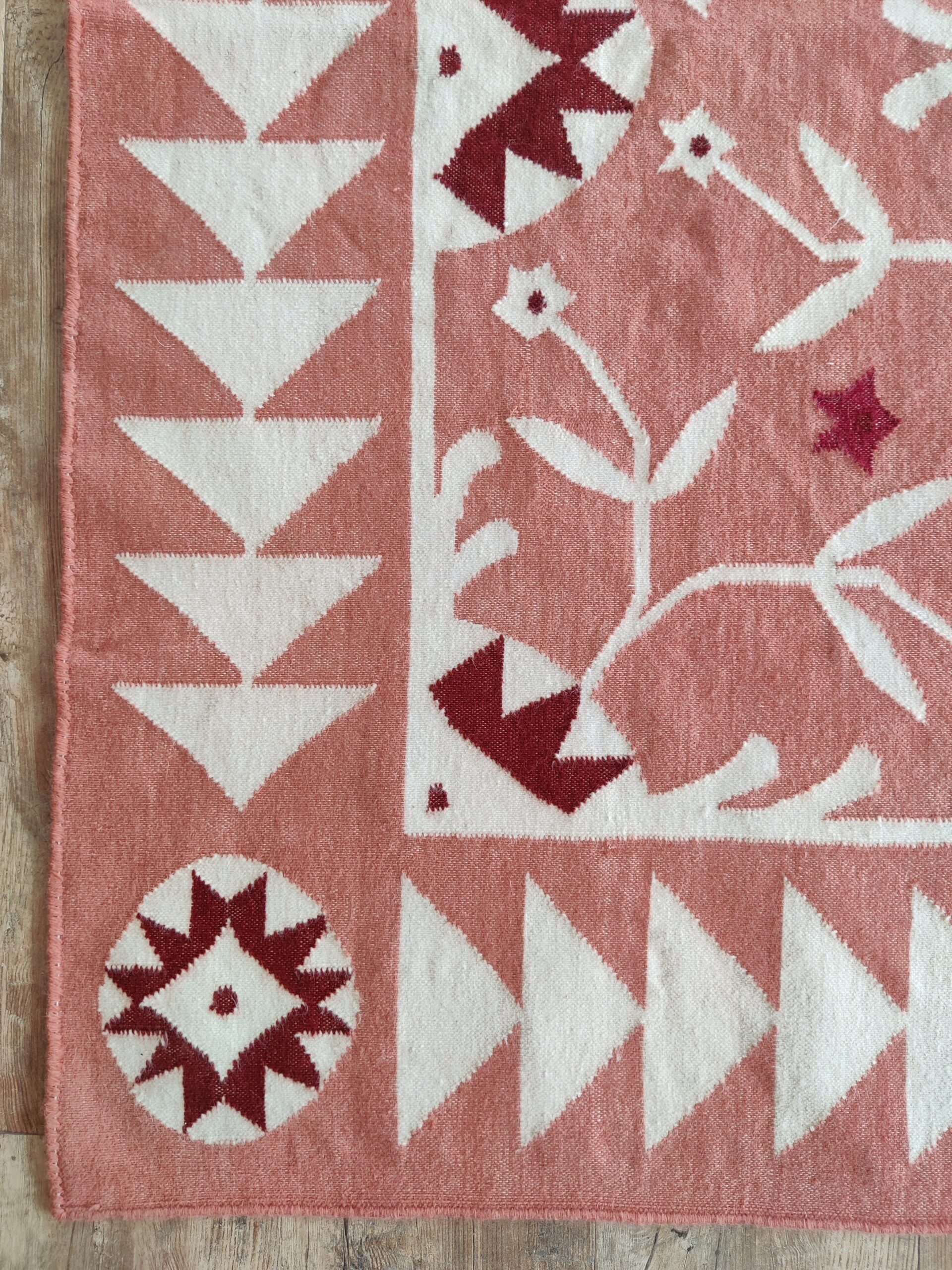Handwoven Cotton Wool Rug, Home Decor Rug, Modern Floral Pattern Living Room, Bedroom Rug