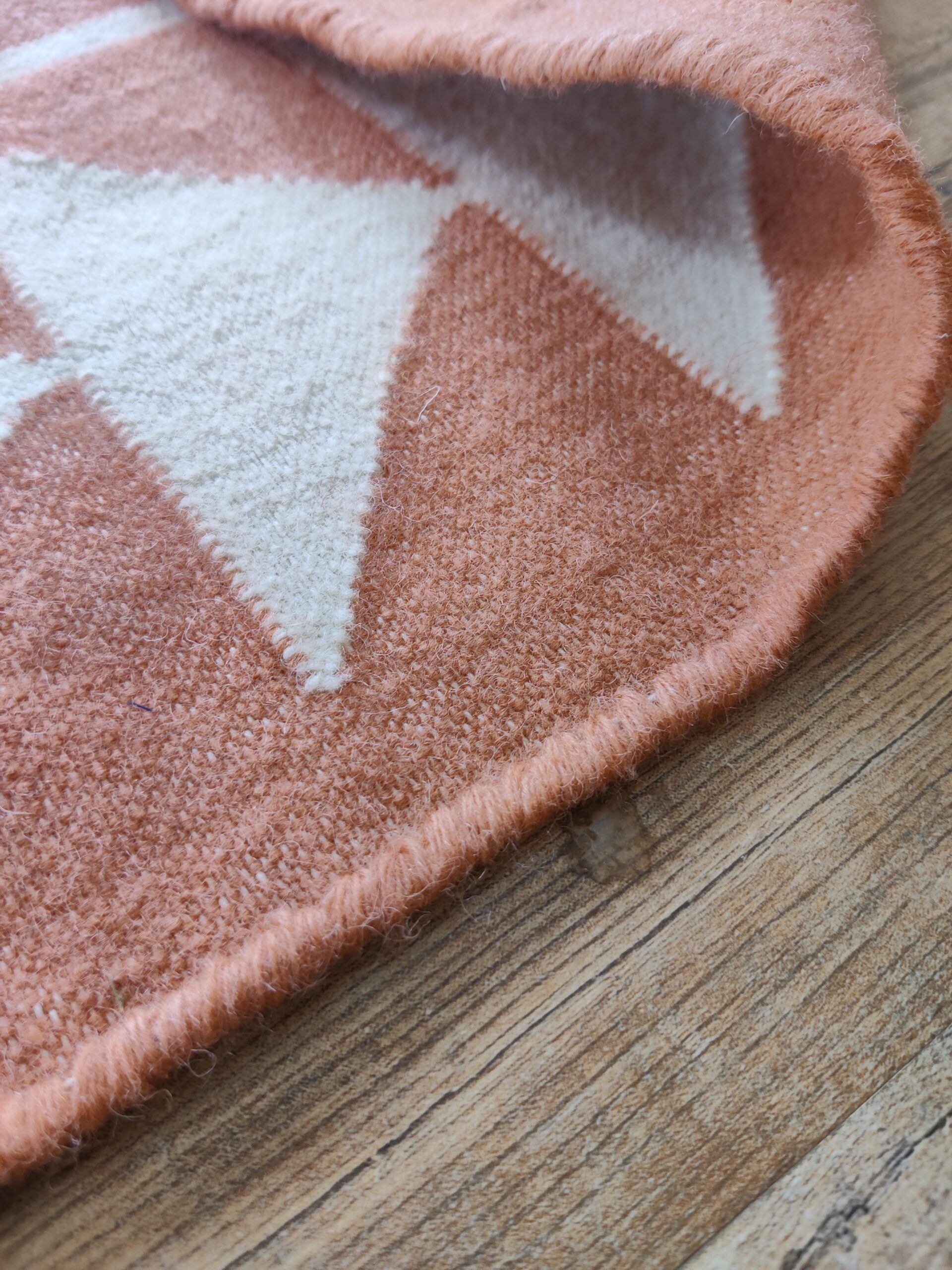 Transform your living space with our exquisite handmade wool cotton rug. This stunning piece is not just a functional addition to your home, but a statement of elegance and craftsmanship.