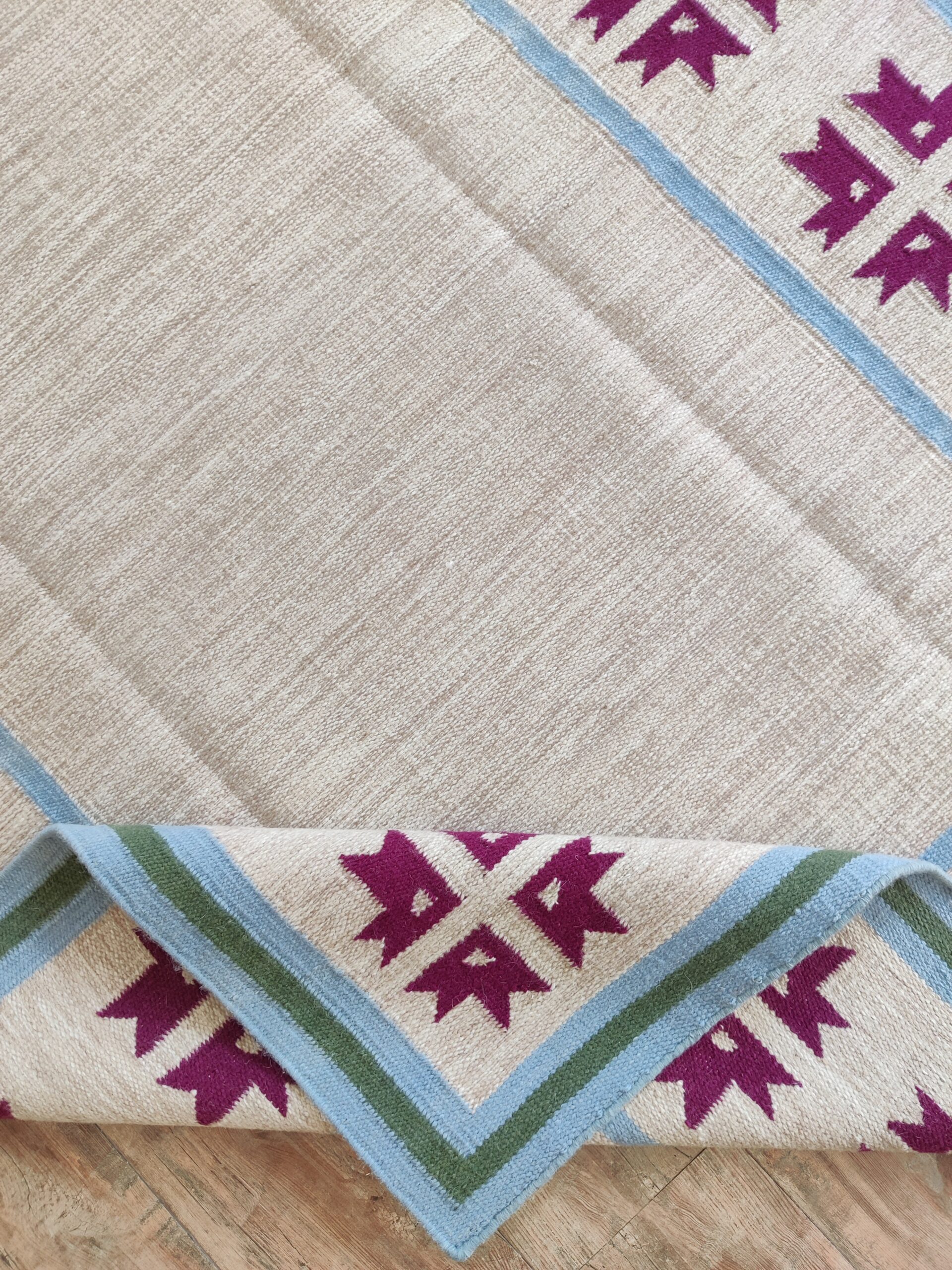 Handwoven Grey And Blue Wool Kiilm Rug, Home And Living Room Rug, Reversible Custom Size Rug