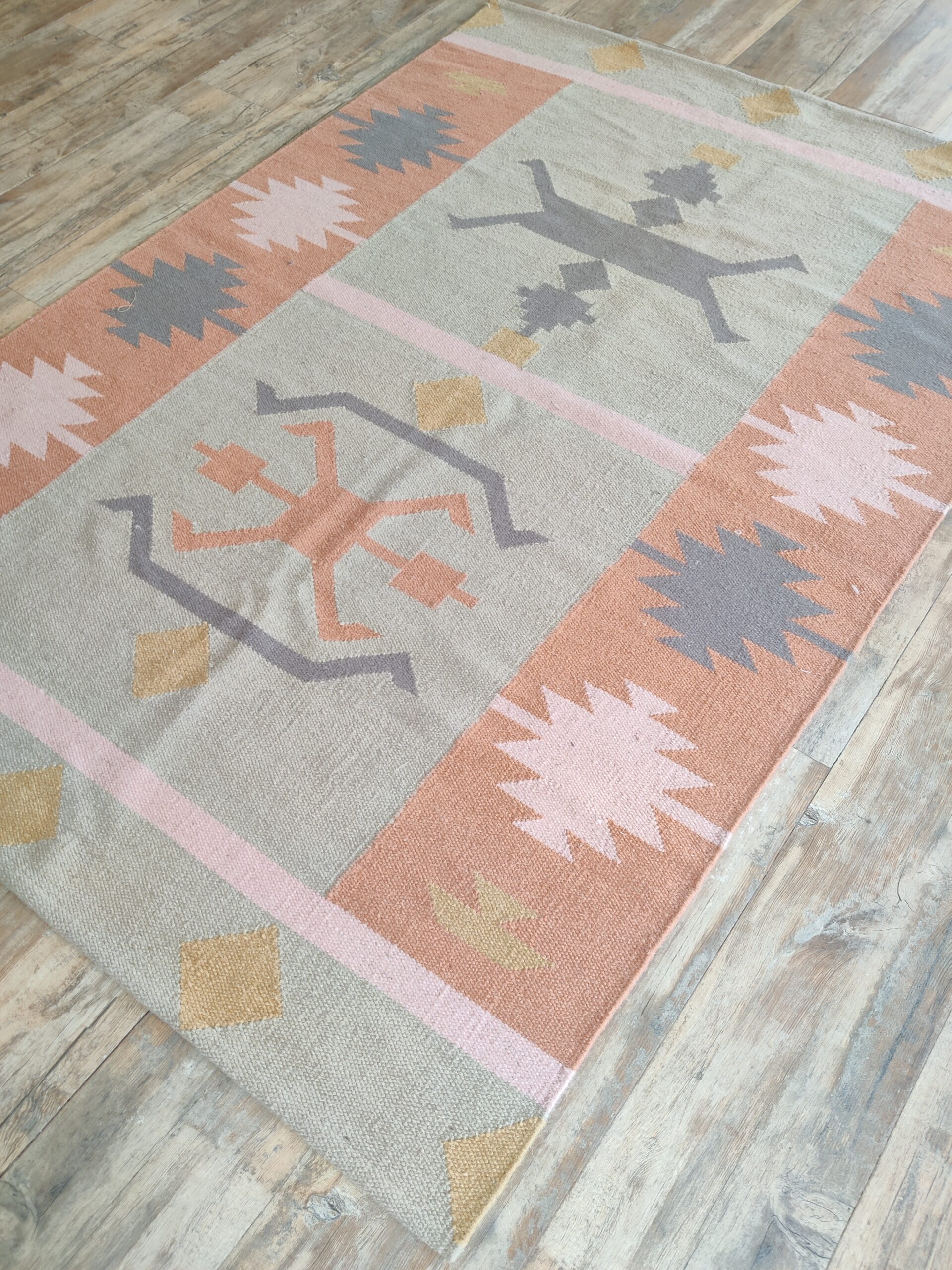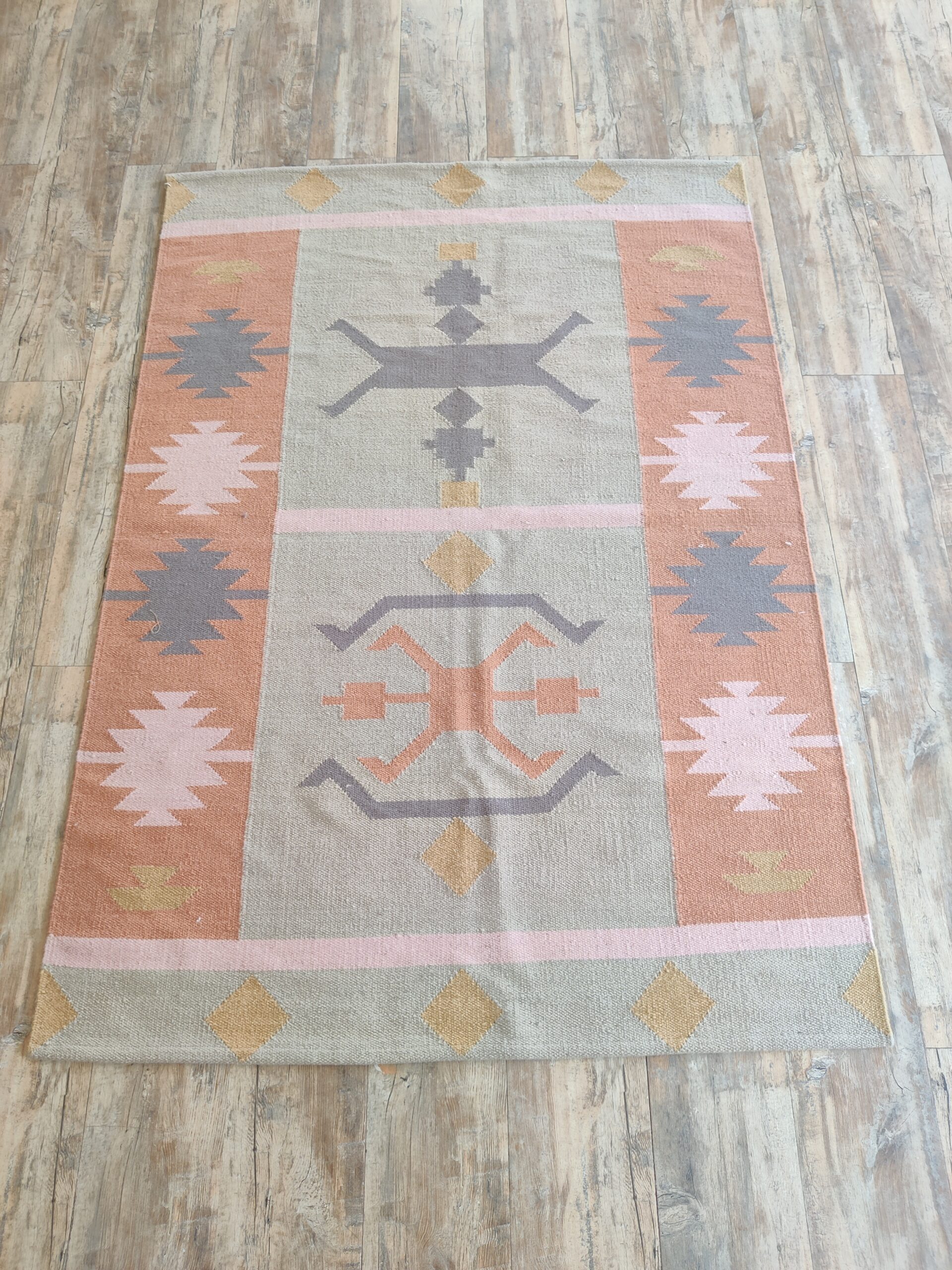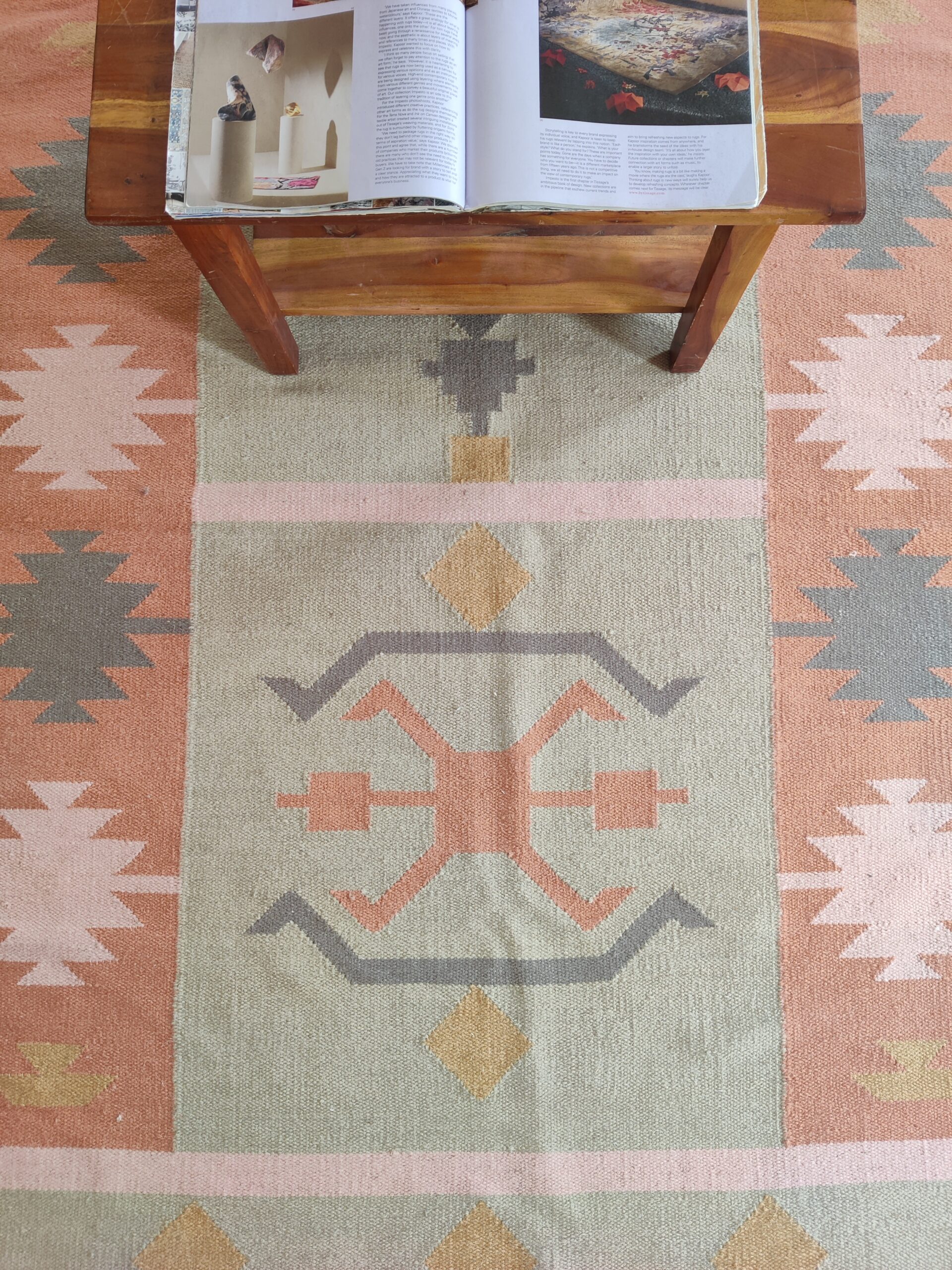 Handwoven Home And Living Room, Bedroom Cotton Wool Kilim Rug