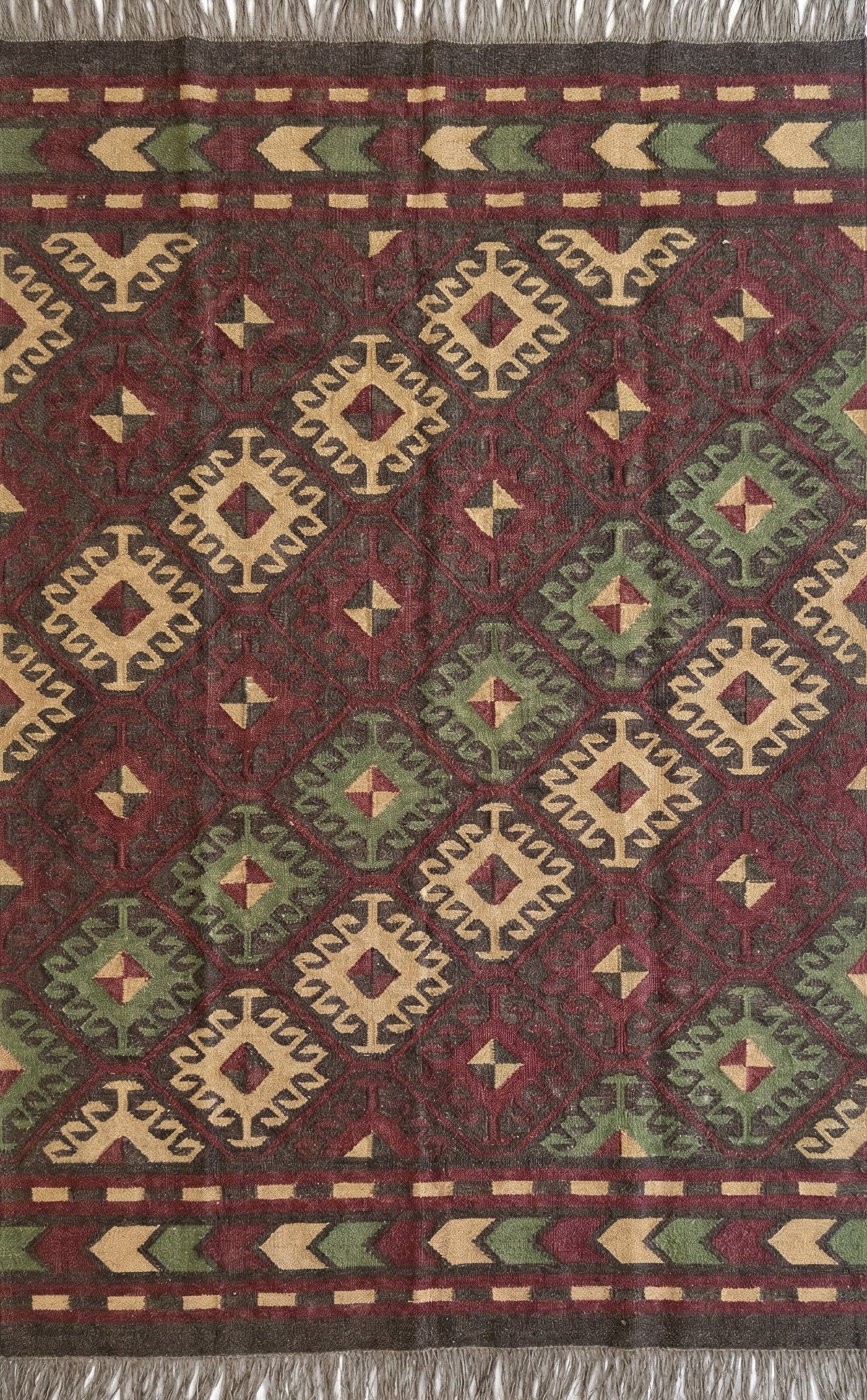Handwoven Home Decor Rug, Geometric Wool Jute Rug, Home And Living Room Jute Kilim Rug