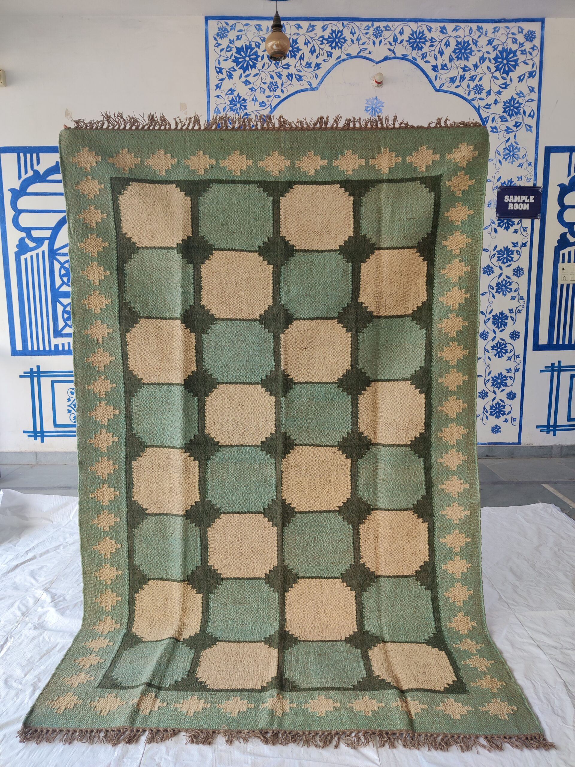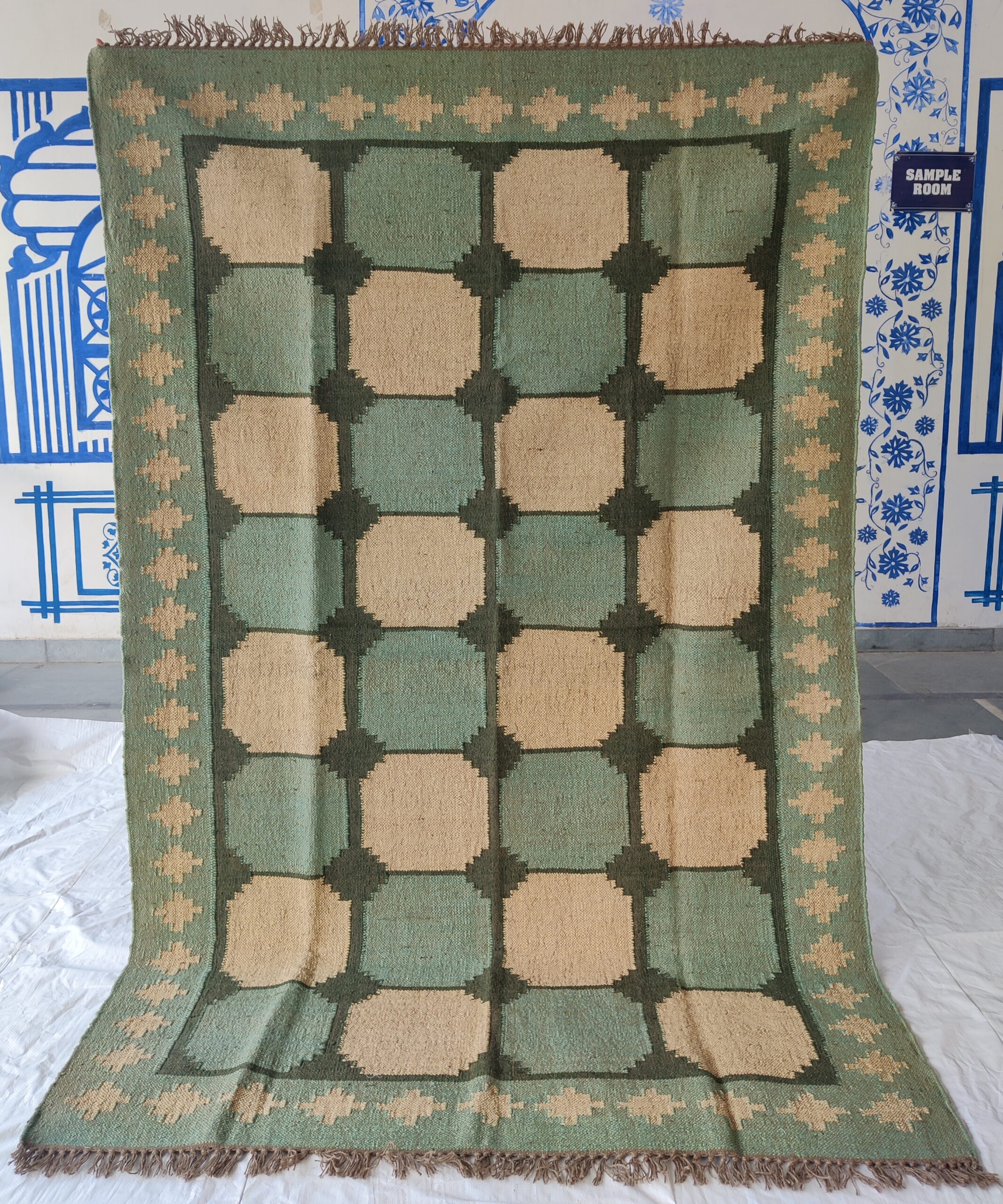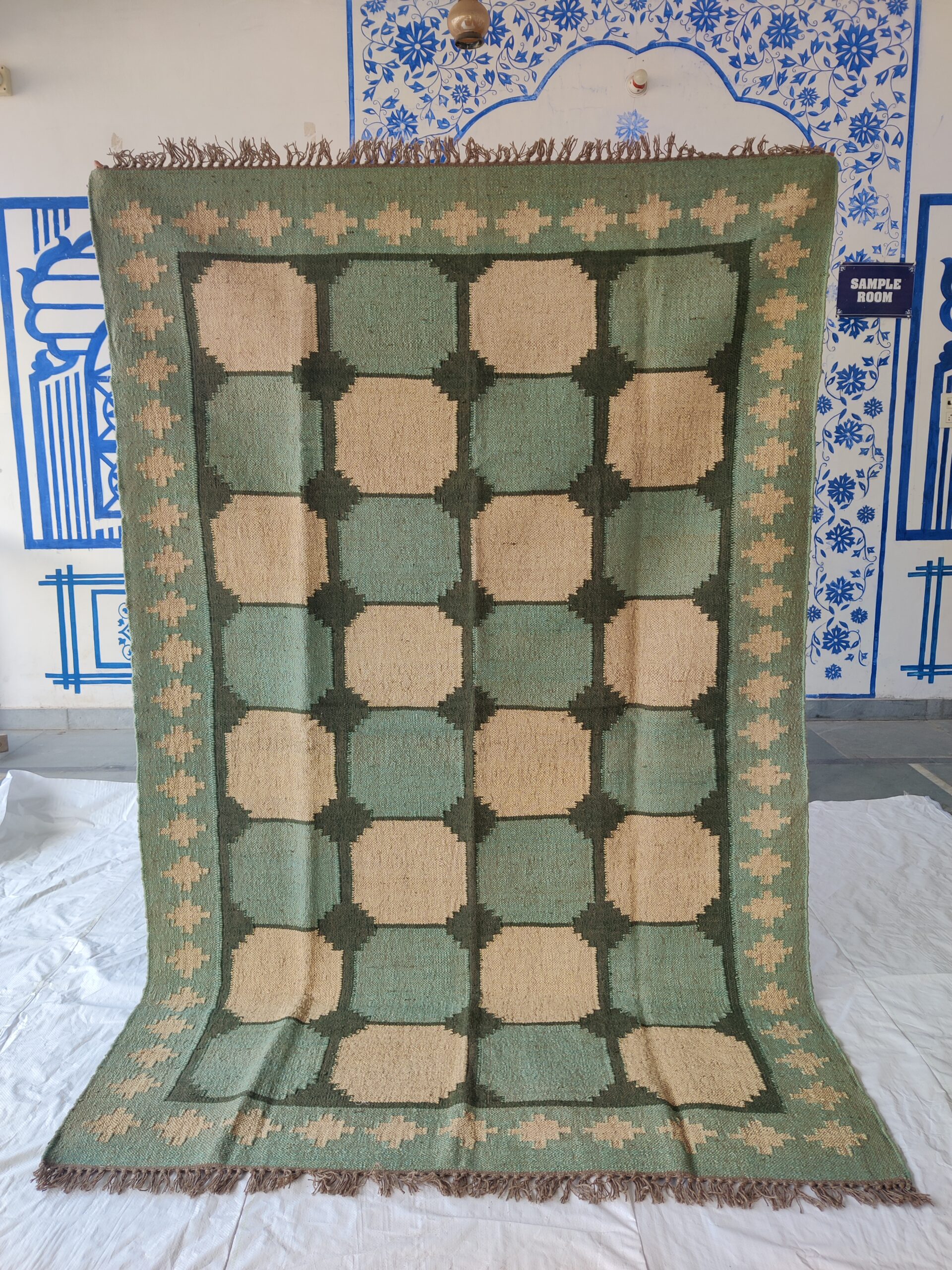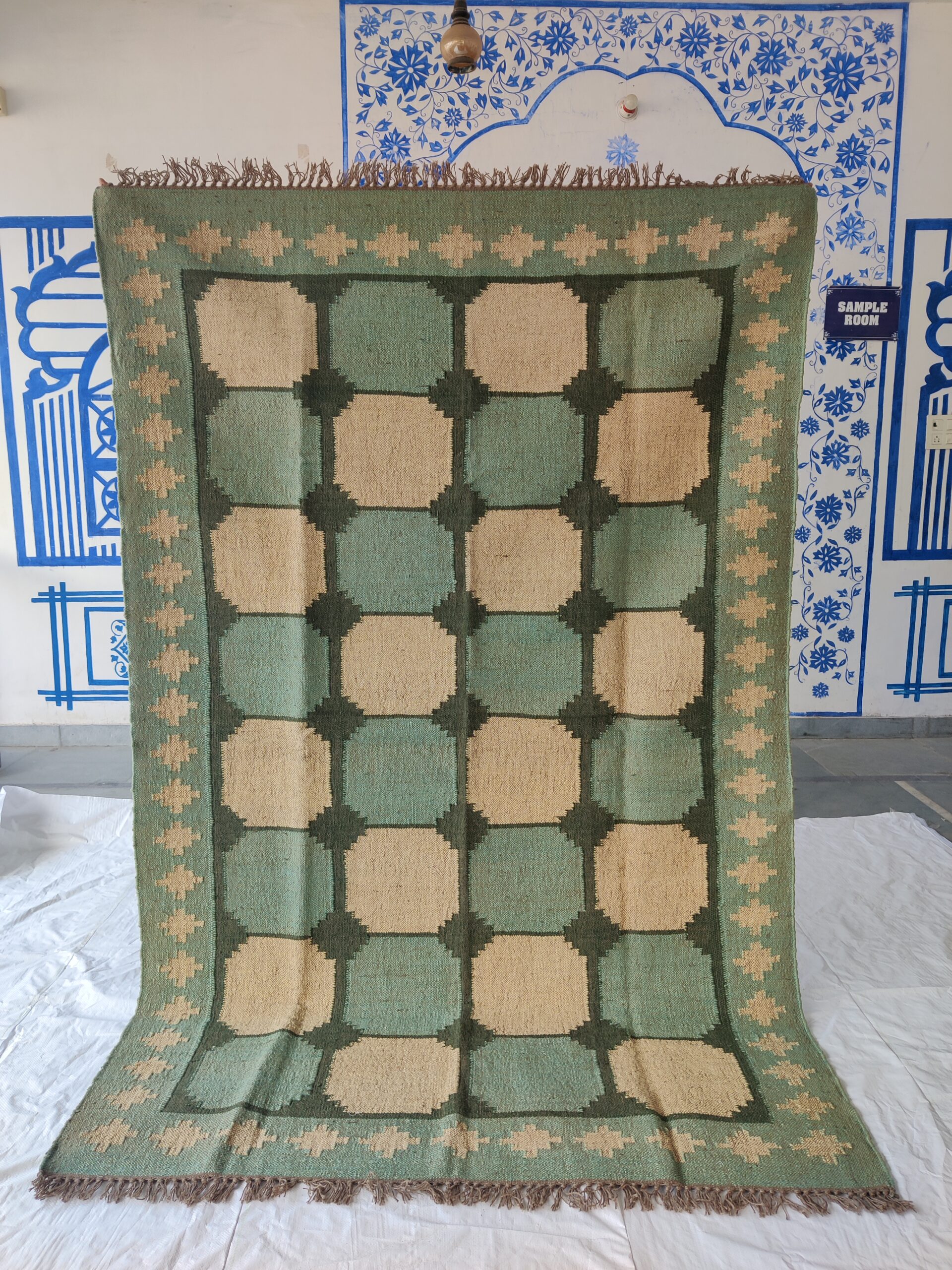 Handwoven Jute Kilims Check Rug, Modern Kilims Designer Rug, Home And Living Room Rug