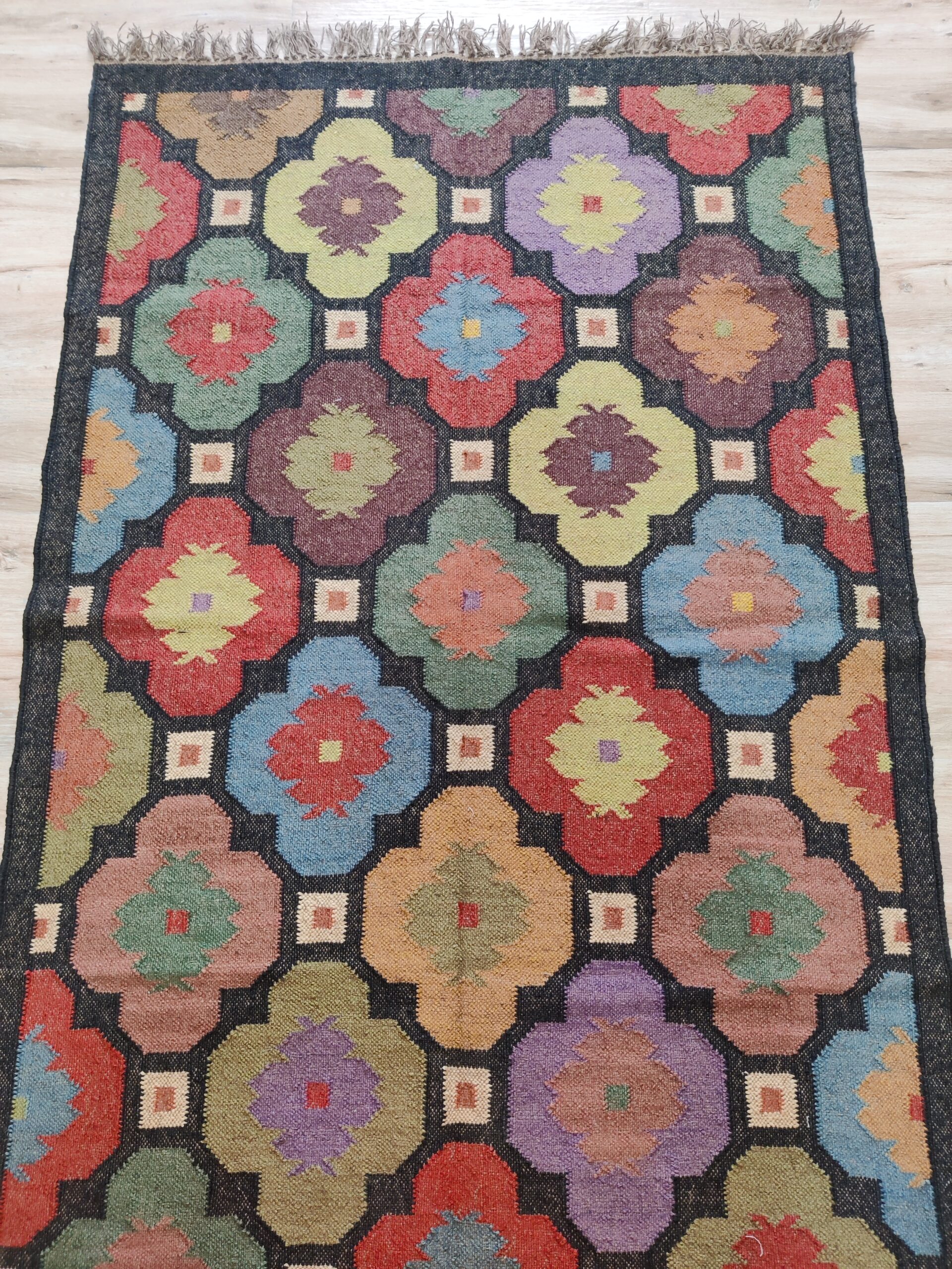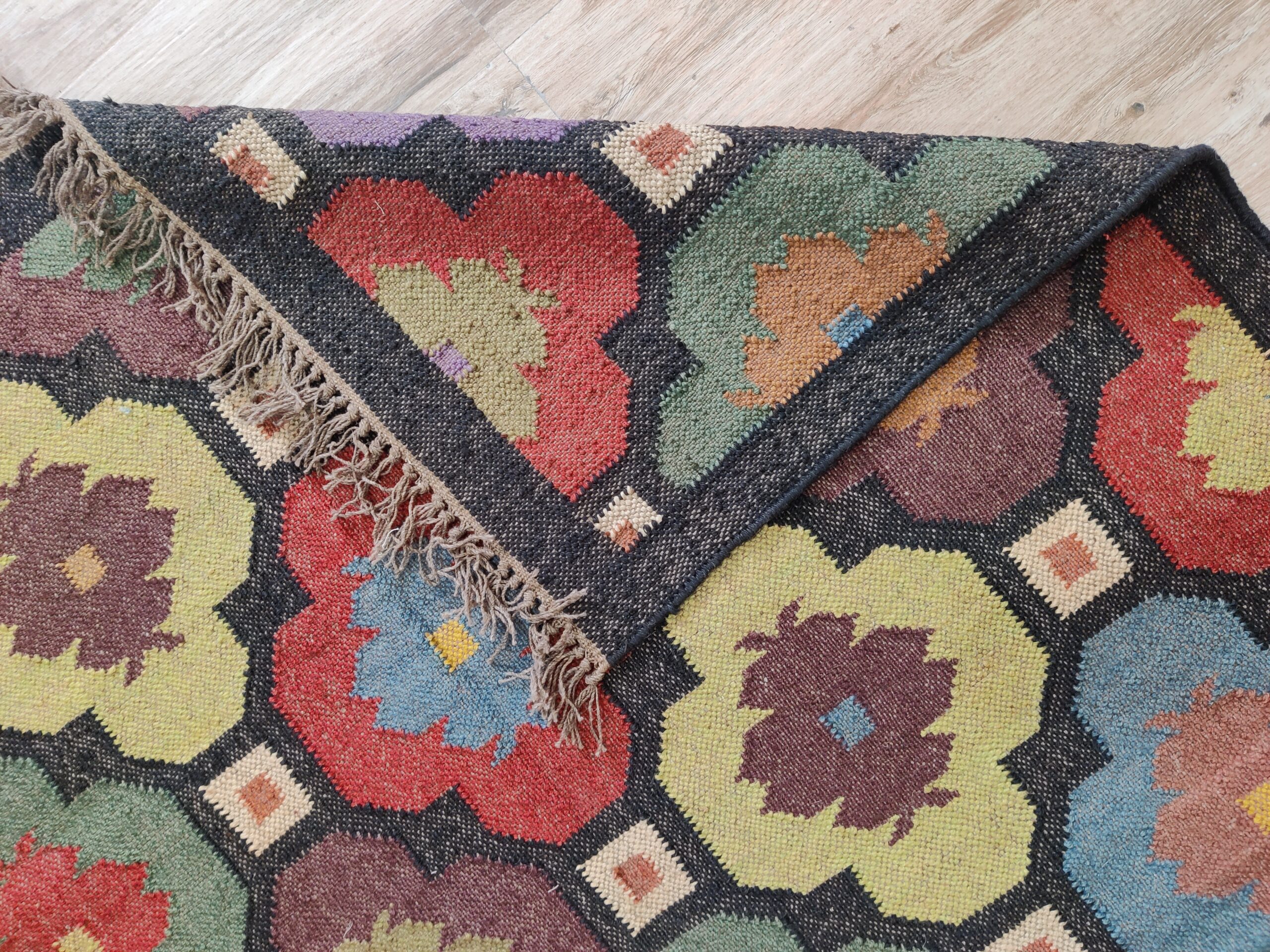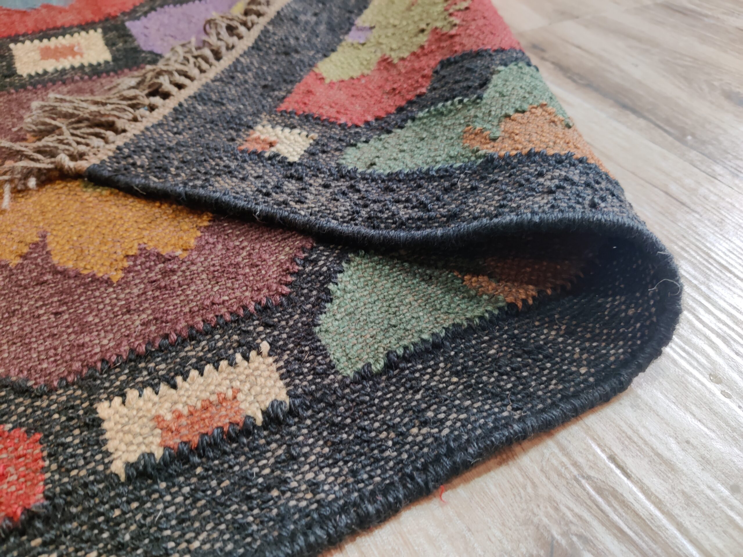 Crafted by experienced artisans, this natural handwoven jute rug is made with wool and jute. This rug is woven by hand on a traditional wooden loom. Made from hand-dyed, pure, sustainable jute and natural wool. This rug is reversible, with the same design on both sides. Wool: 30% Jute: 70%