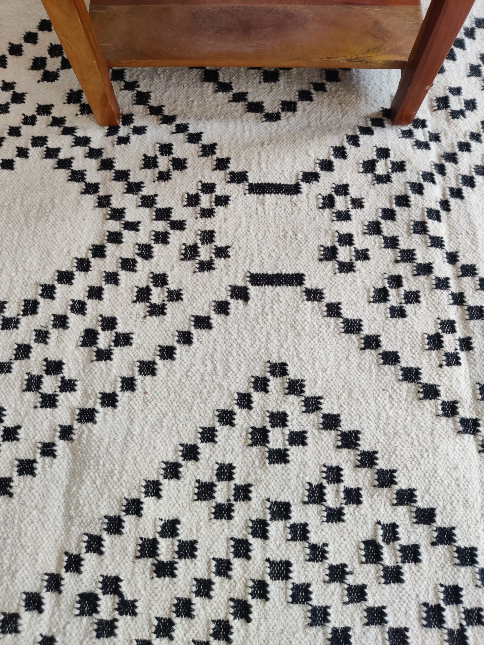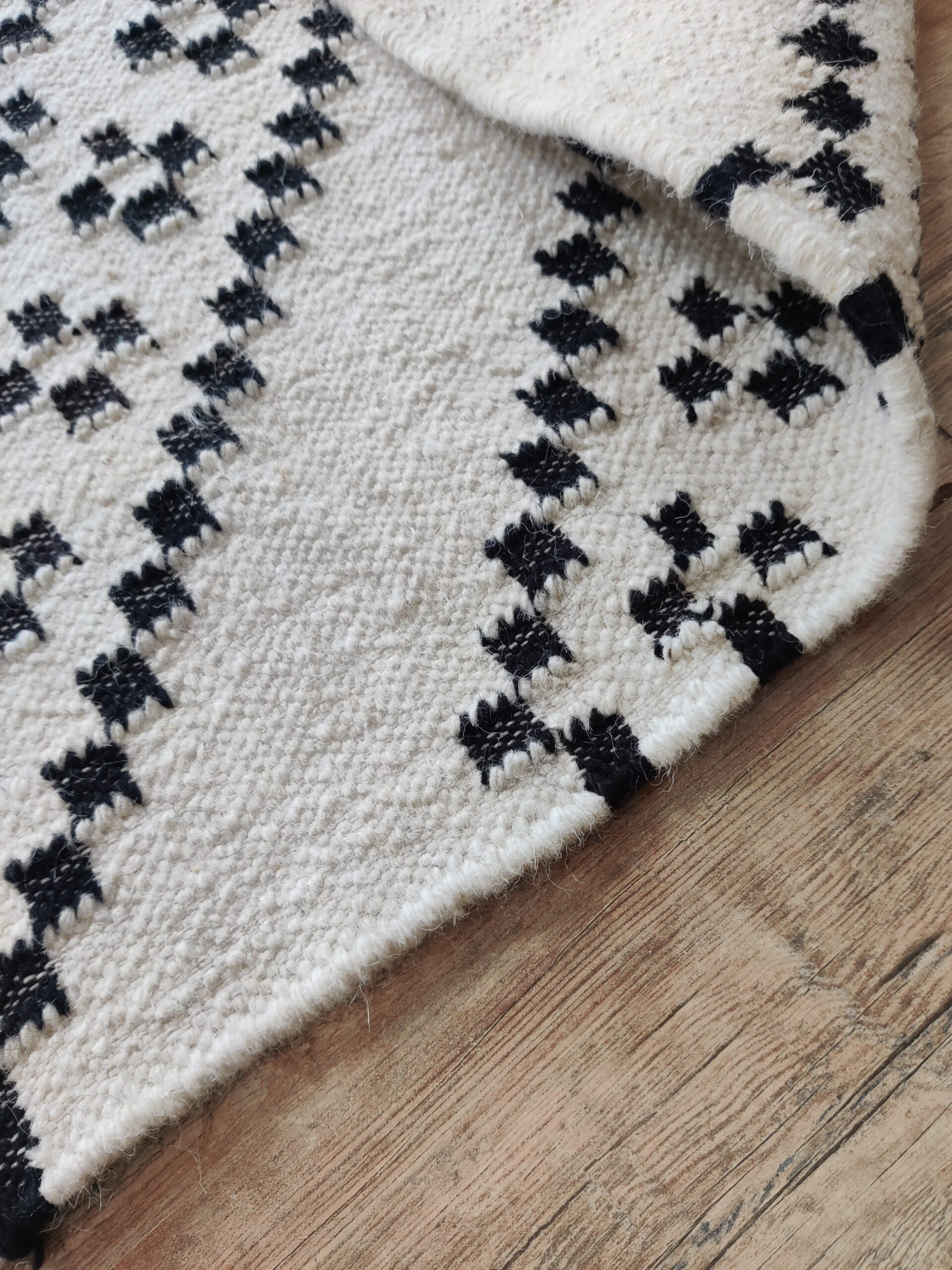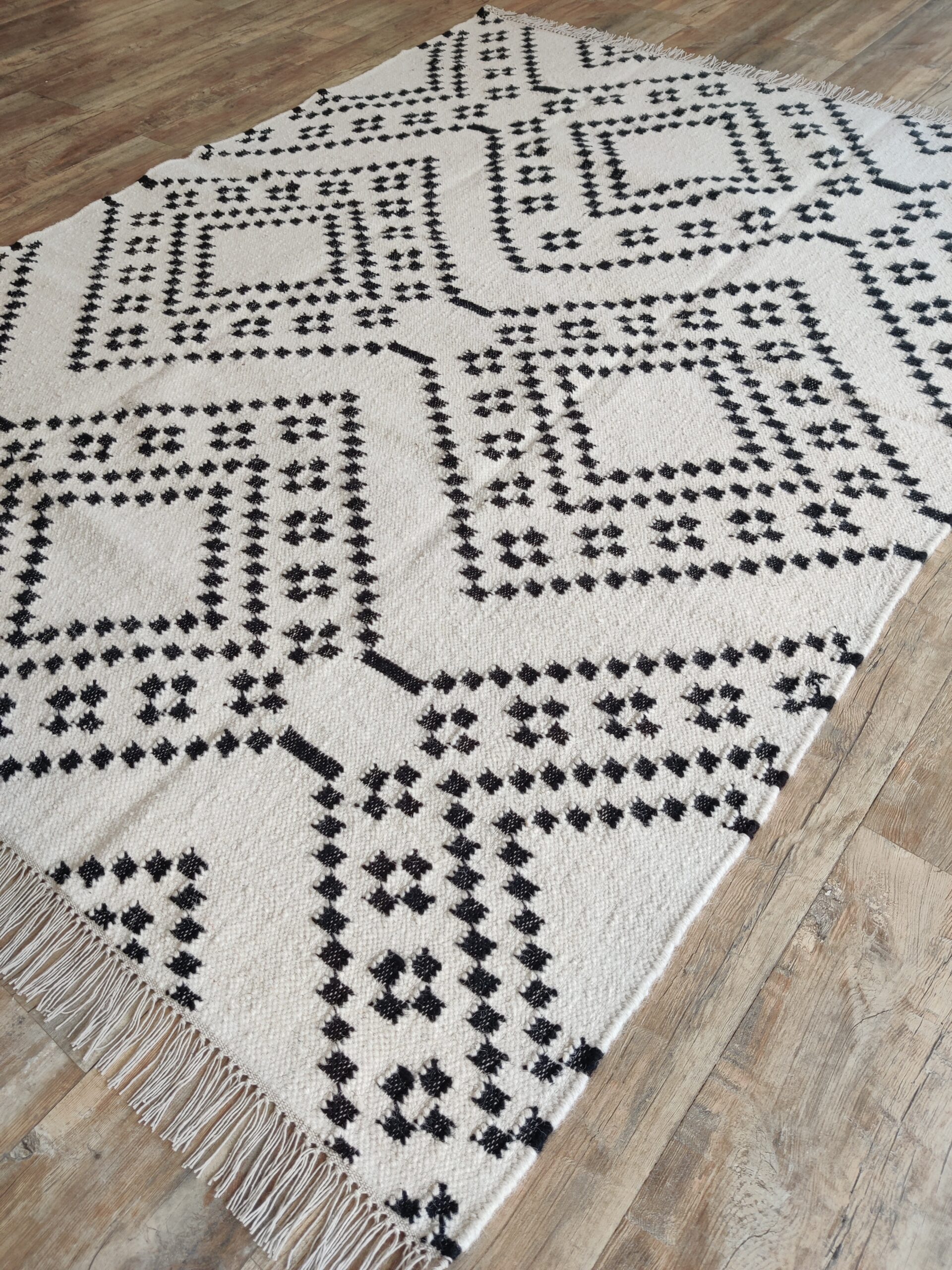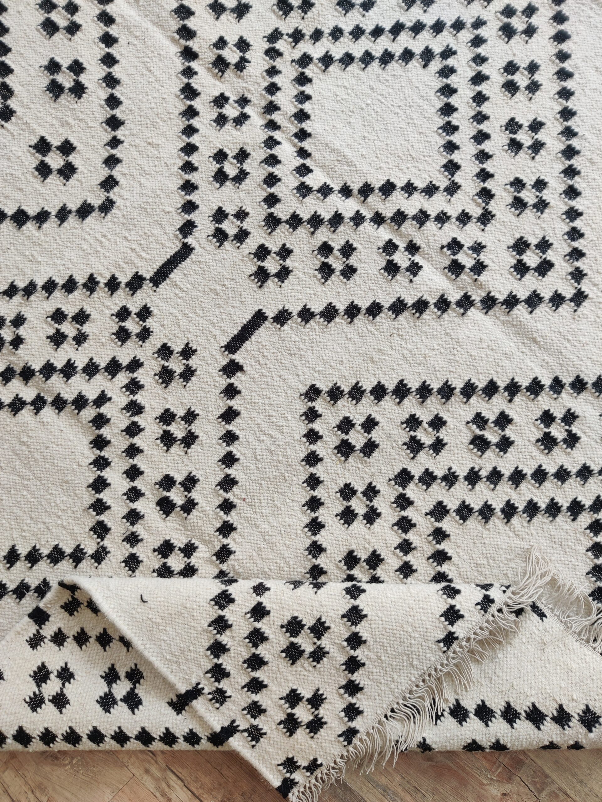 Handwoven Modern Checkered Wool Kilim Home Decor Rug, Black And White Wool Kilim Rug