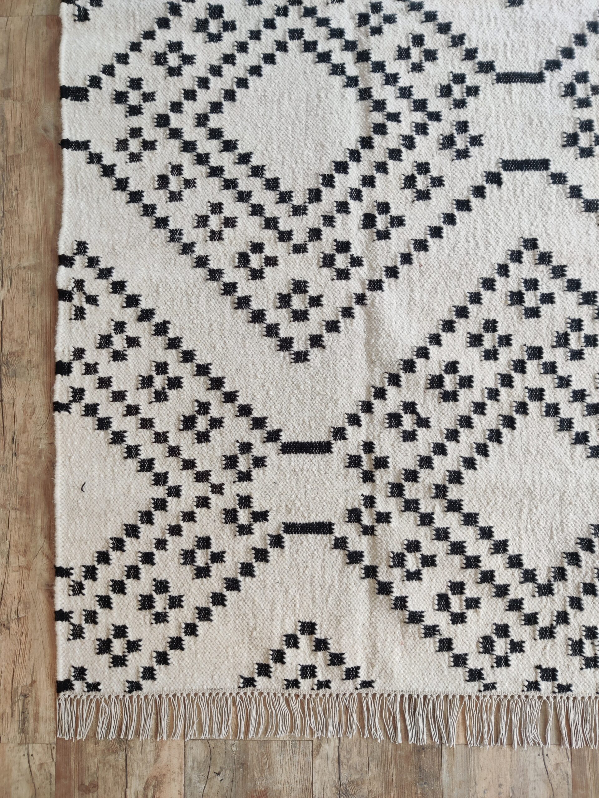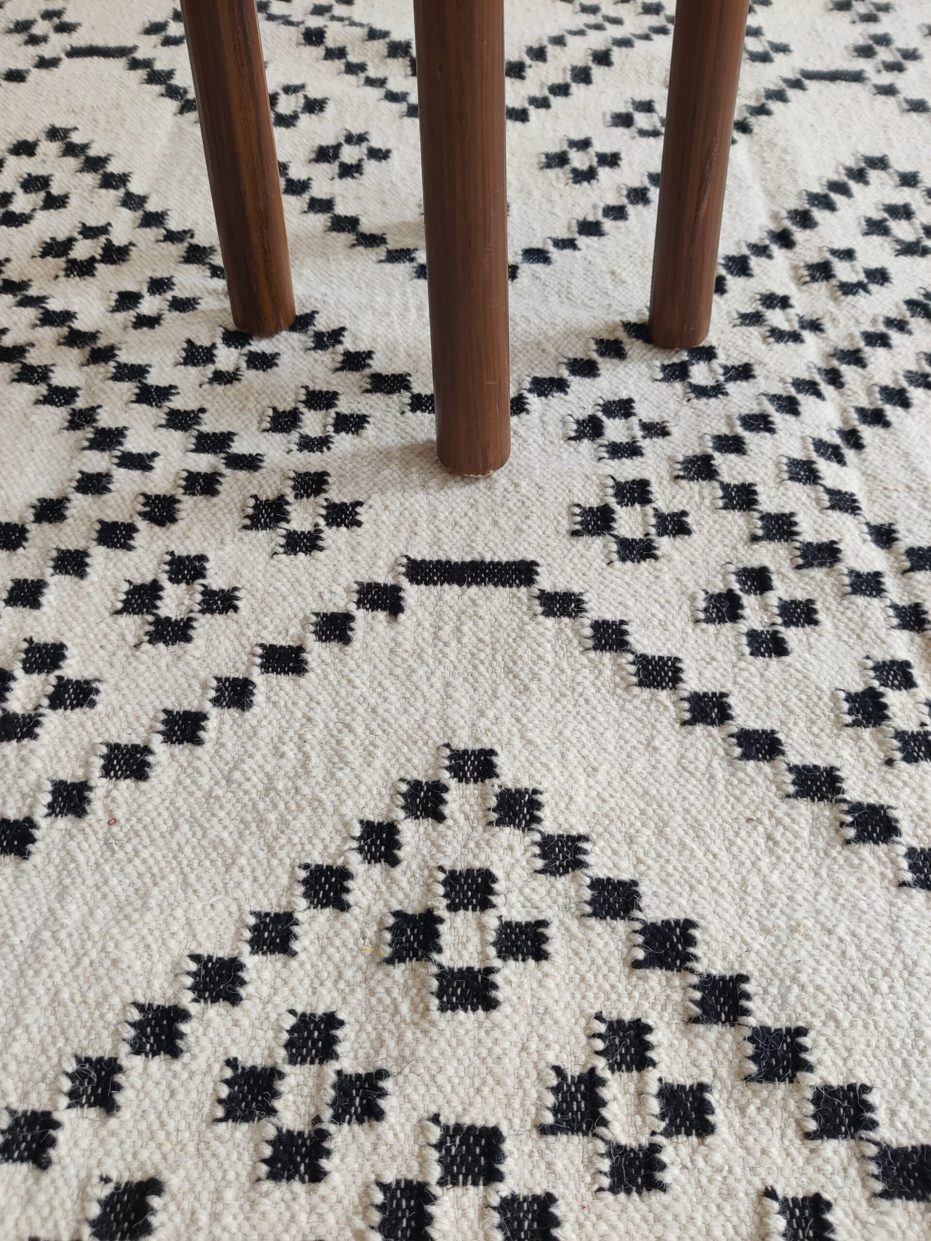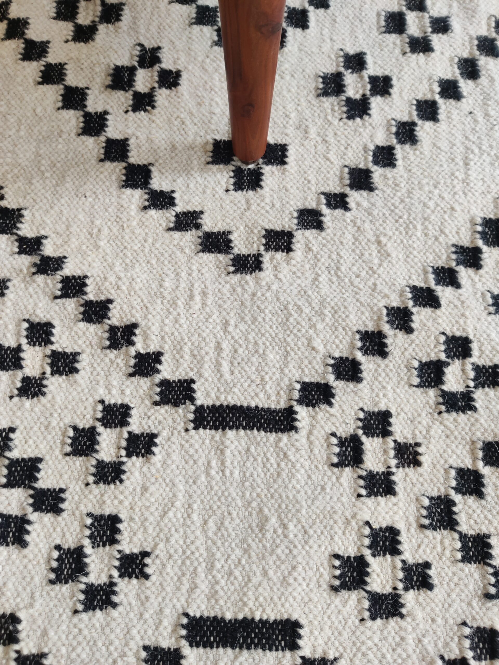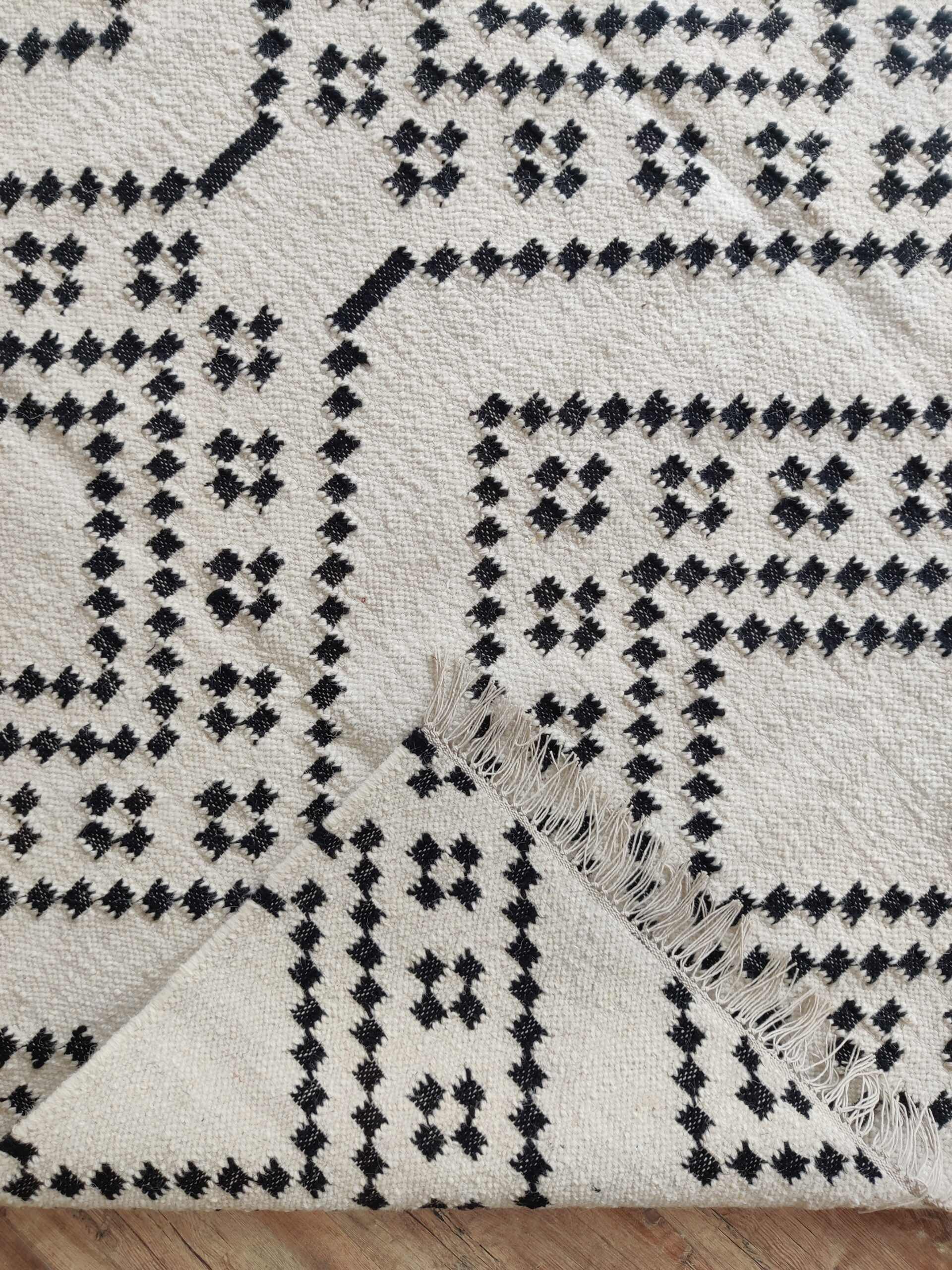 Handwoven Modern Checkered Wool Kilim Home Decor Rug, Black And White Wool Kilim Rug