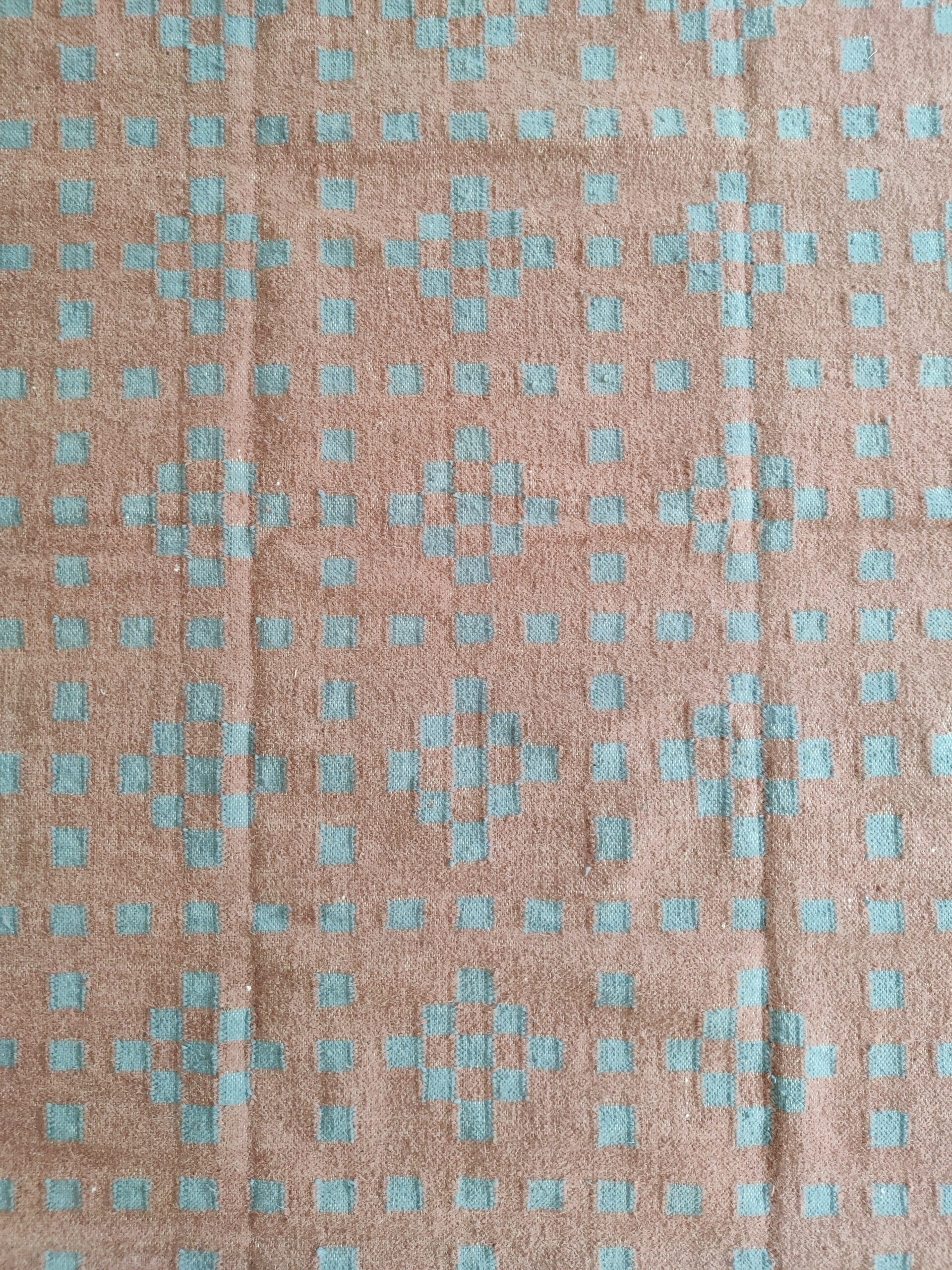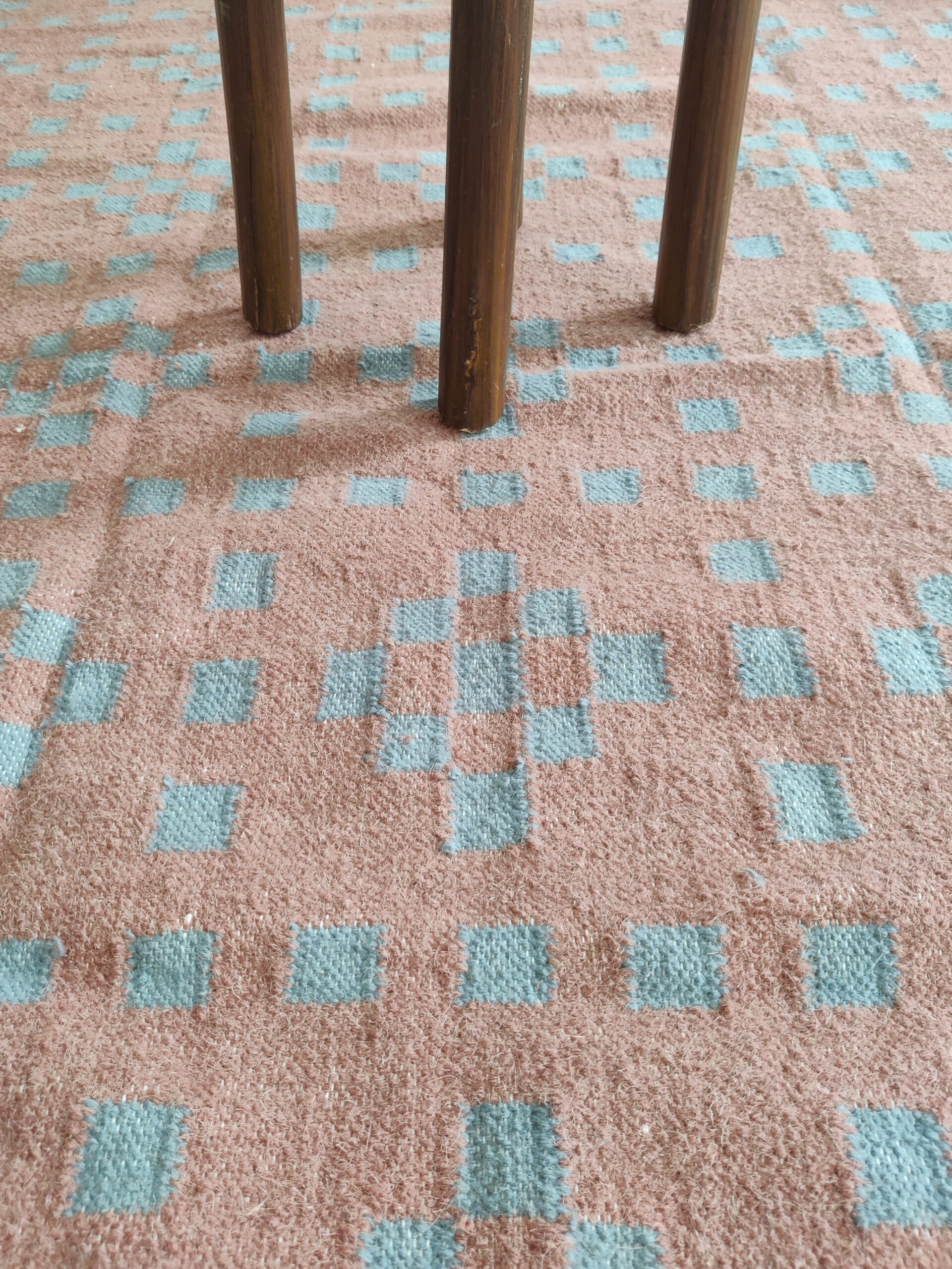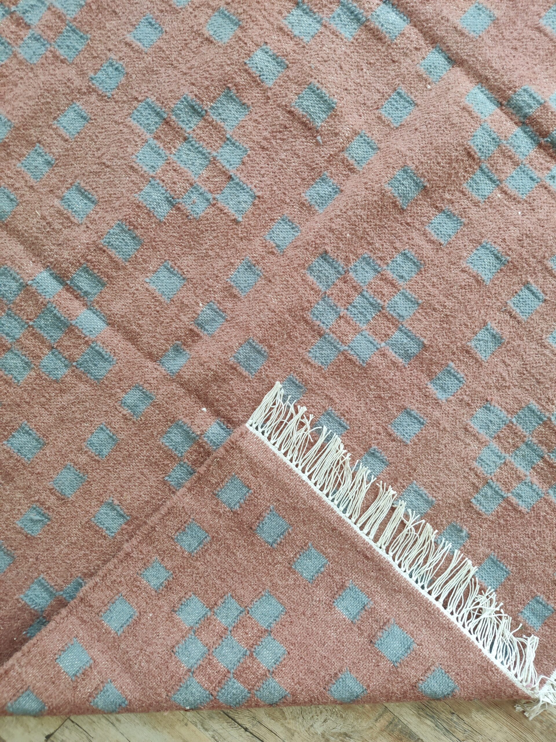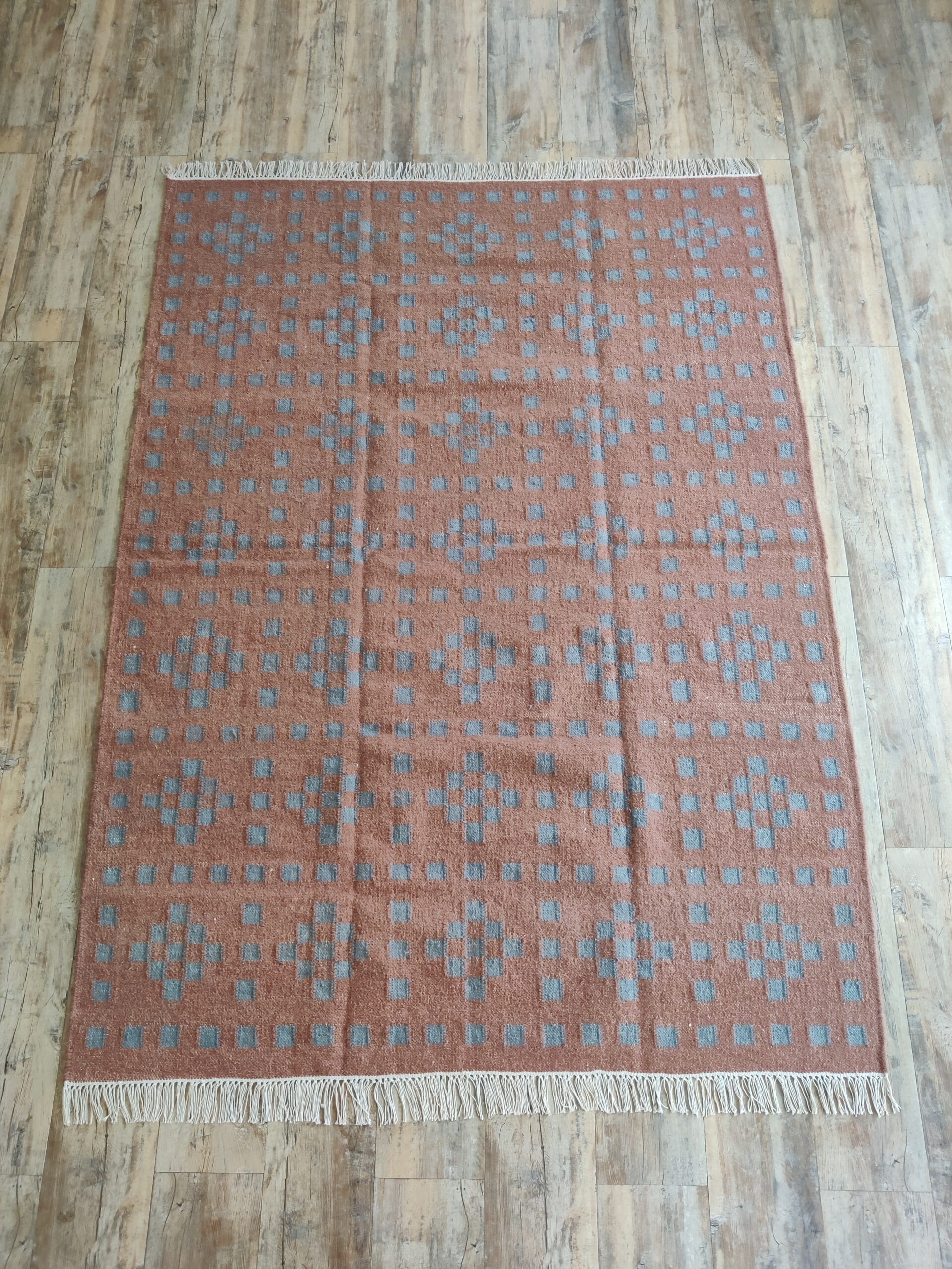 Handwoven Modern Checkered Wool Kilim Home Decor Rug, Brown And Blue Wool Kilim Rug