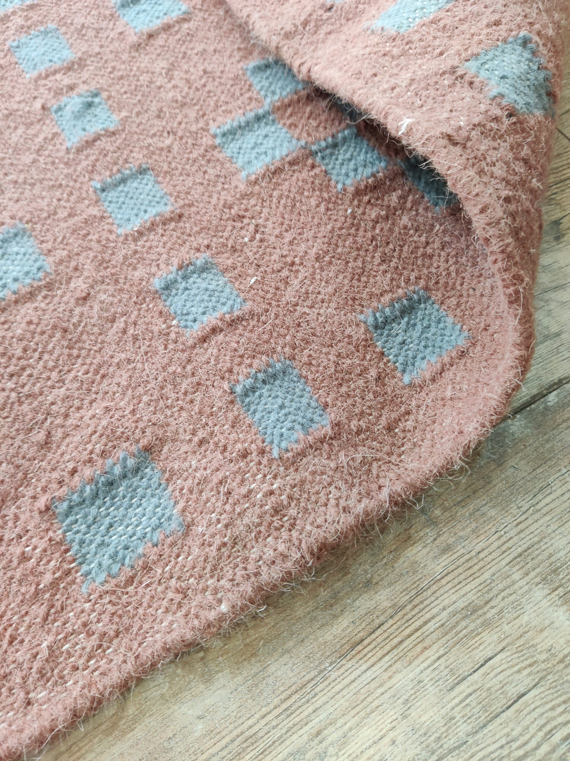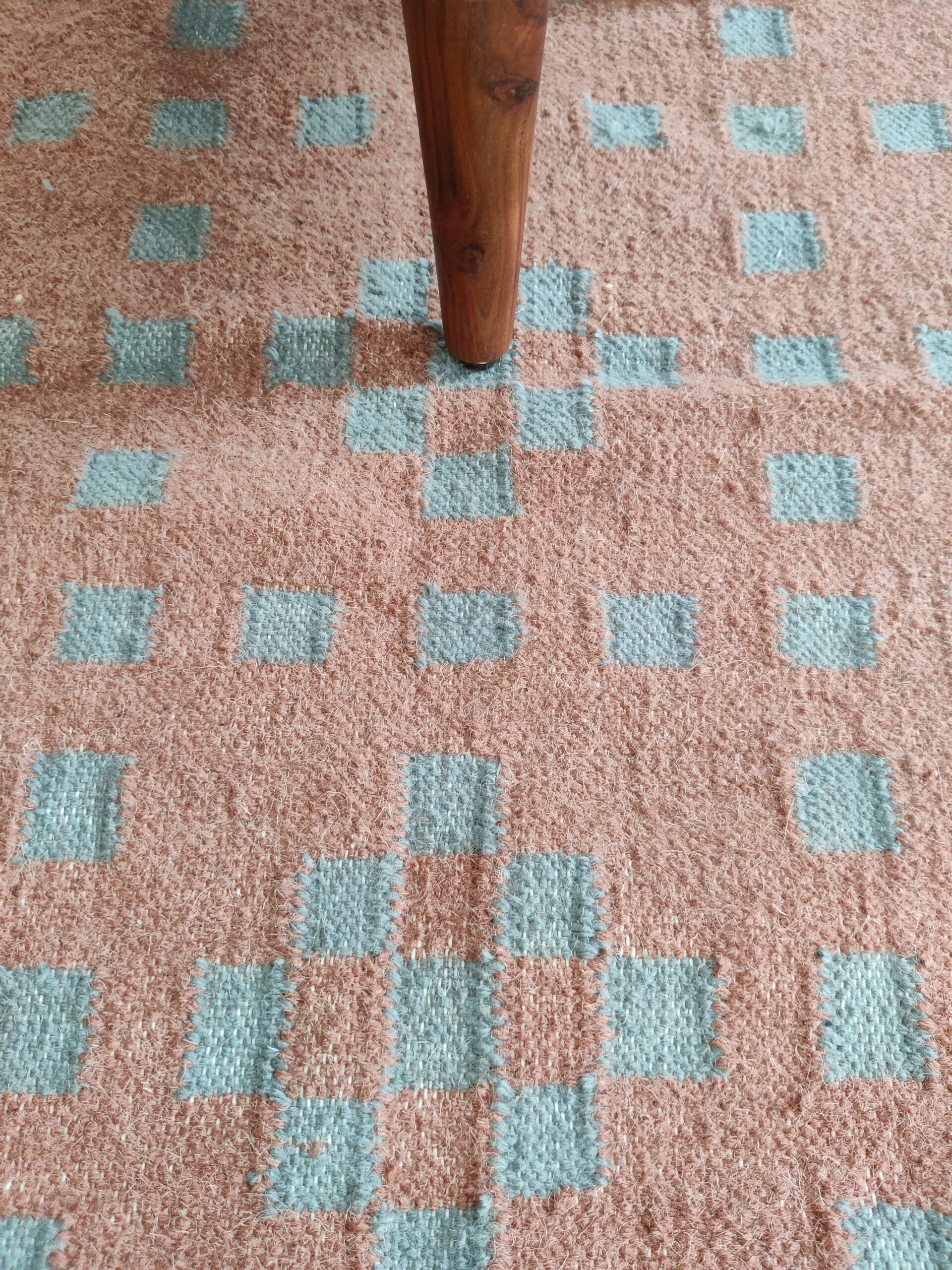 Transform your living space with our exquisite handmade wool cotton rug. This stunning piece is not just a functional addition to your home, but a statement of elegance and craftsmanship.