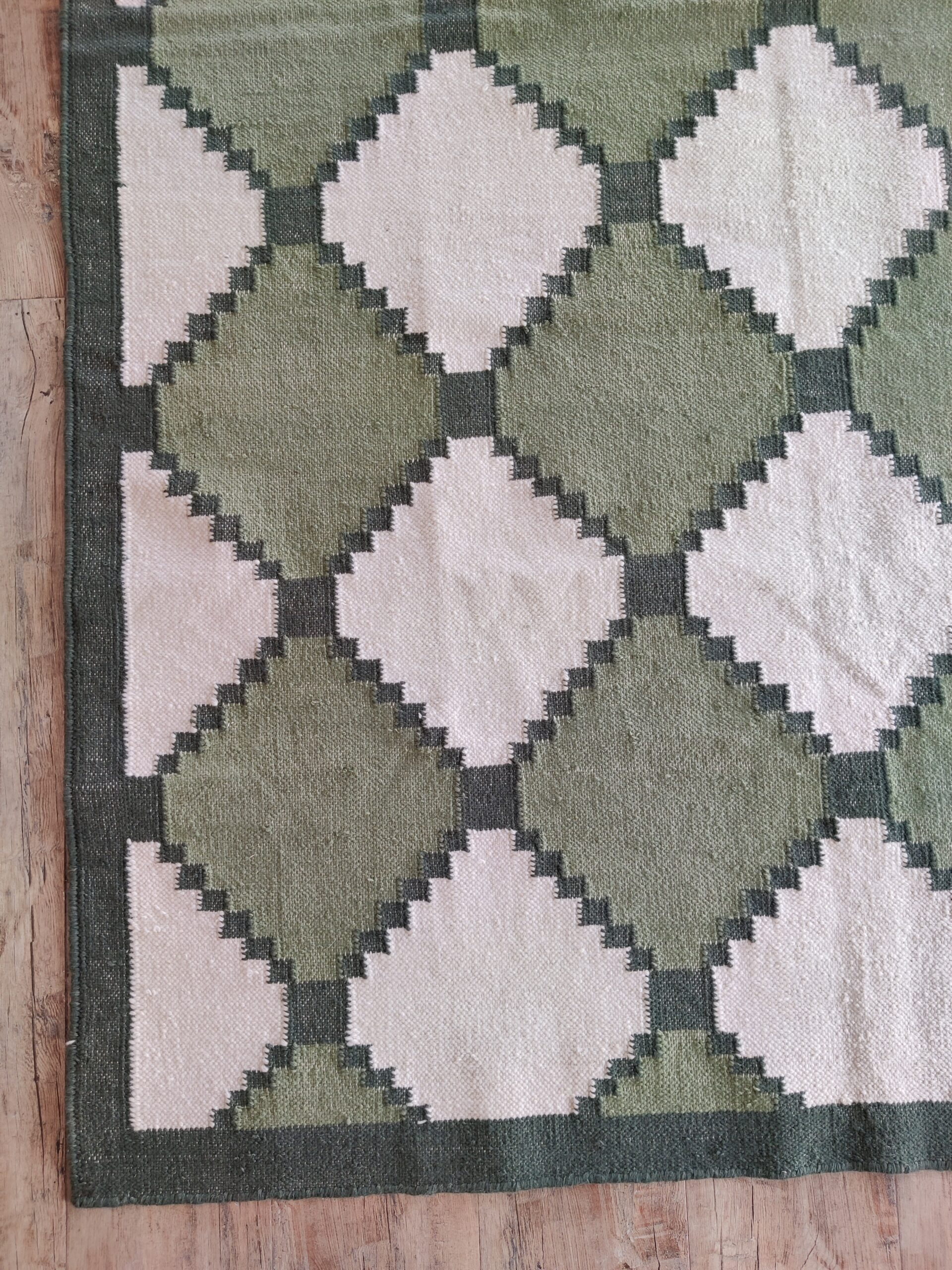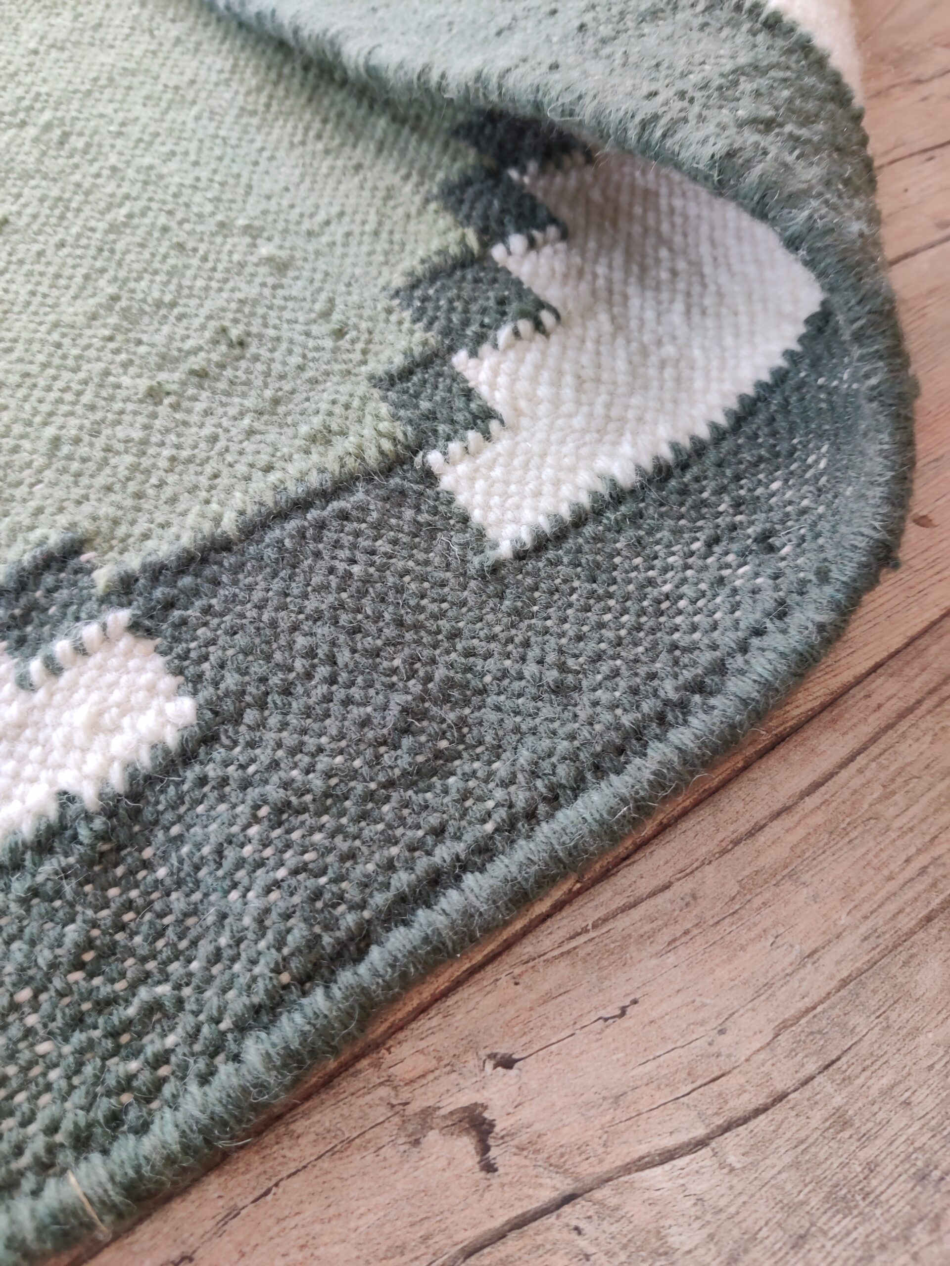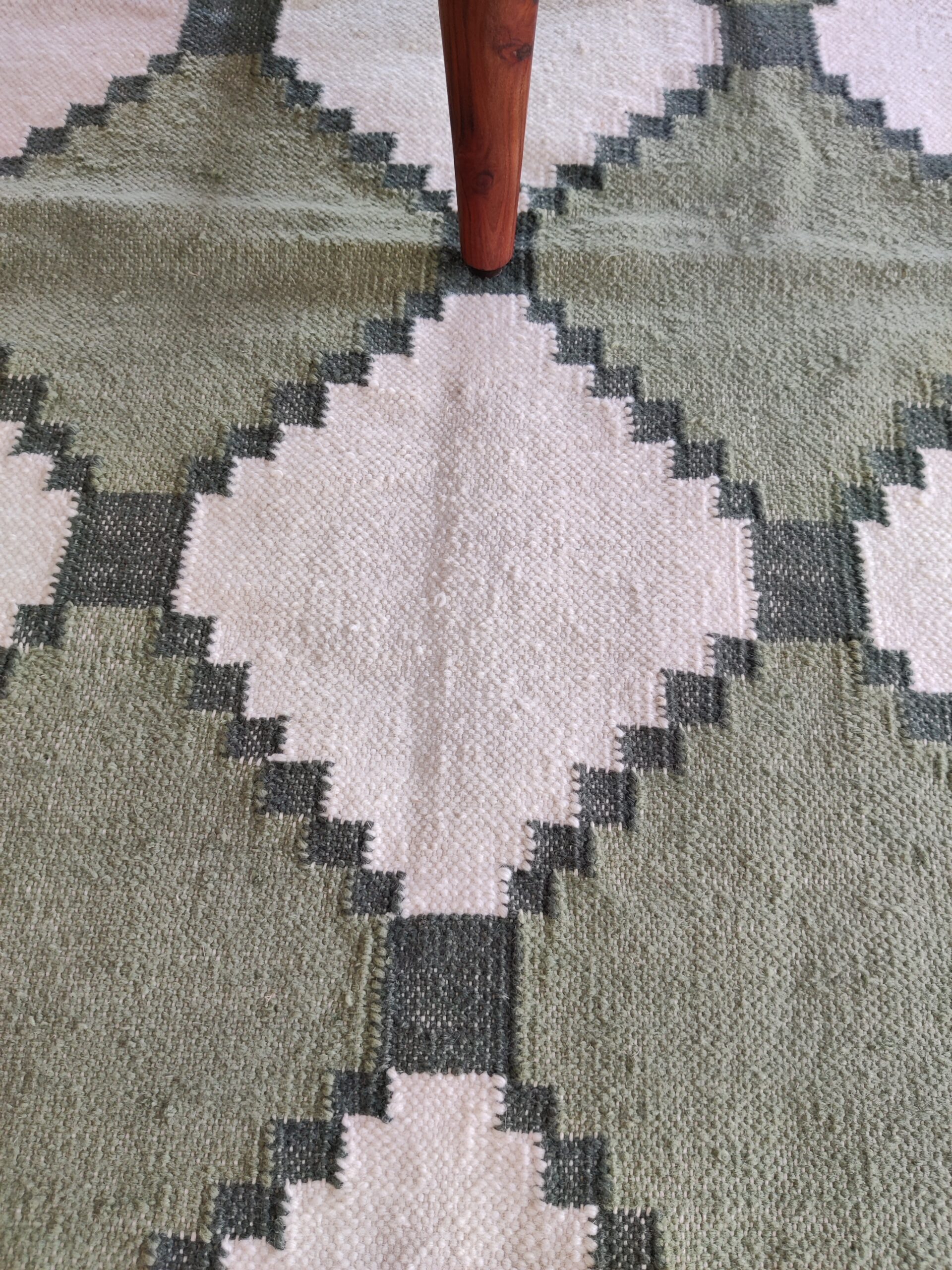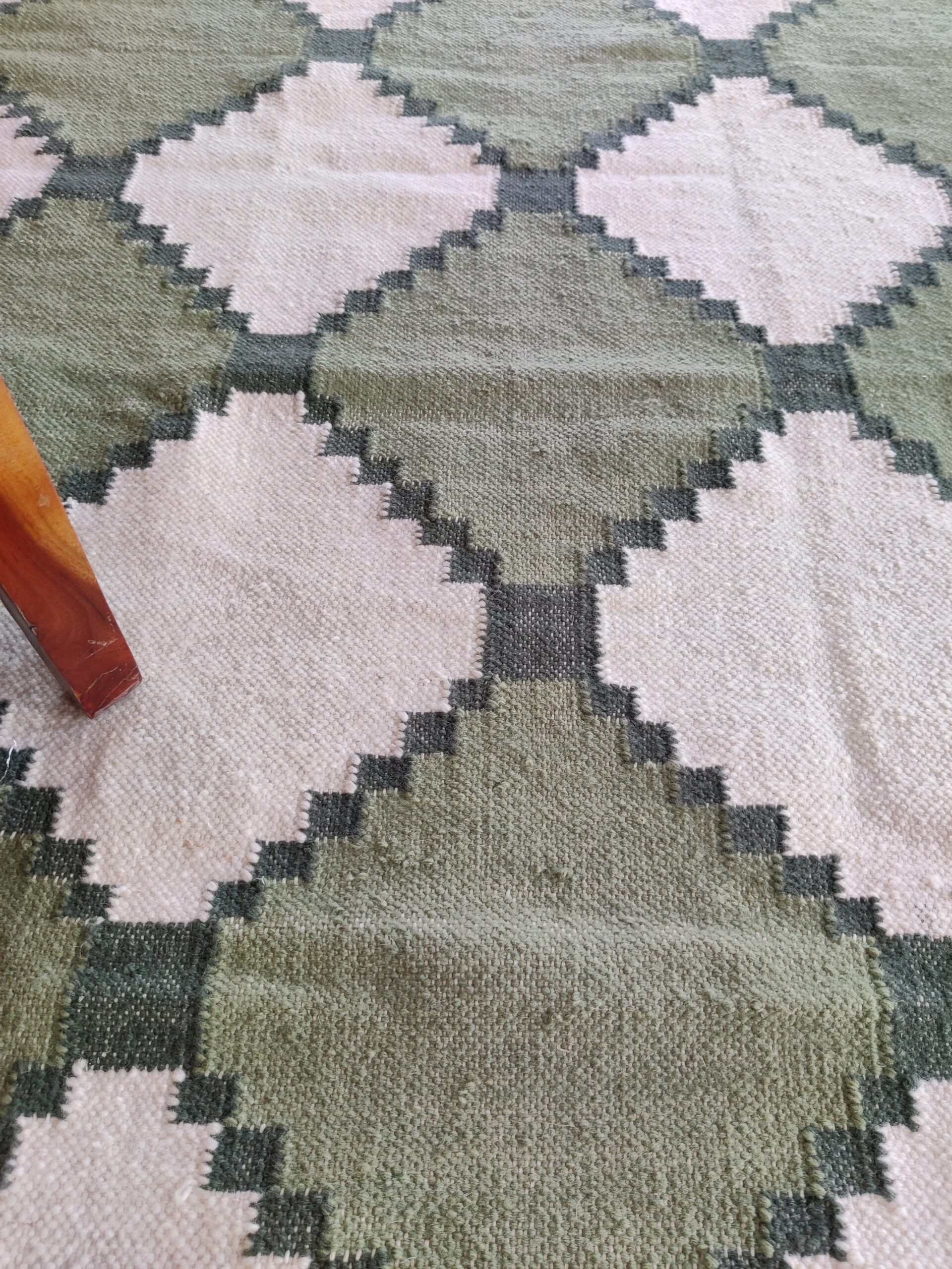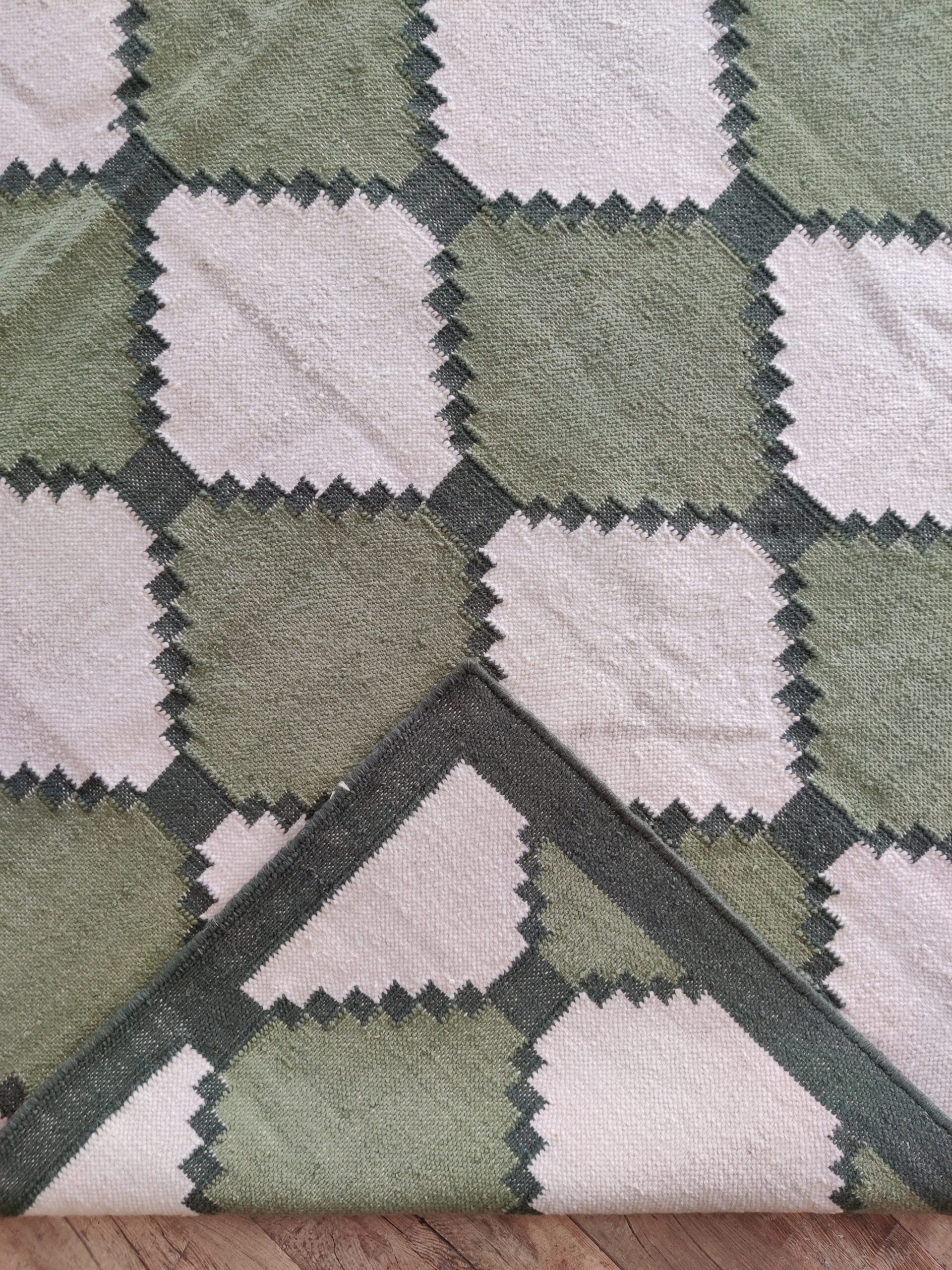 Transform your living space with our exquisite handmade wool cotton rug. This stunning piece is not just a functional addition to your home, but a statement of elegance and craftsmanship.