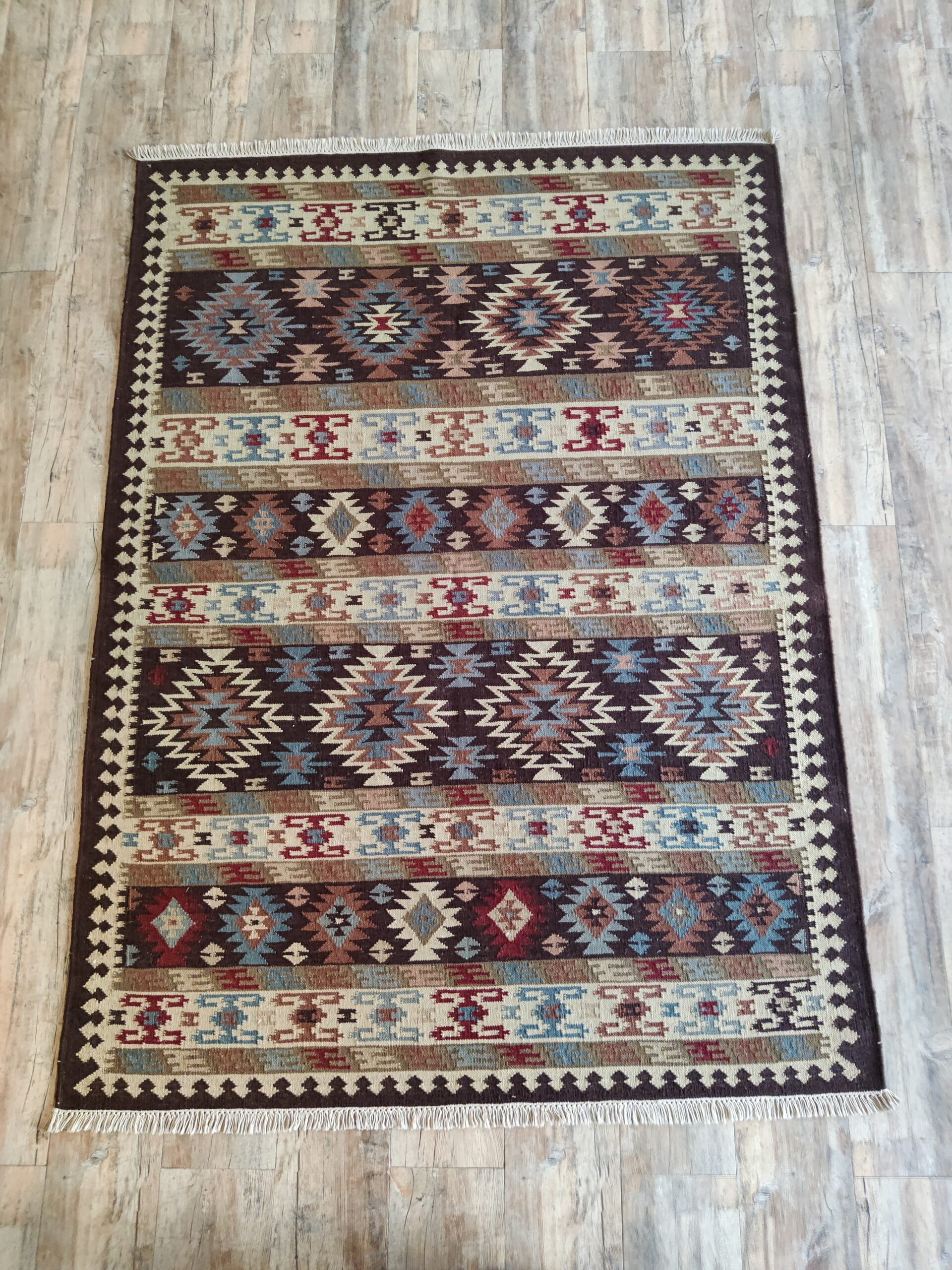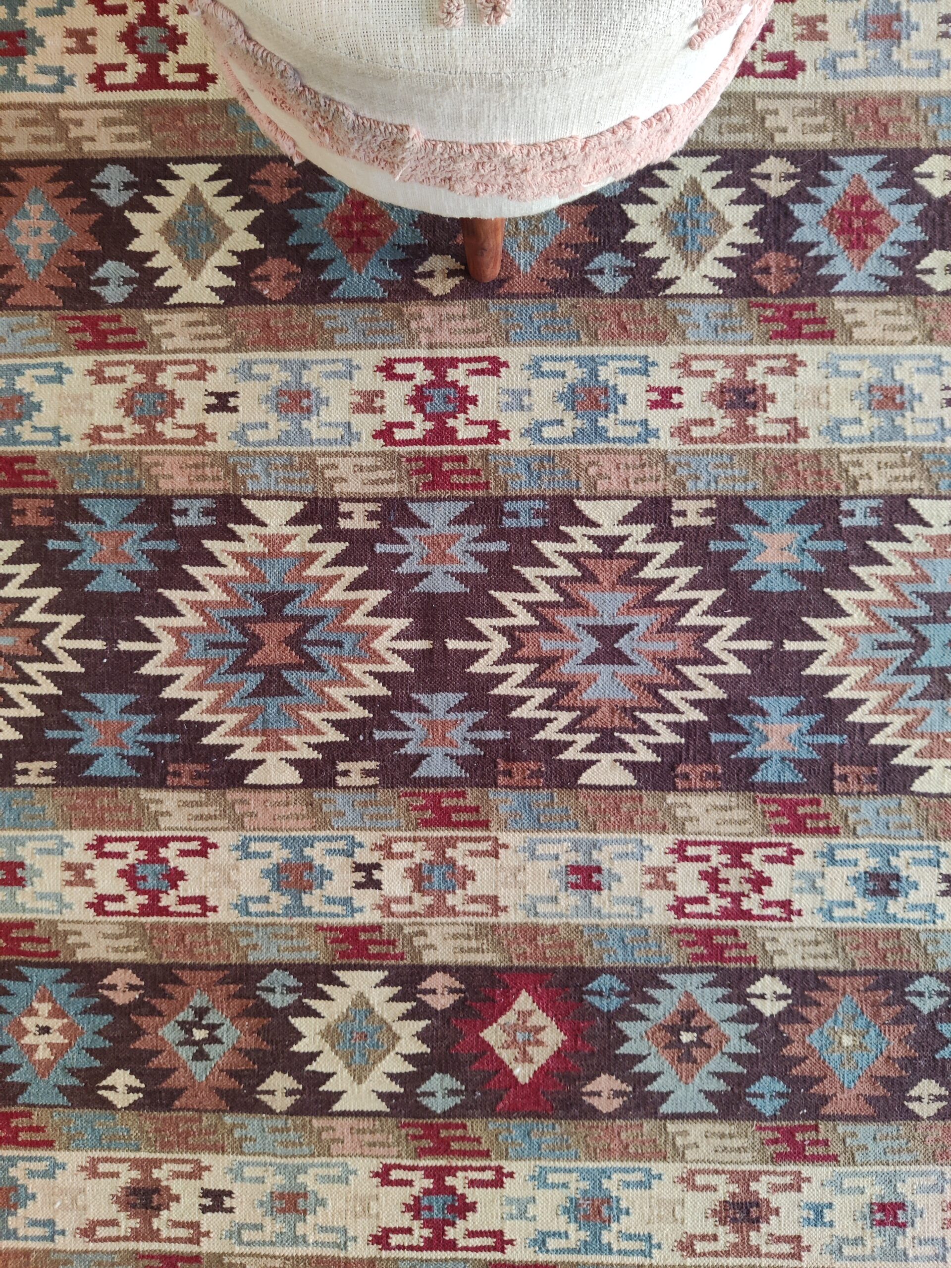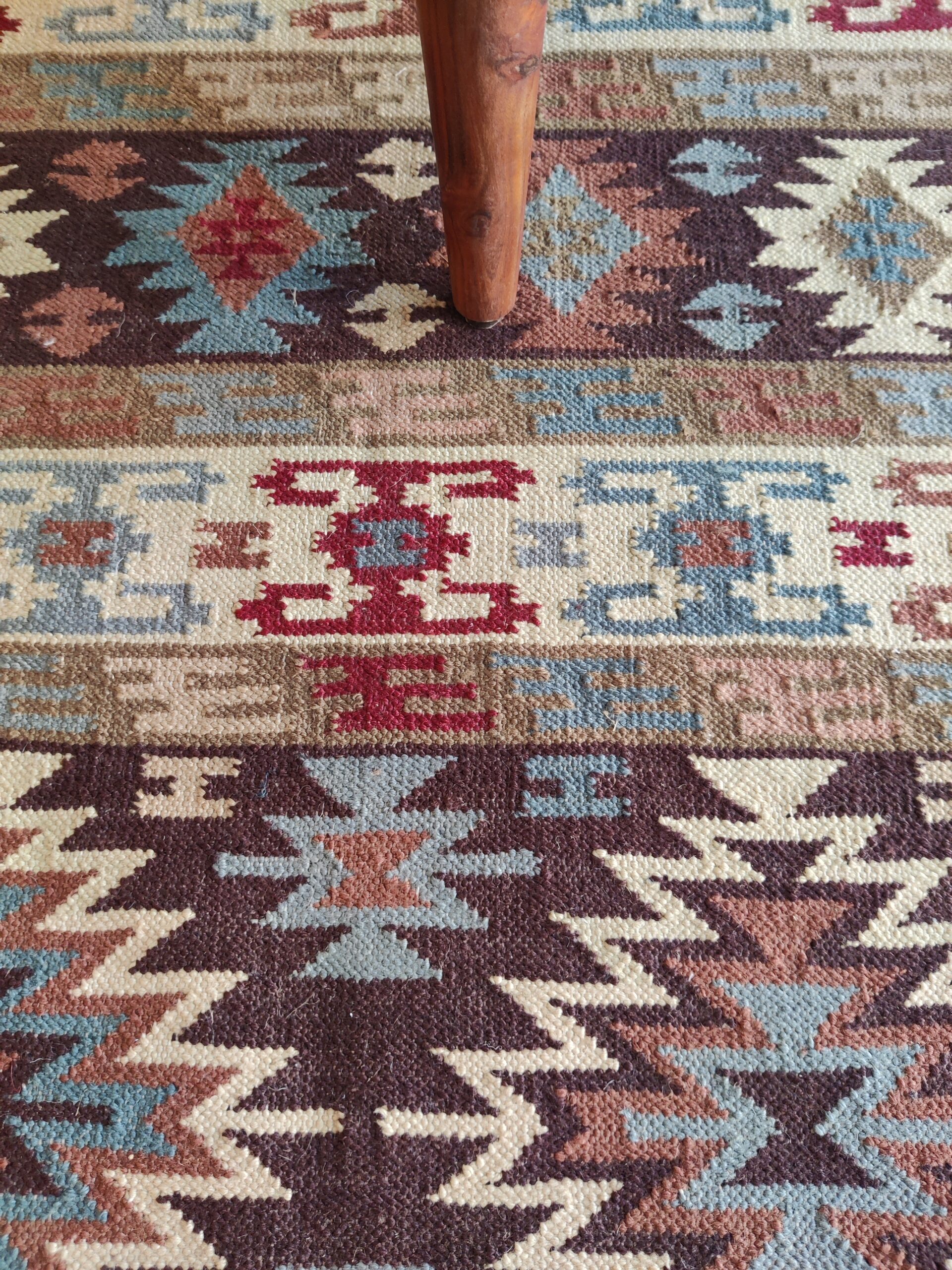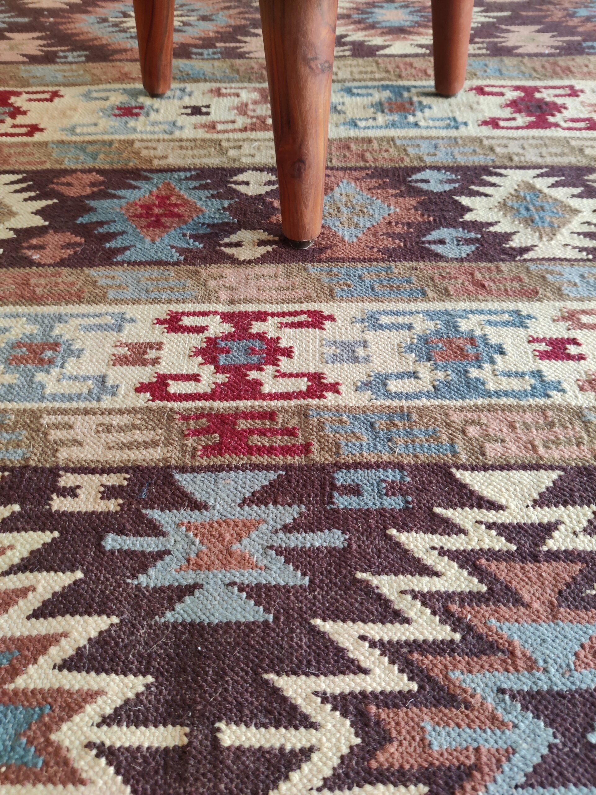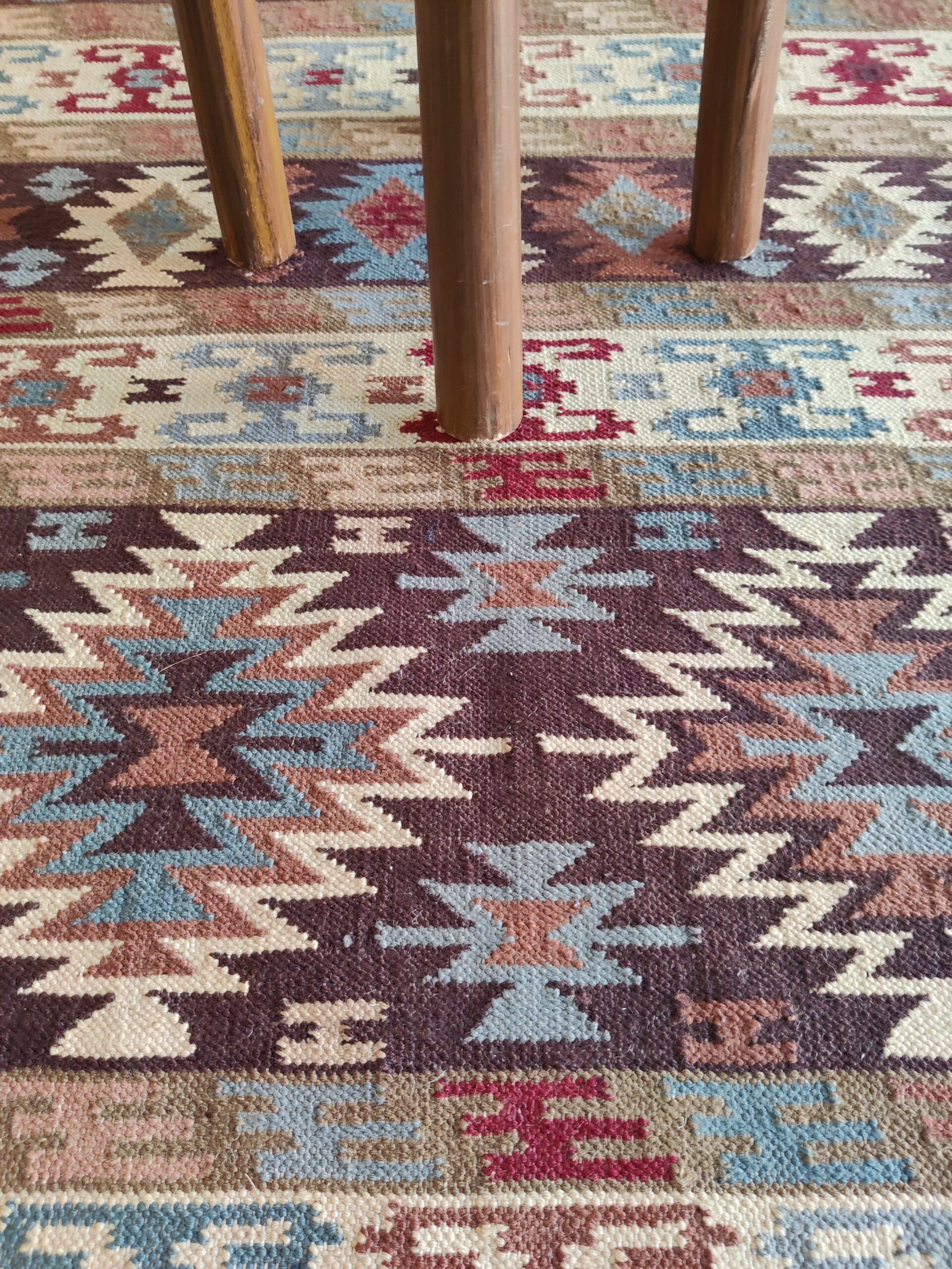 Transform your living space with our exquisite handmade wool cotton rug. This stunning piece is not just a functional addition to your home, but a statement of elegance and craftsmanship.