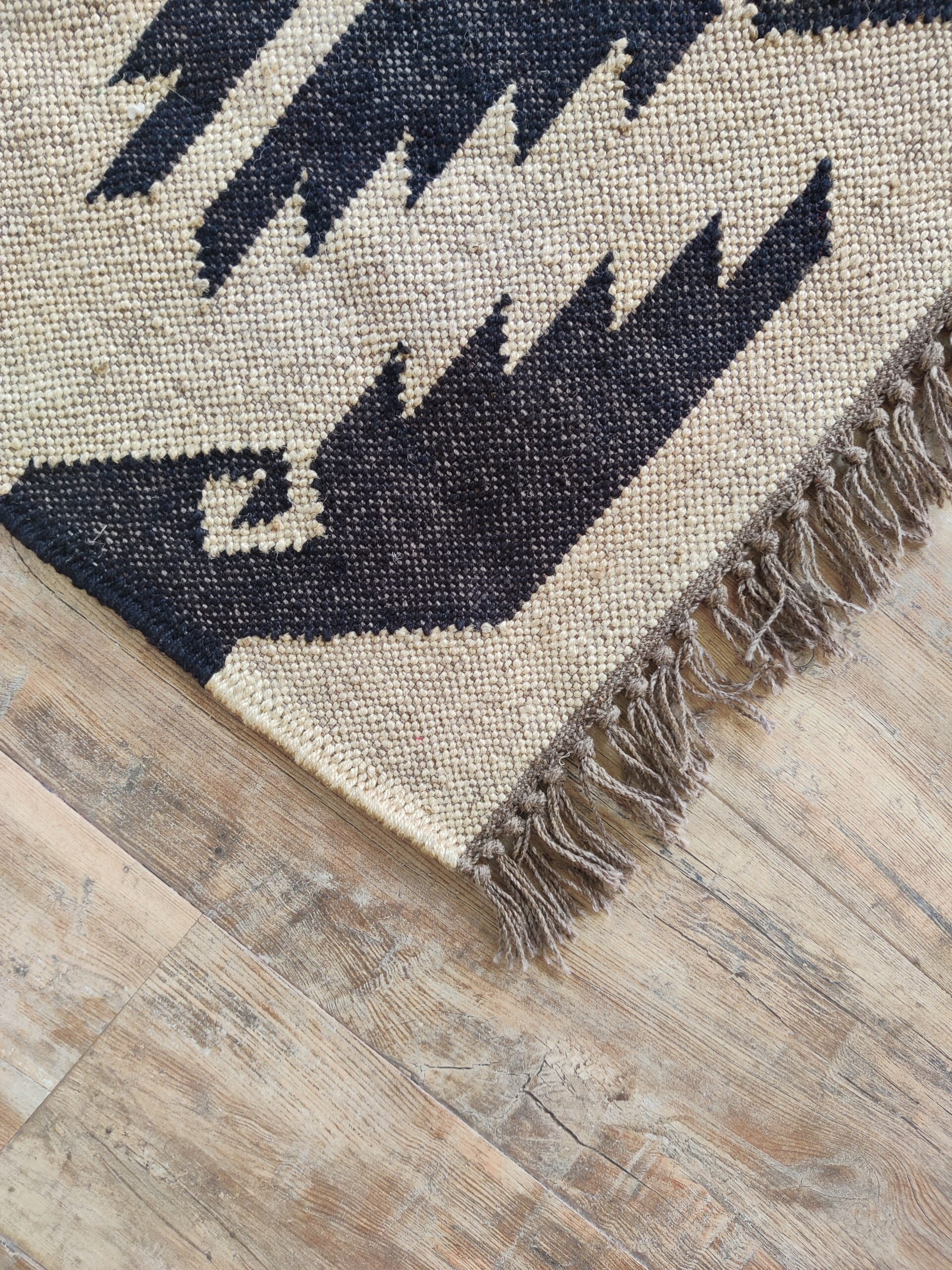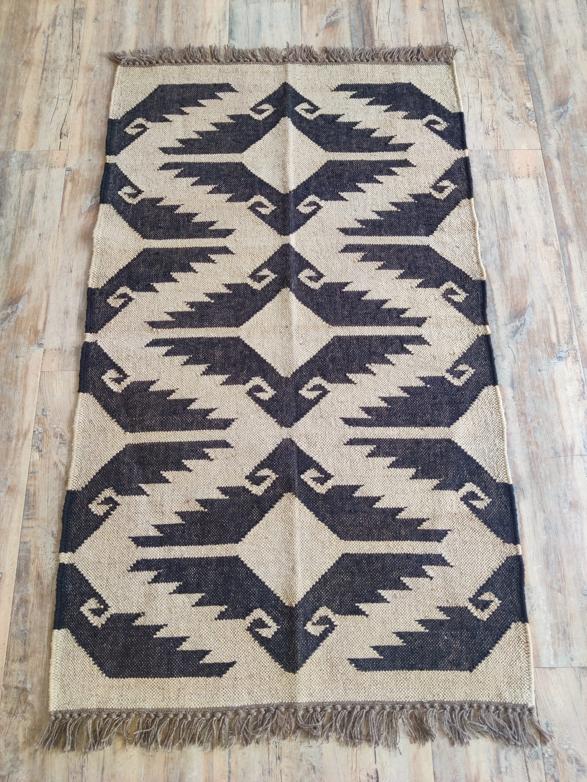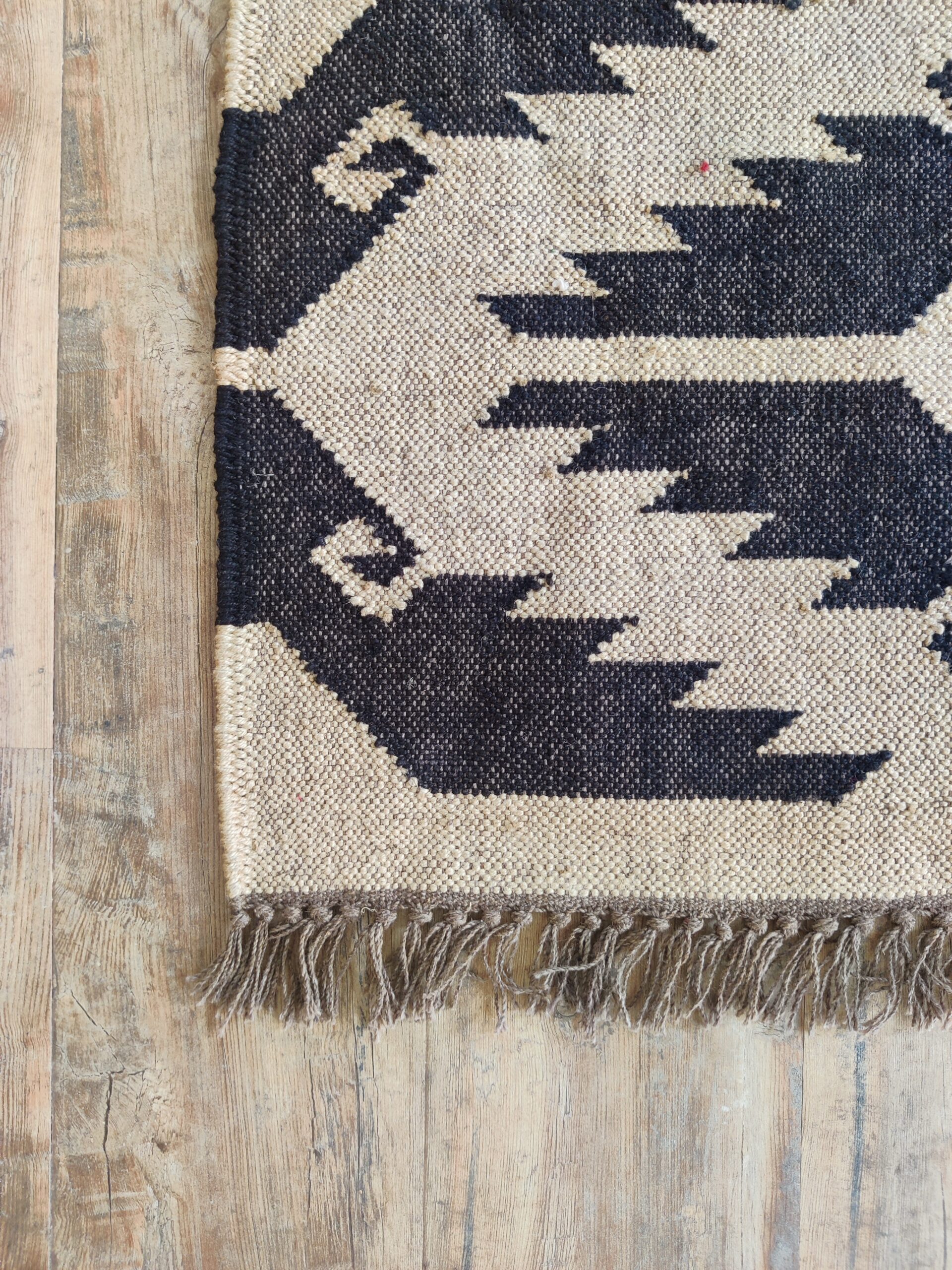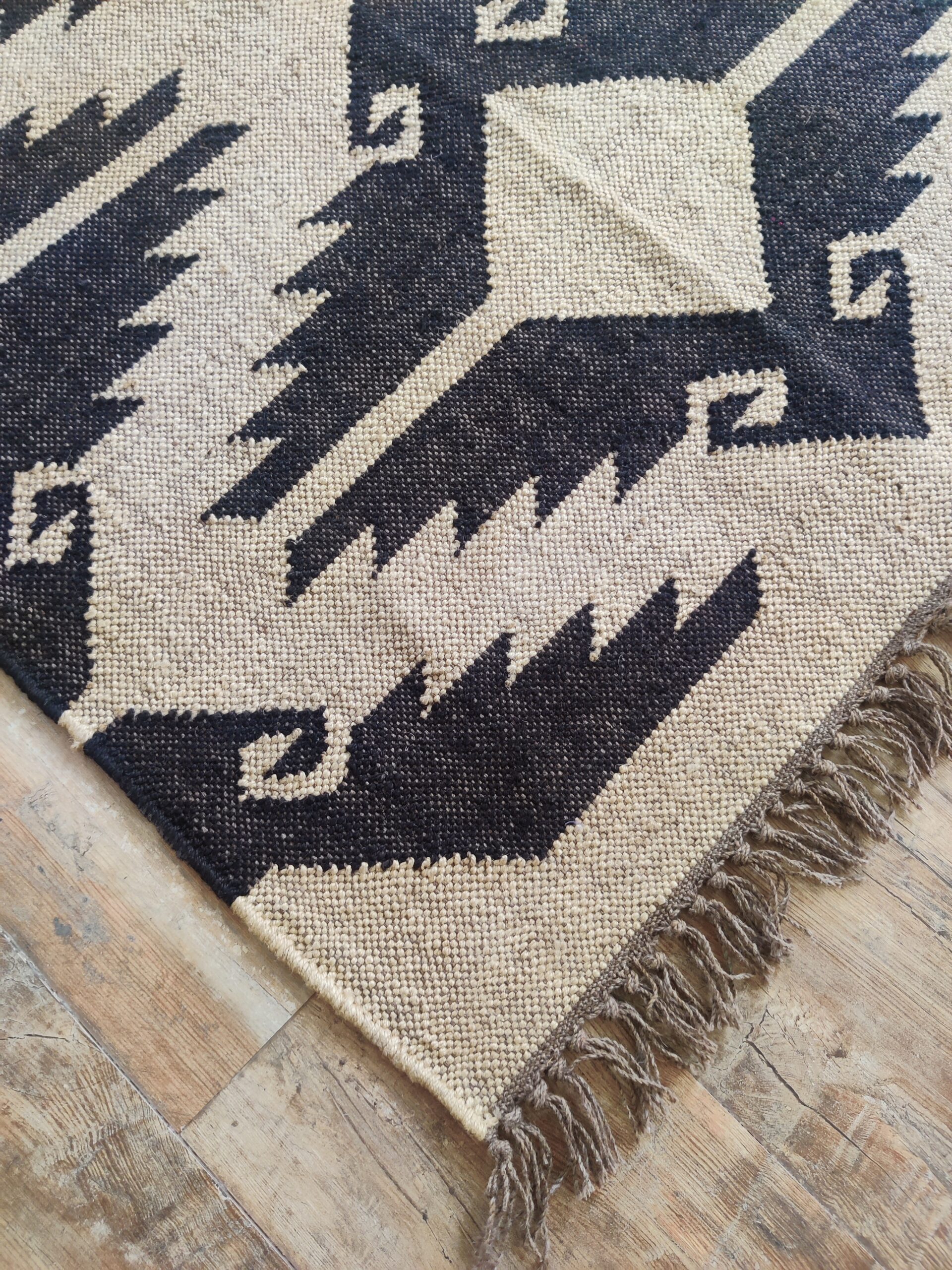 Crafted by experienced artisans, this natural handwoven jute rug is made with wool and jute. This rug is woven by hand on a traditional wooden loom. Made from hand-dyed, pure, sustainable jute and natural wool. This rug is reversible, with the same design on both sides. Wool: 30% Jute: 70%