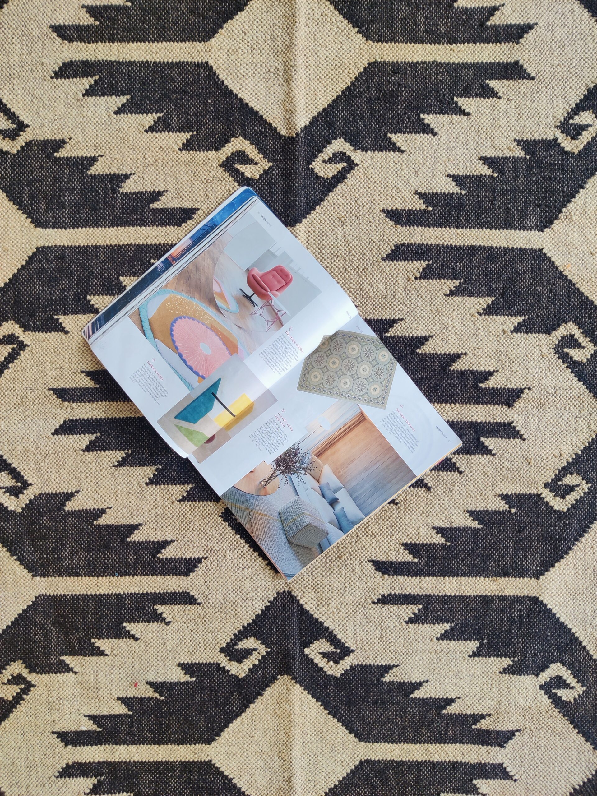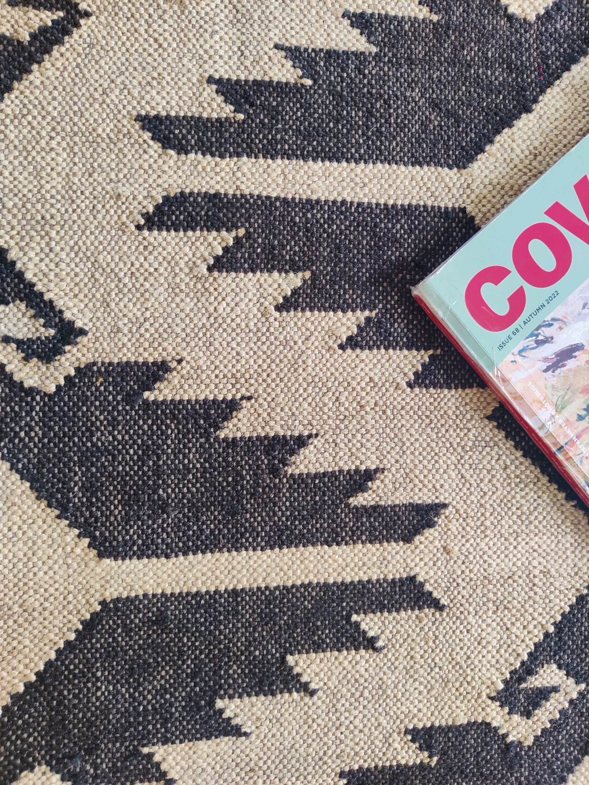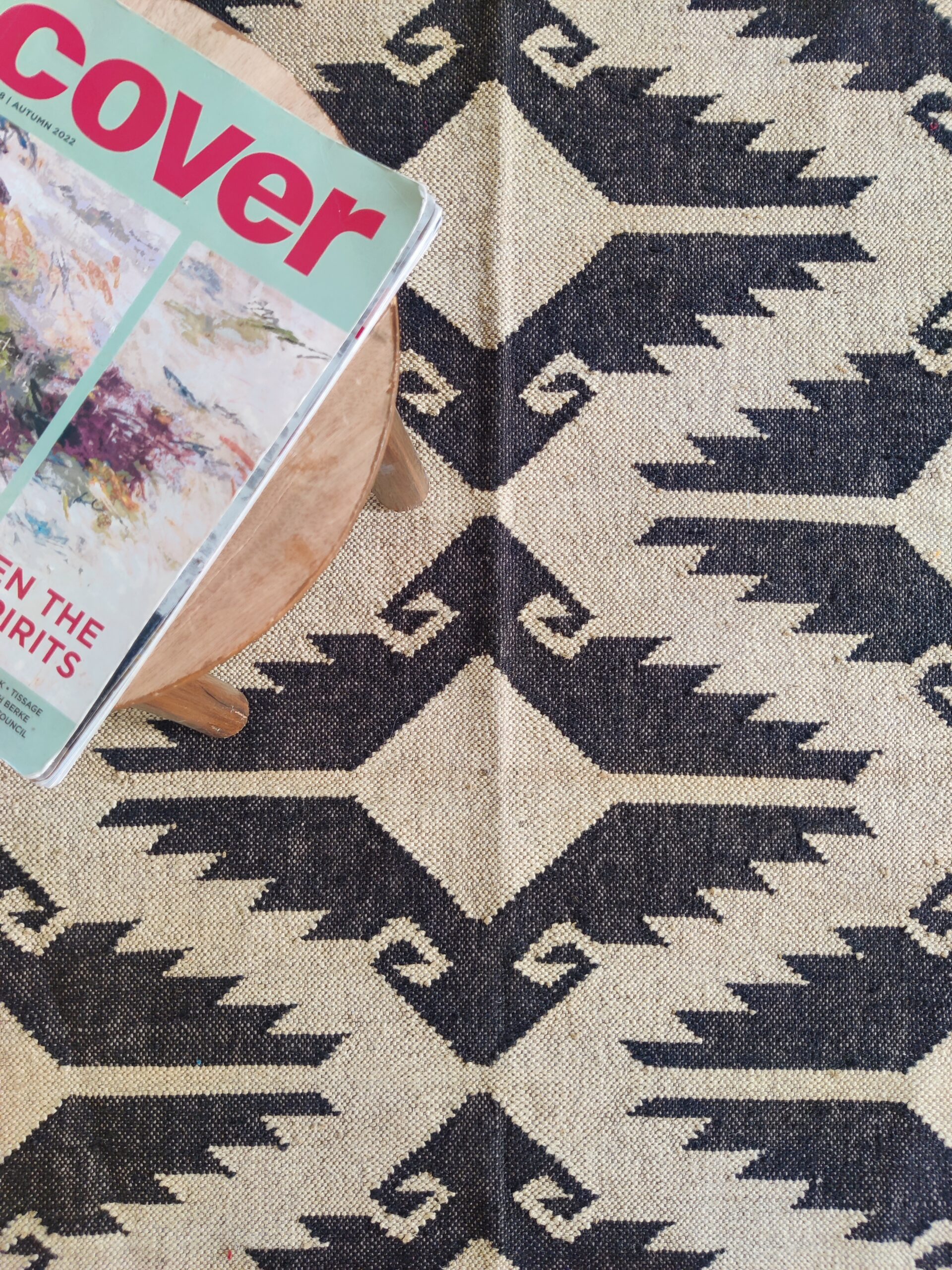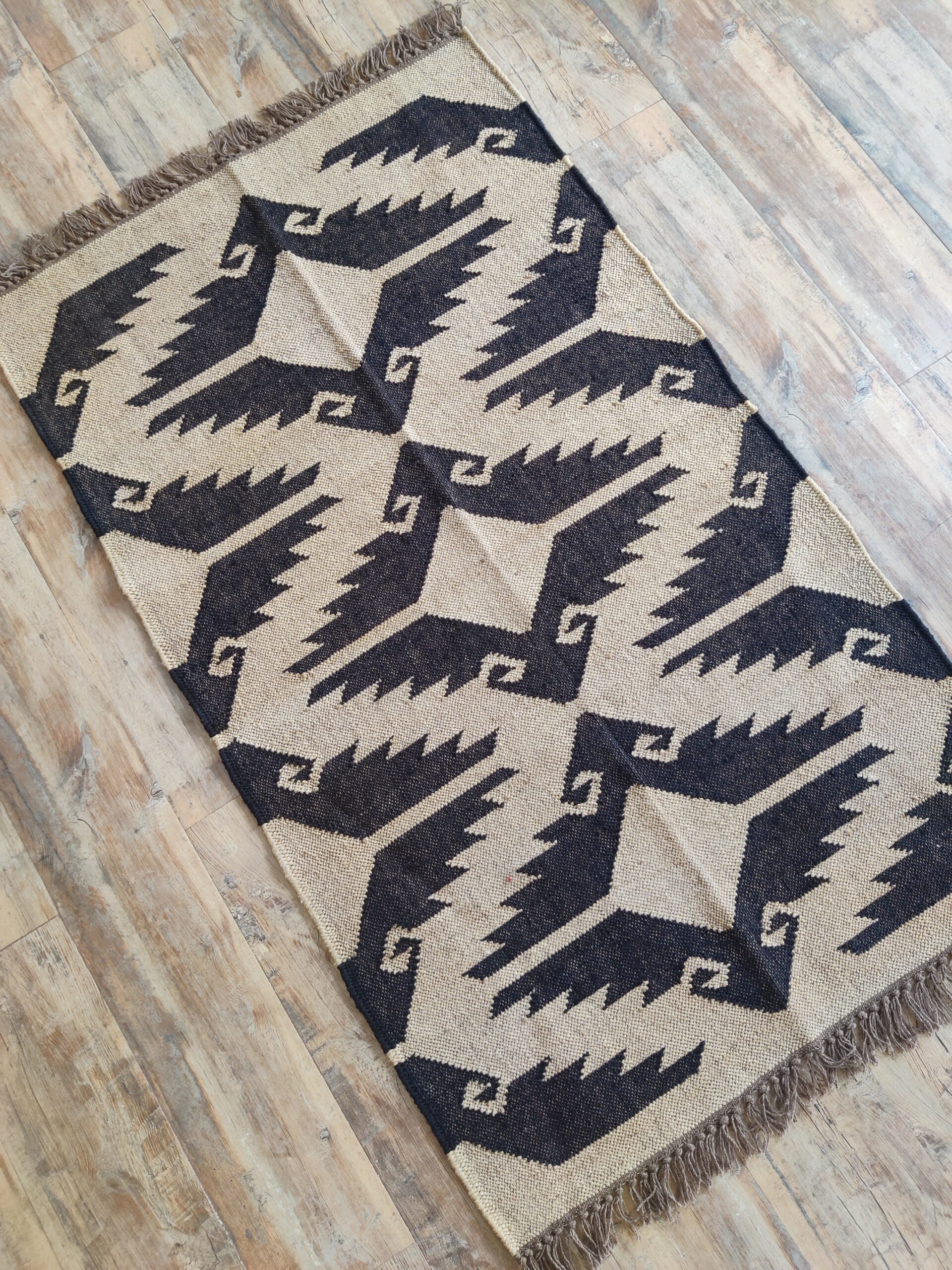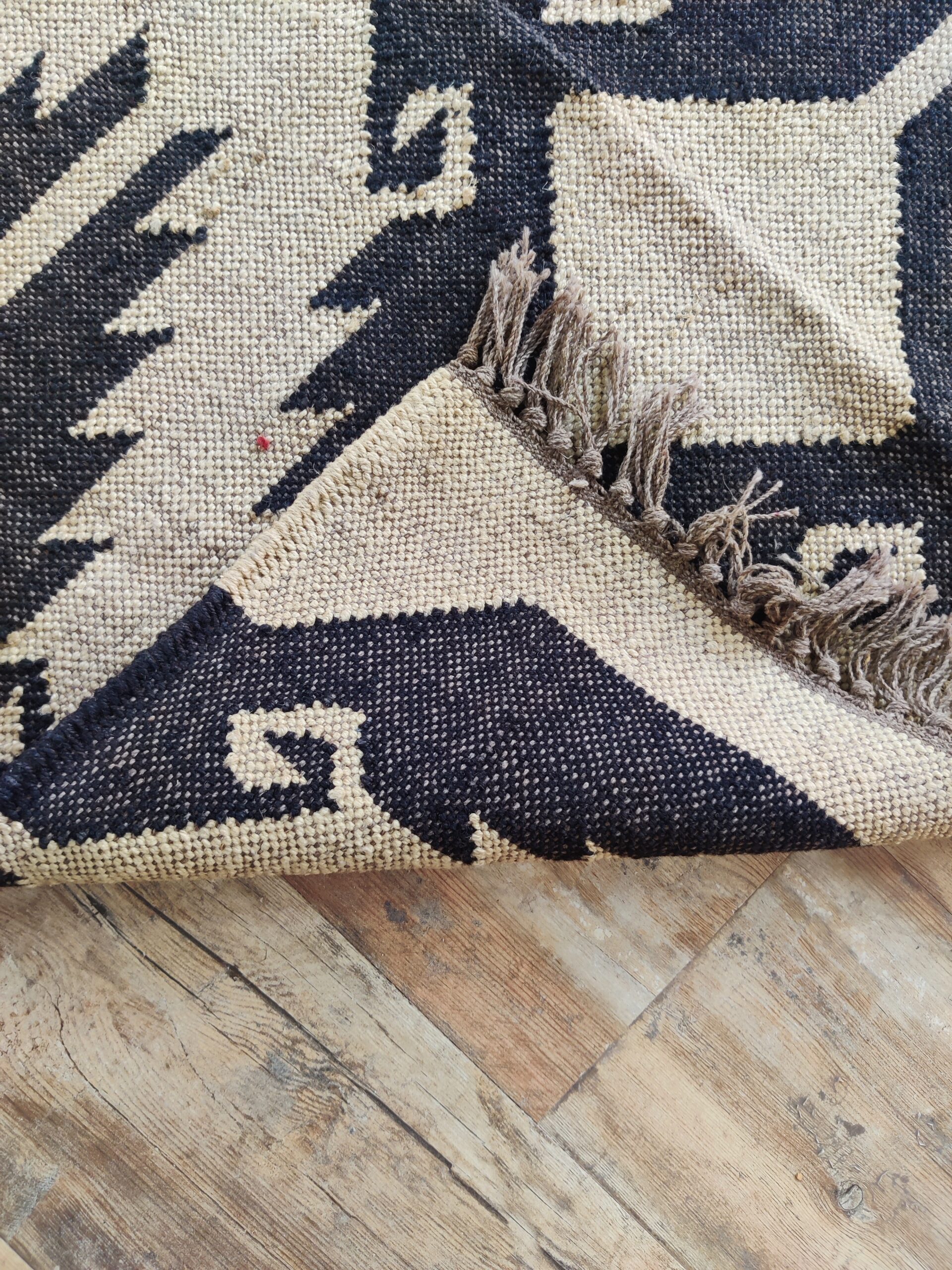 Crafted by experienced artisans, this natural handwoven jute rug is made with wool and jute. This rug is woven by hand on a traditional wooden loom. Made from hand-dyed, pure, sustainable jute and natural wool. This rug is reversible, with the same design on both sides. Wool: 30% Jute: 70%
