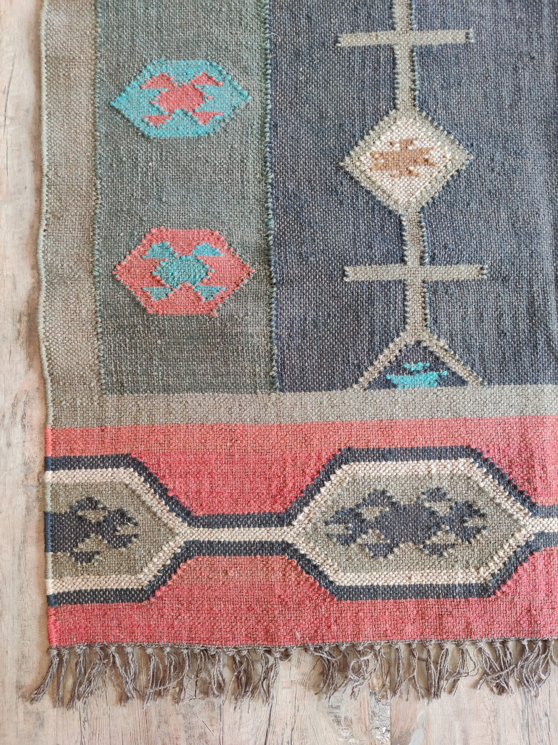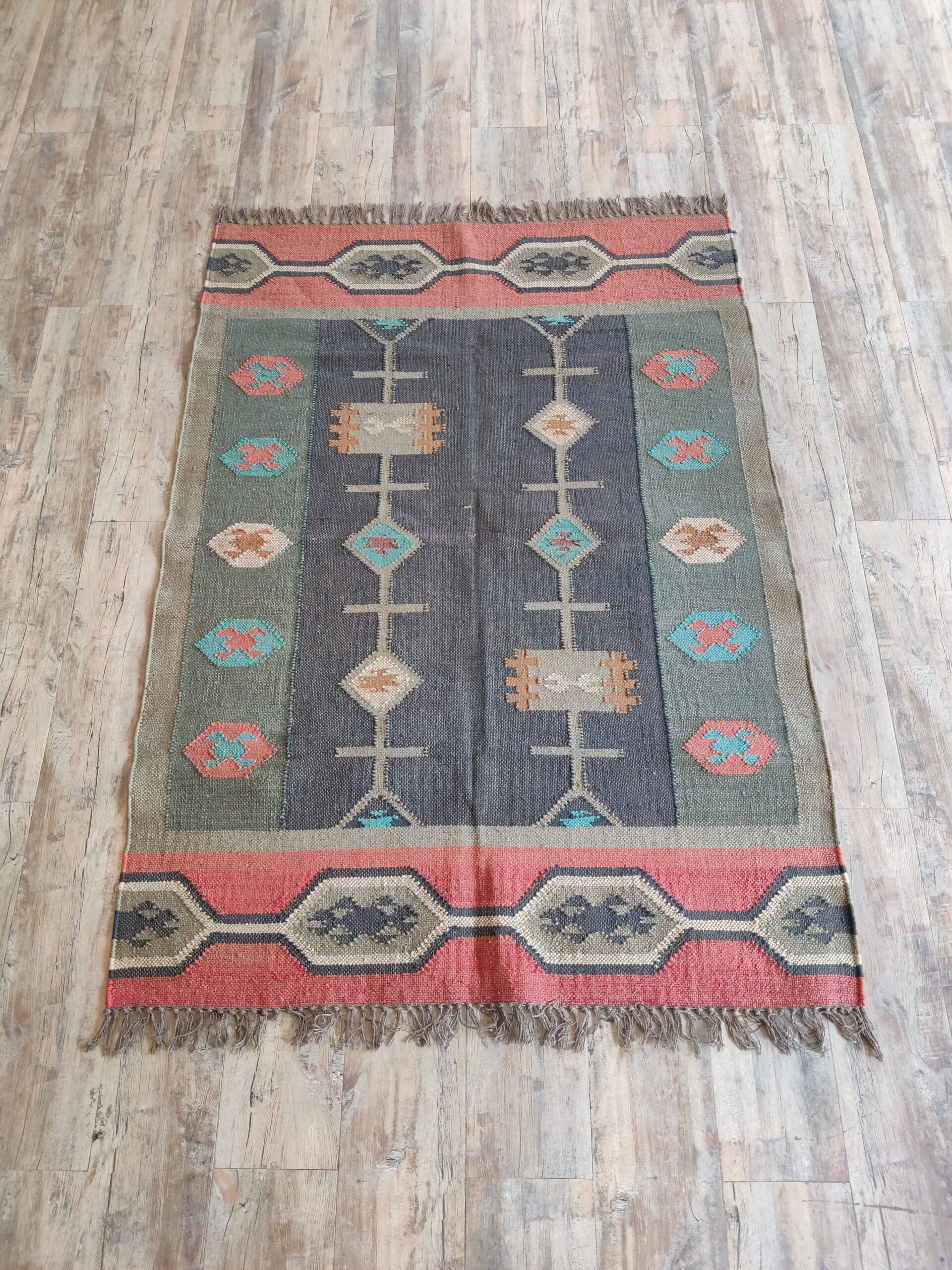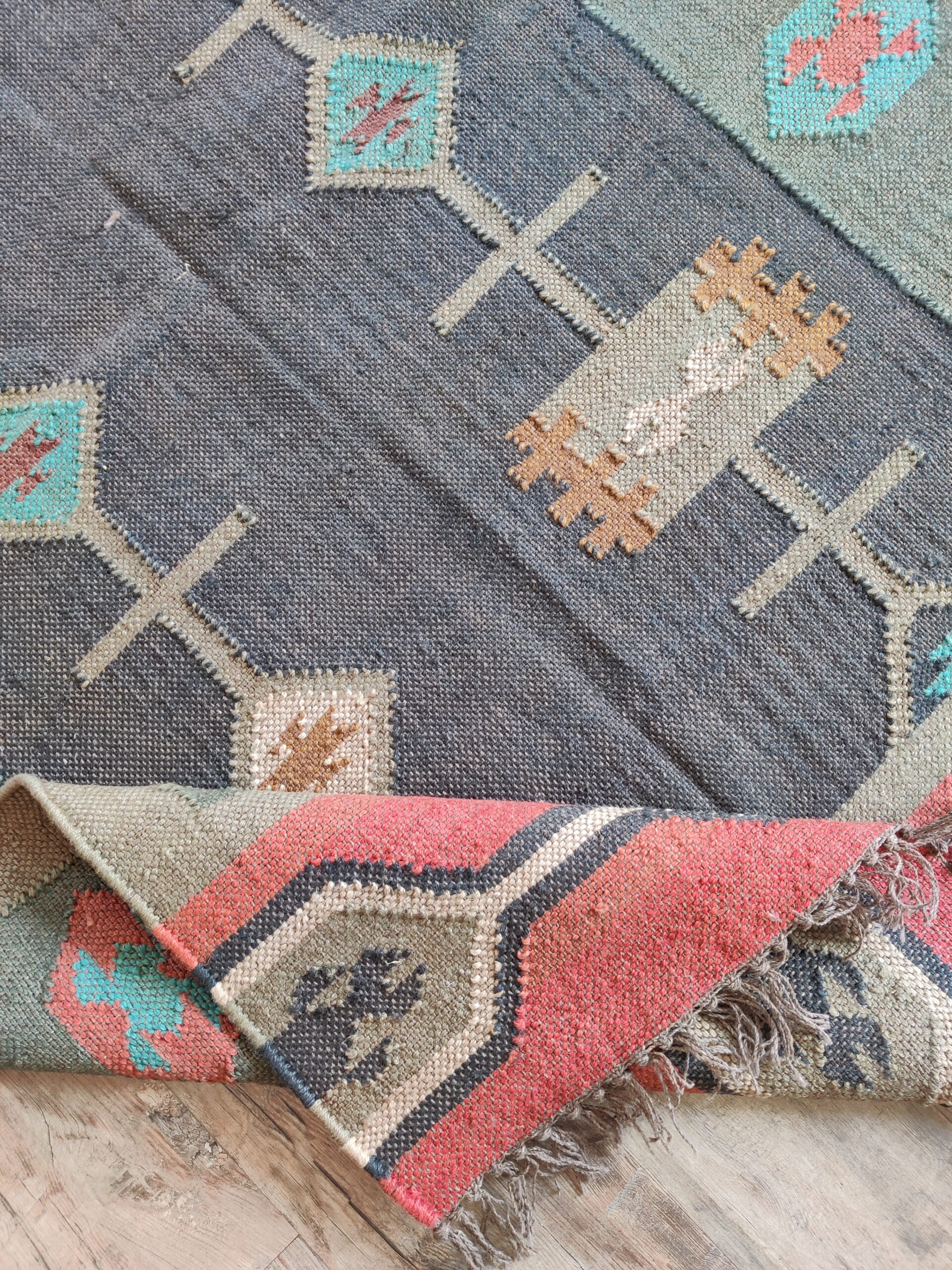 Handwoven Vintage Wool Kilim Area Rug, Geometric Pattern Wool Jute Rug