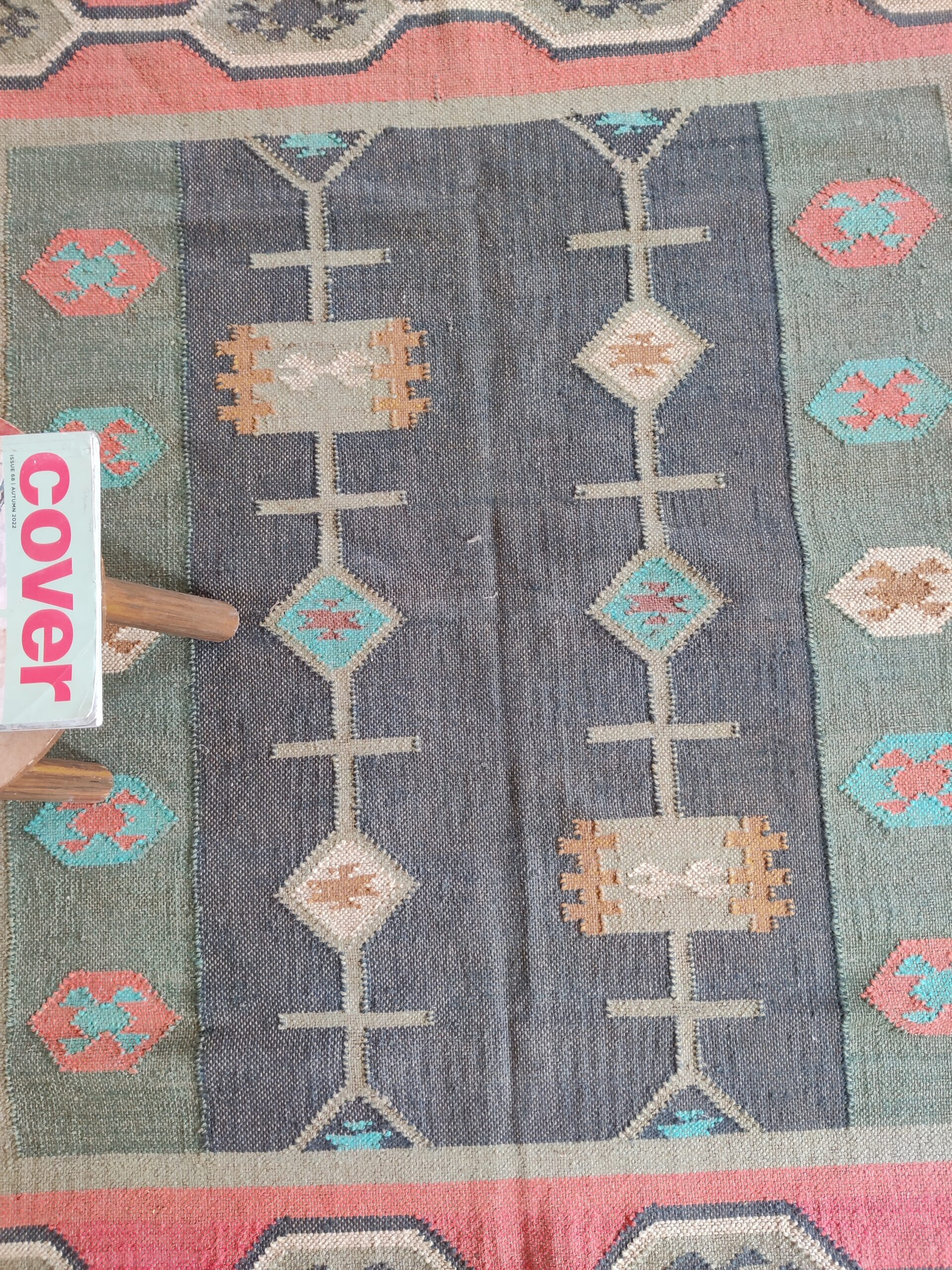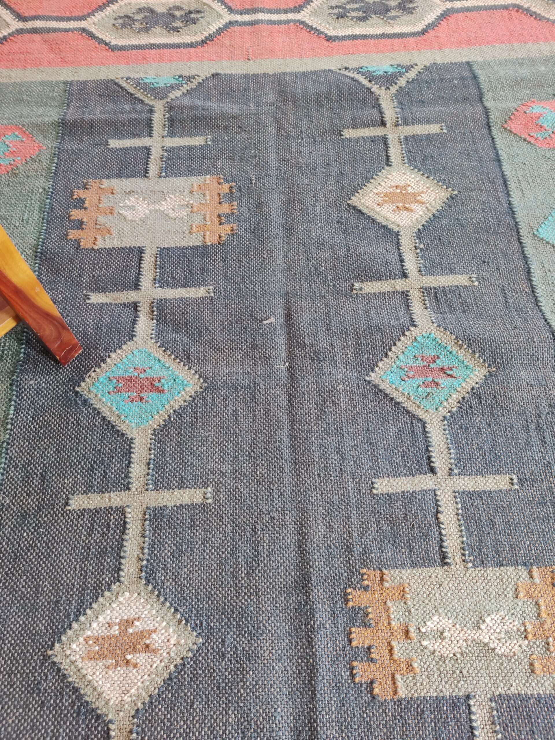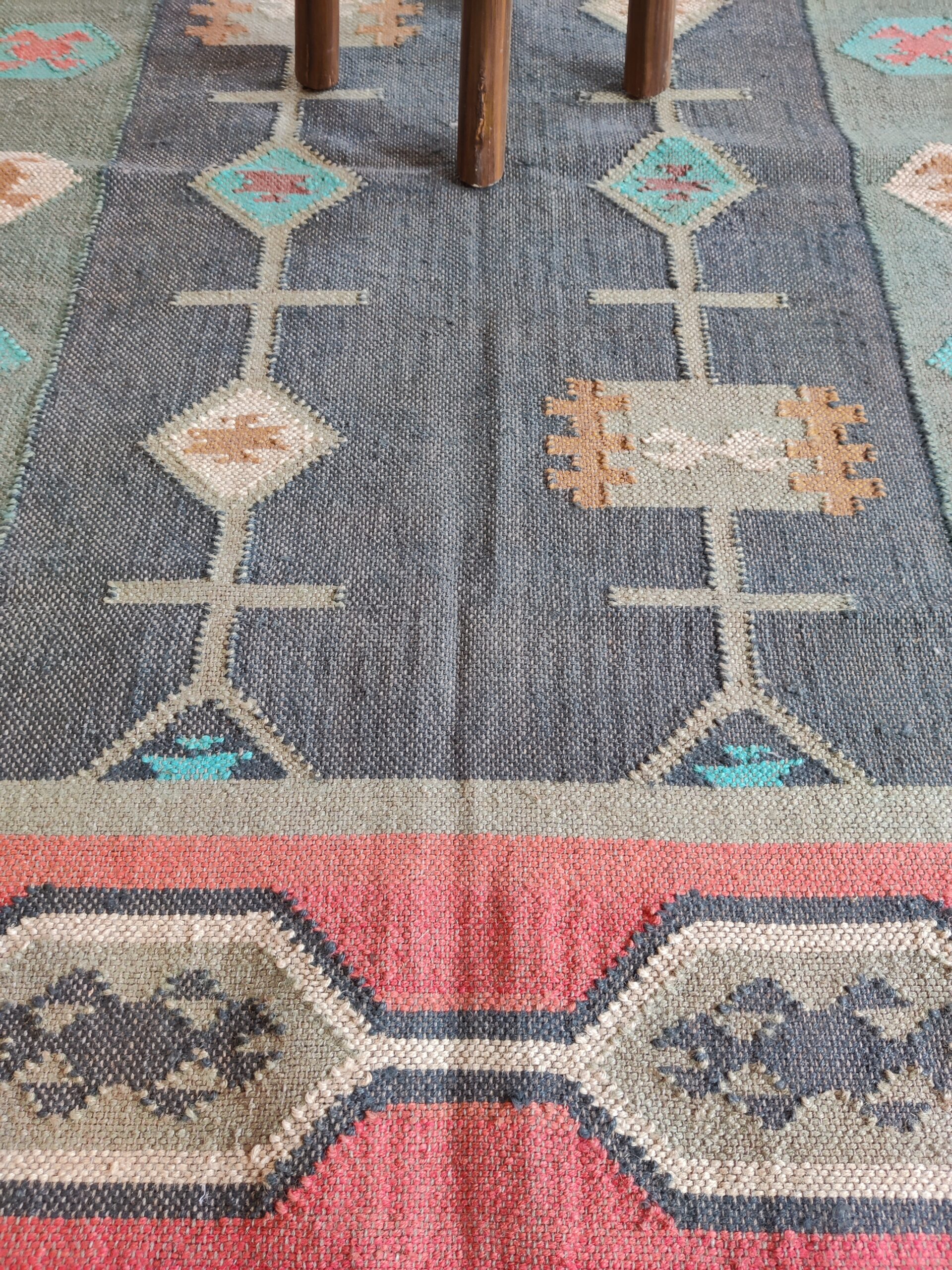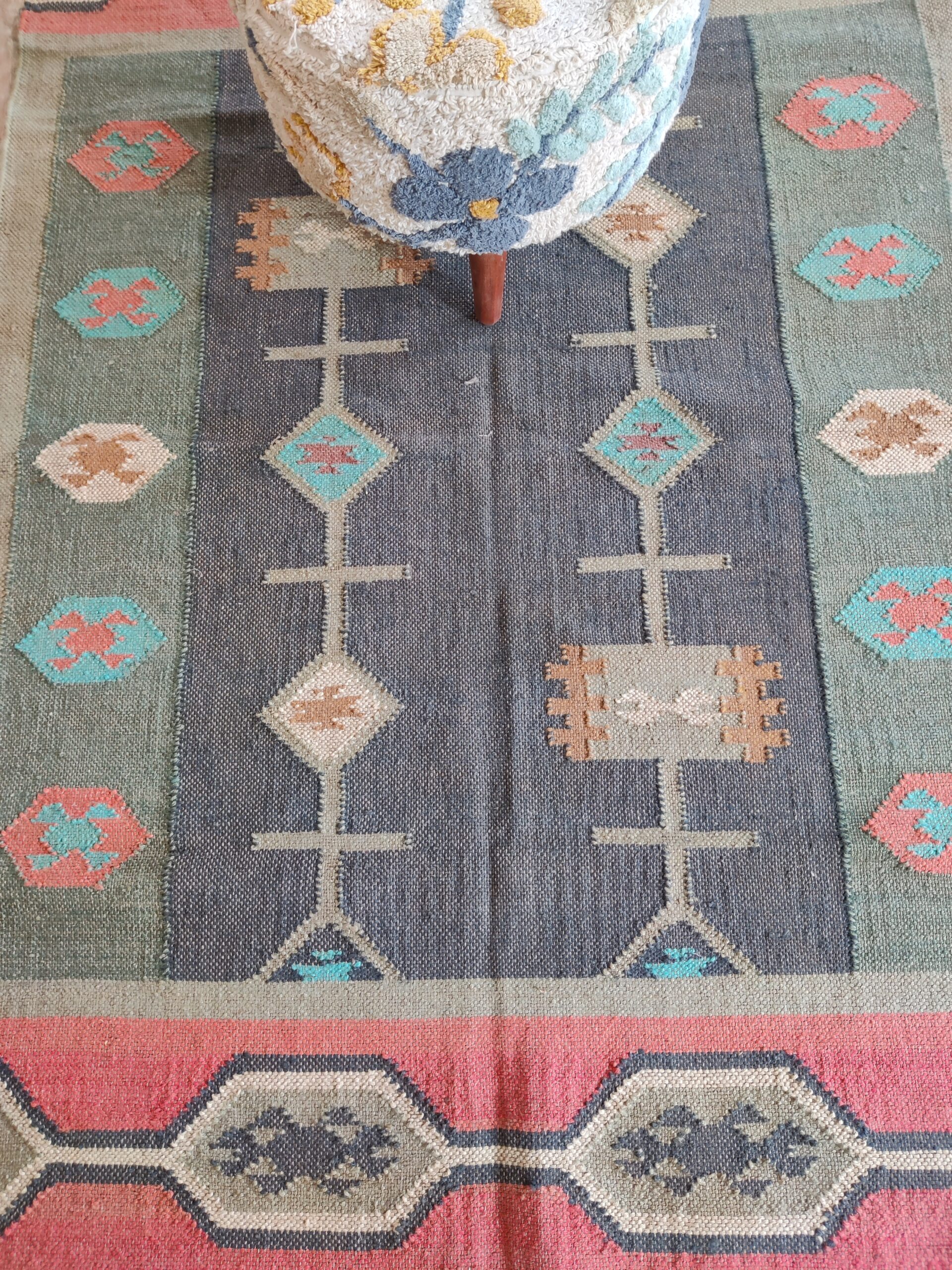 Handwoven Vintage Wool Kilim Area Rug, Geometric Pattern Wool Jute Rug