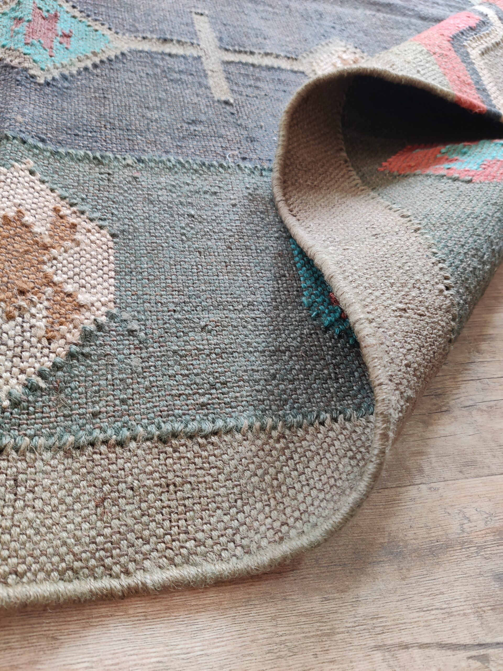 Crafted by experienced artisans, this natural handwoven jute rug is made with wool and jute. This rug is woven by hand on a traditional wooden loom. Made from hand-dyed, pure, sustainable jute and natural wool. This rug is reversible, with the same design on both sides. Wool: 30% Jute: 70%