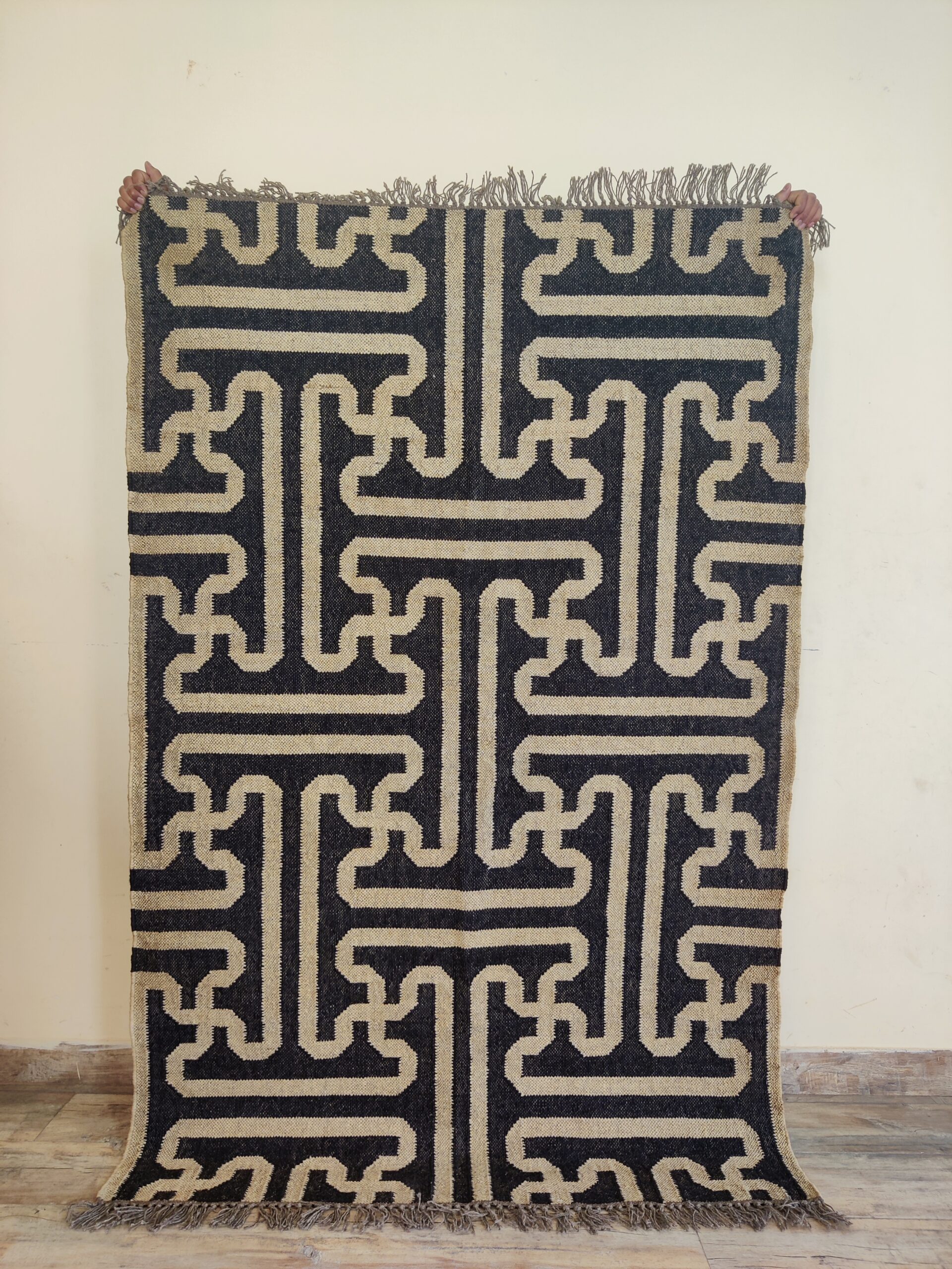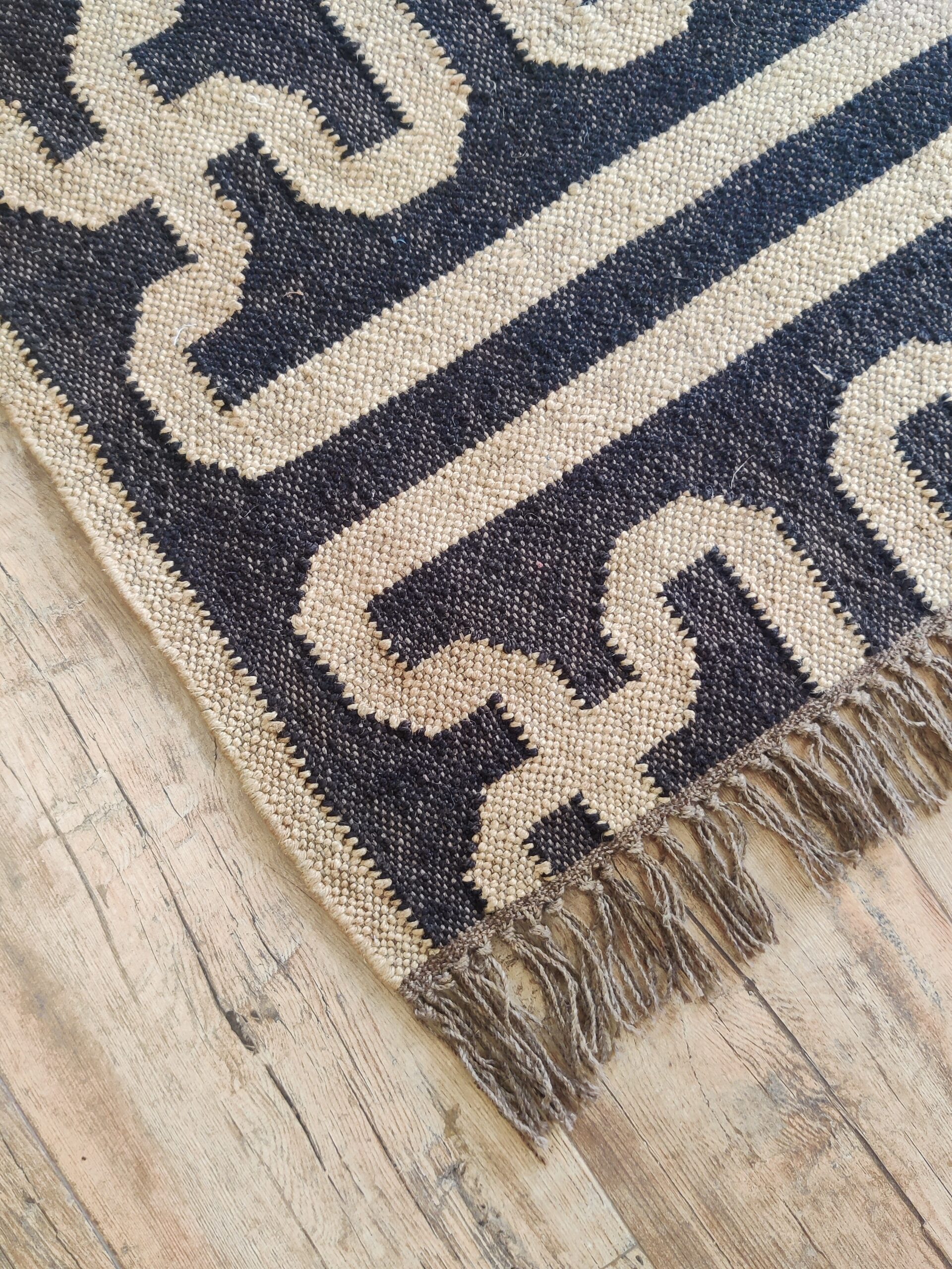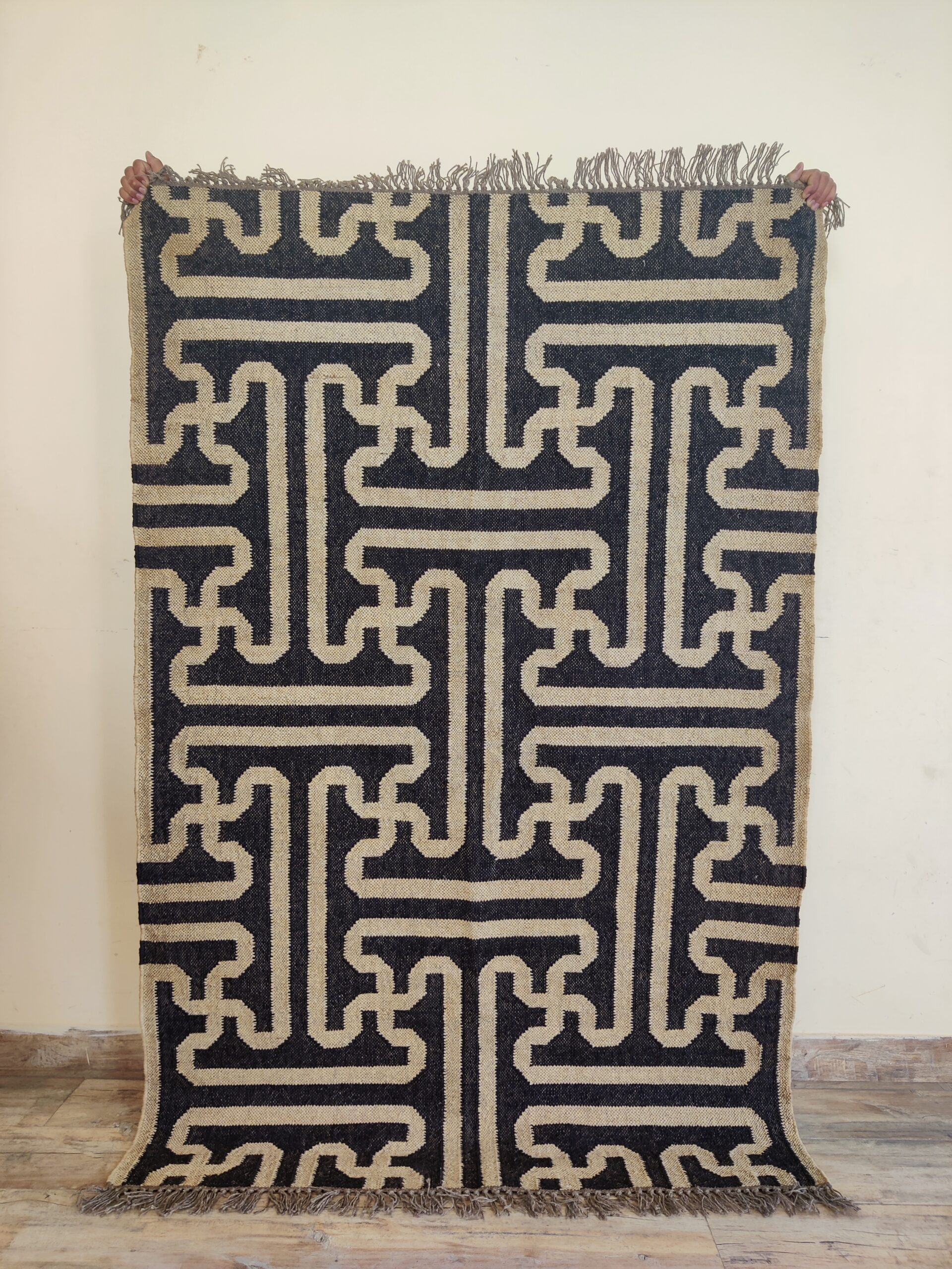 Crafted by experienced artisans, this natural handwoven jute rug is made with wool and jute. This rug is woven by hand on a traditional wooden loom. Made from hand-dyed, pure, sustainable jute and natural wool. This rug is reversible, with the same design on both sides. Wool: 30% Jute: 70%