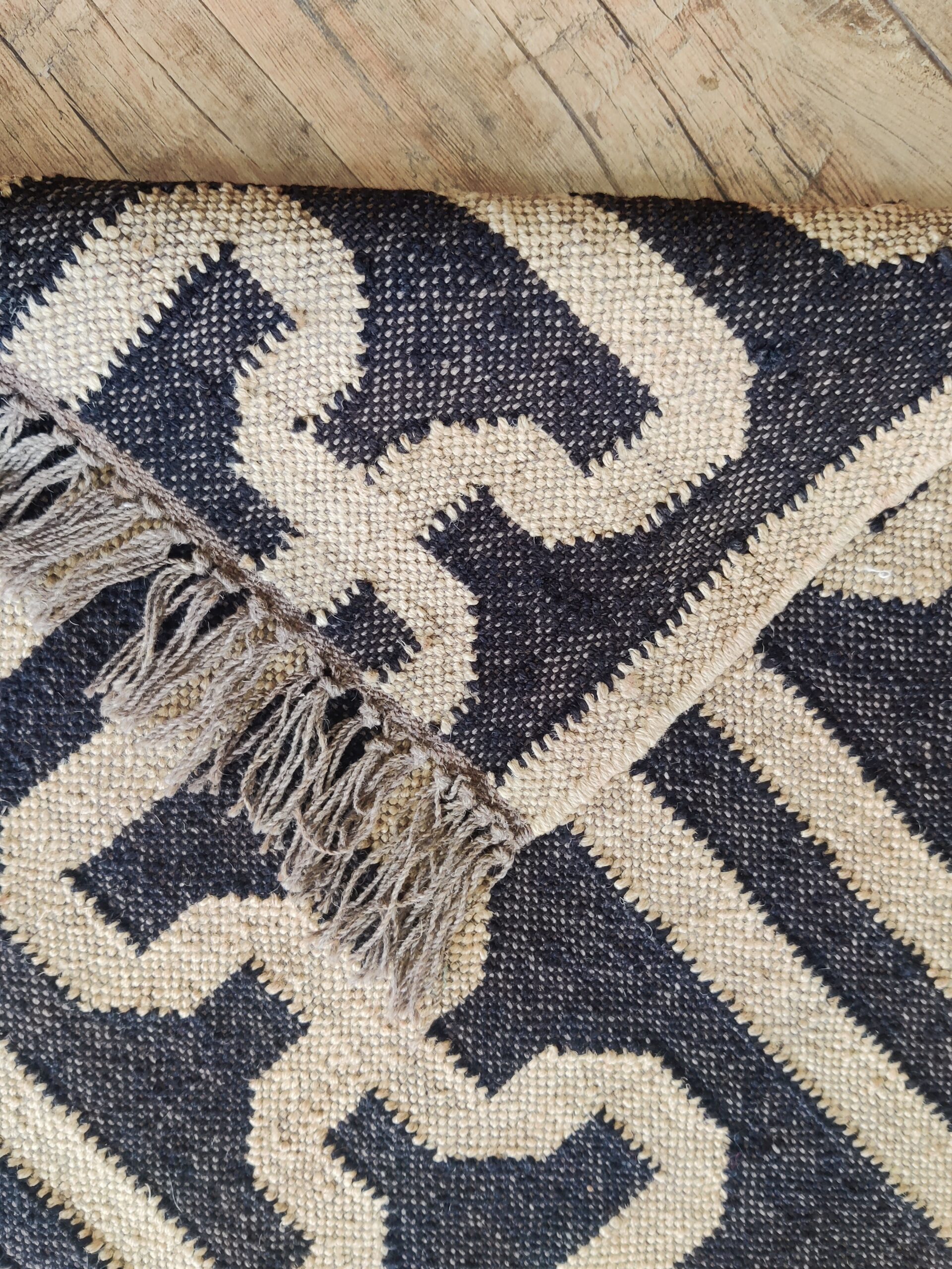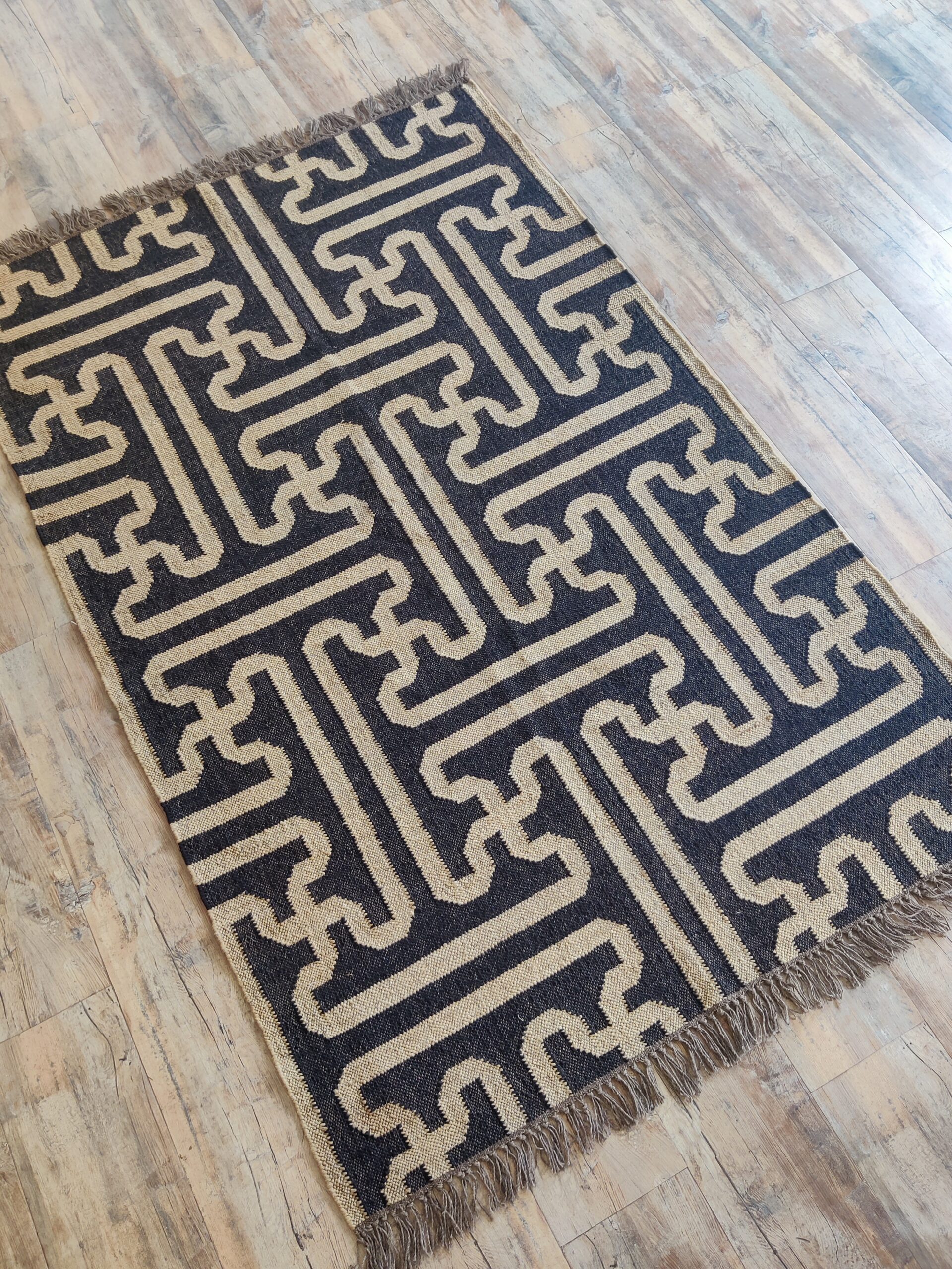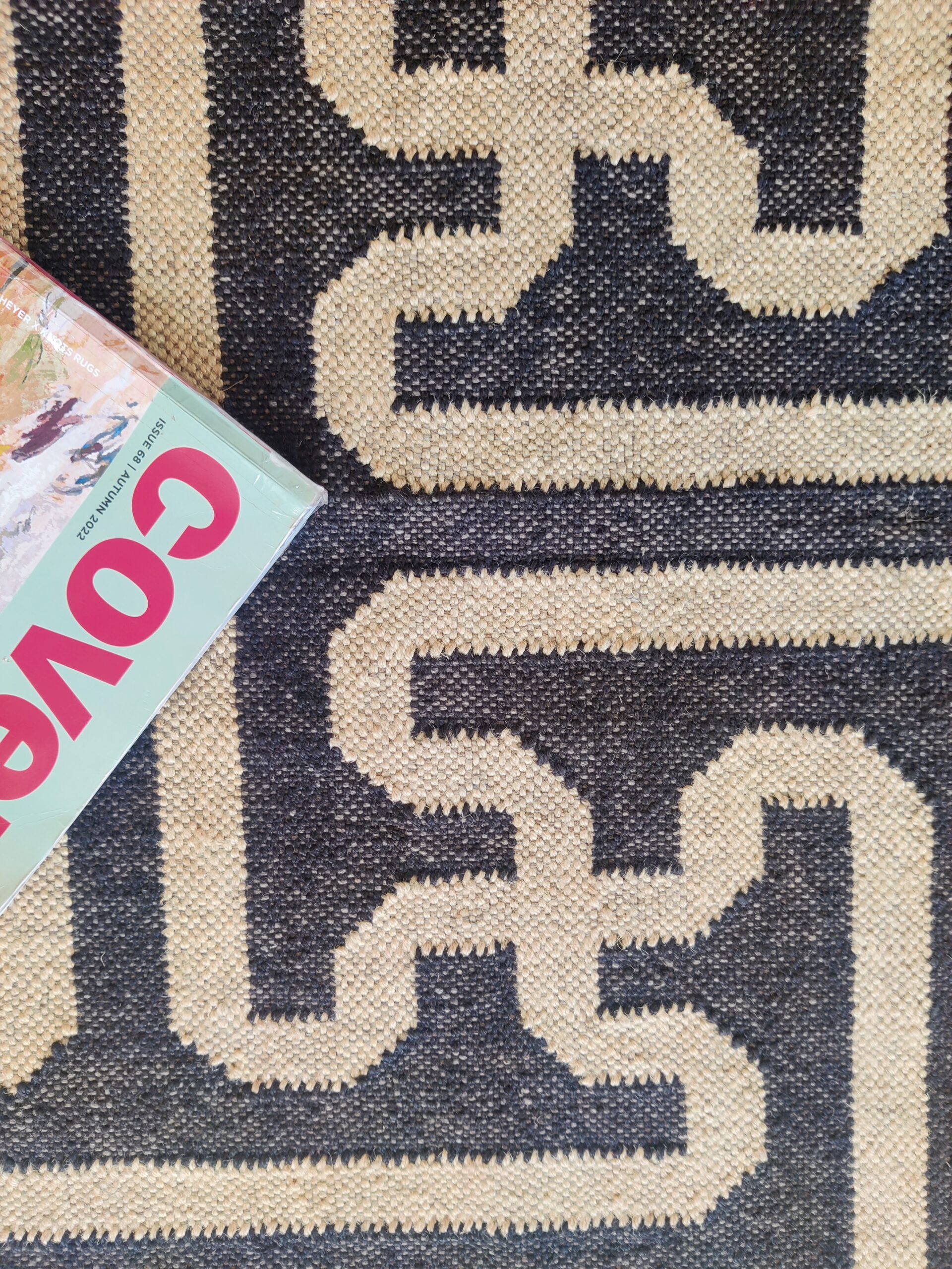 Crafted by experienced artisans, this natural handwoven jute rug is made with wool and jute. This rug is woven by hand on a traditional wooden loom. Made from hand-dyed, pure, sustainable jute and natural wool. This rug is reversible, with the same design on both sides. Wool: 30% Jute: 70%