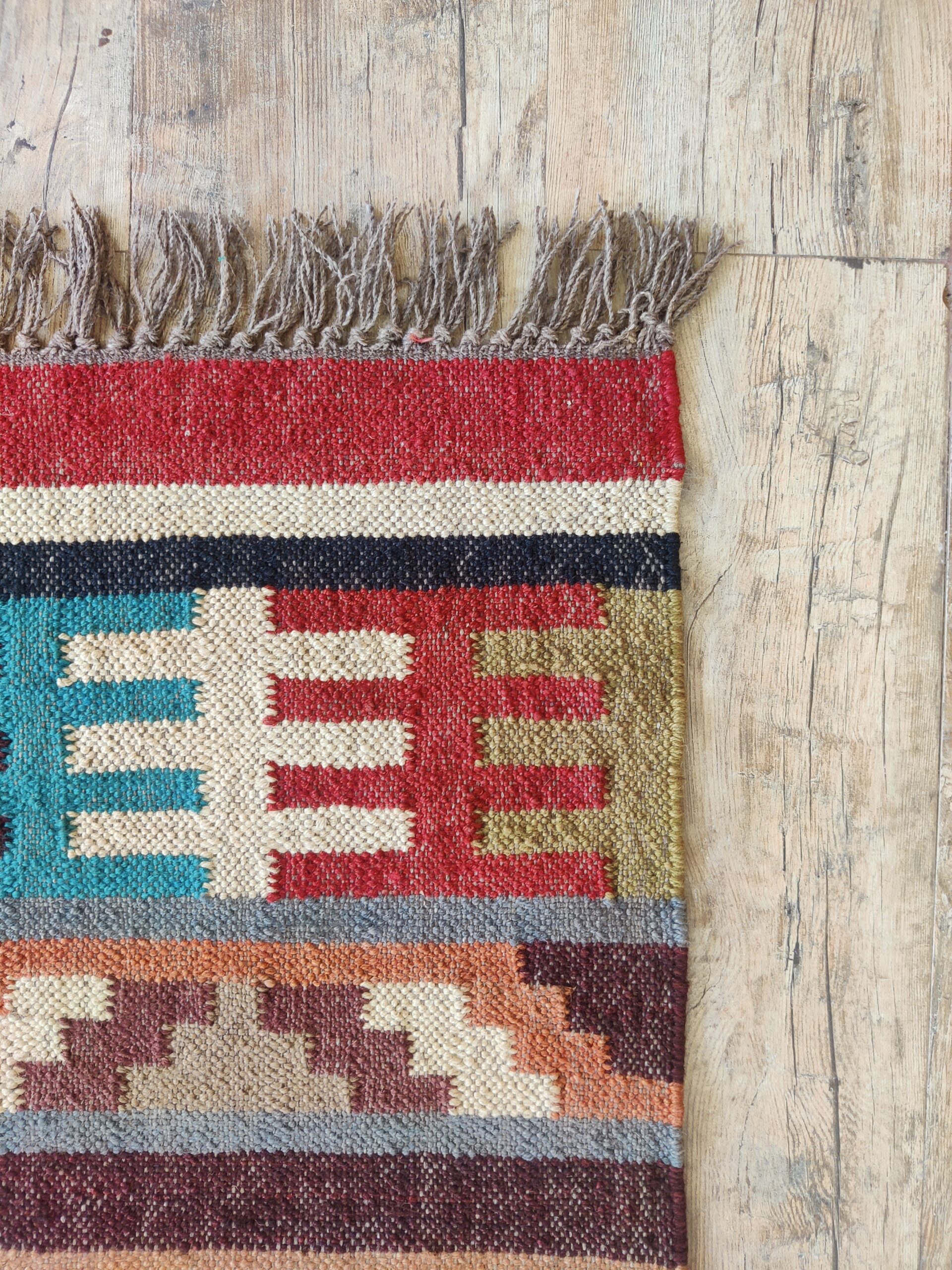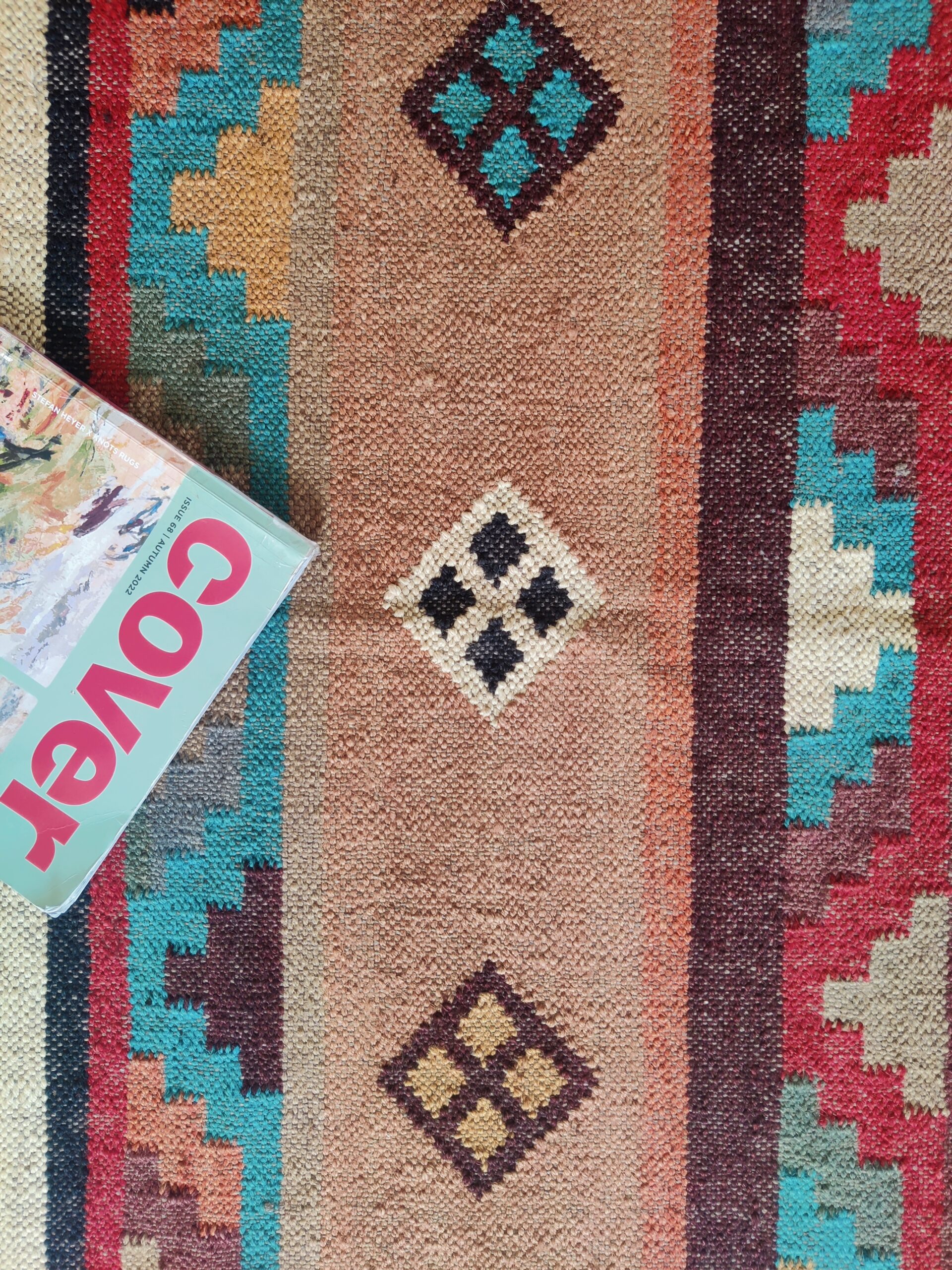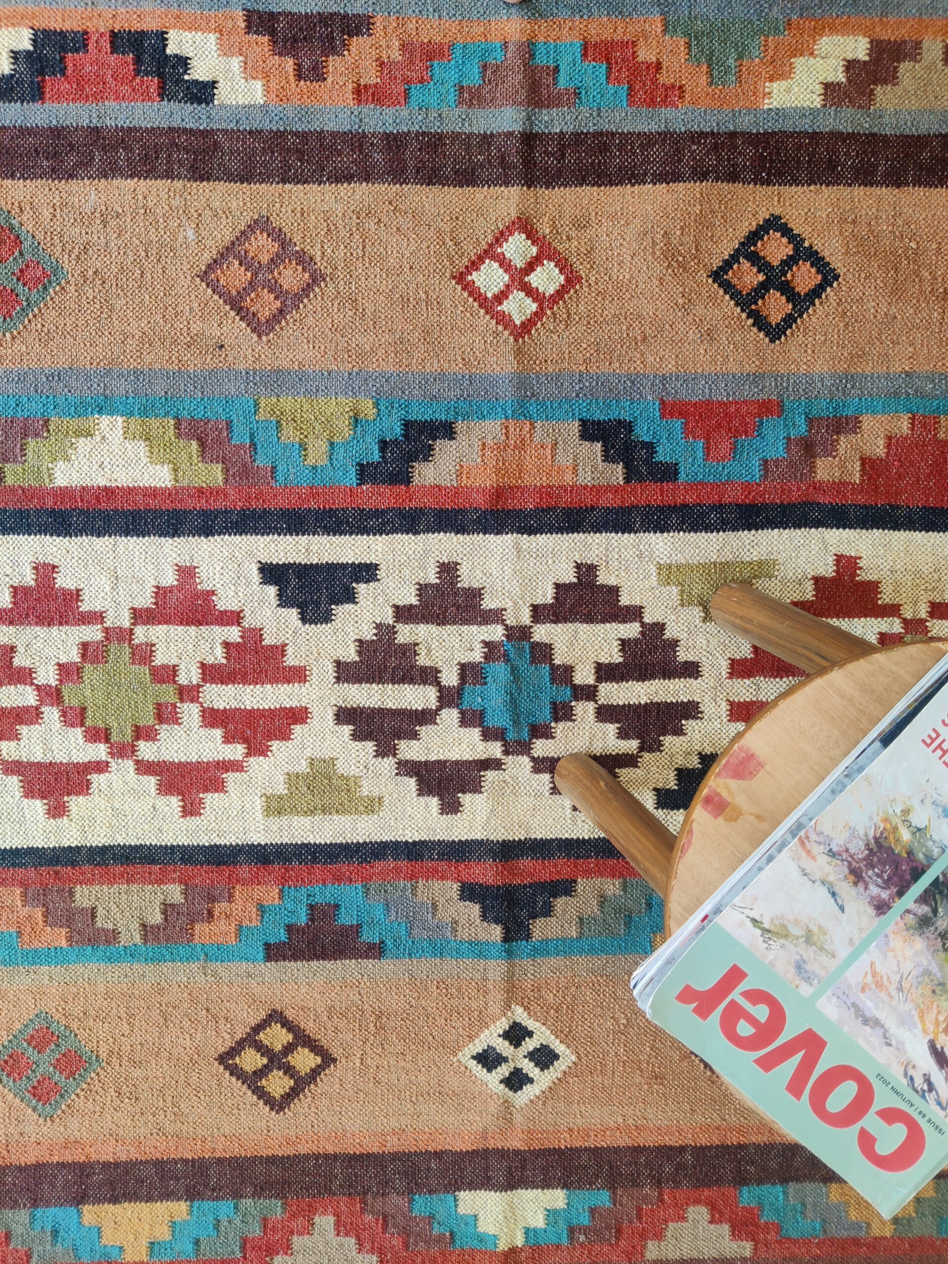 Crafted by experienced artisans, this natural handwoven jute rug is made with wool and jute. This rug is woven by hand on a traditional wooden loom. Made from hand-dyed, pure, sustainable jute and natural wool. This rug is reversible, with the same design on both sides. Wool: 30% Jute: 70%